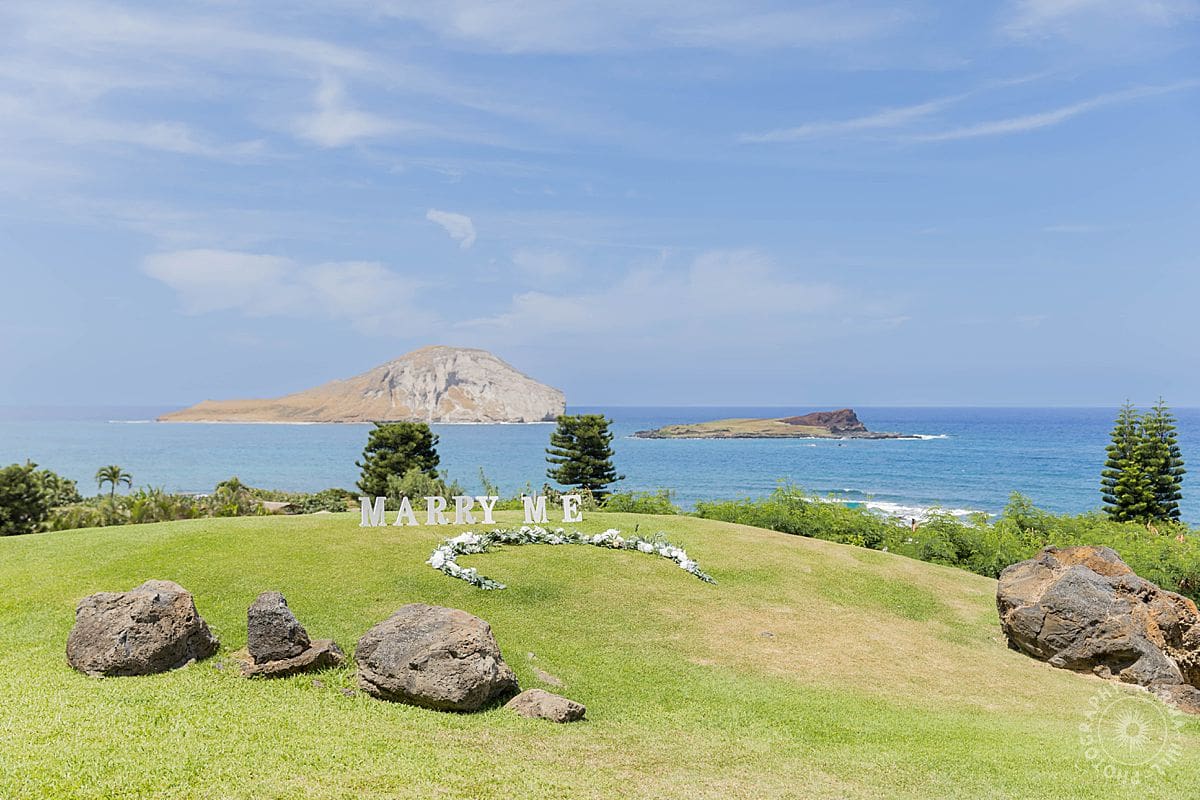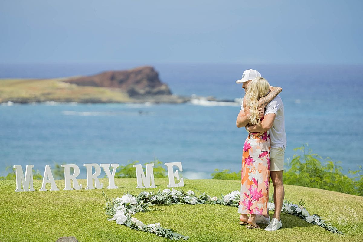 Eldin didn’t just plan a proposal—he curated an experience. He scouted the perfect private spot on Oahu, complete with a “Marry Me” sign and the dreamiest silk flower semi-circle you’ve ever seen. Romantic, thoughtful, personal—it was everything.