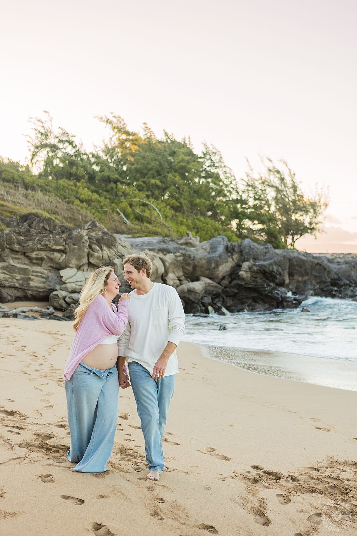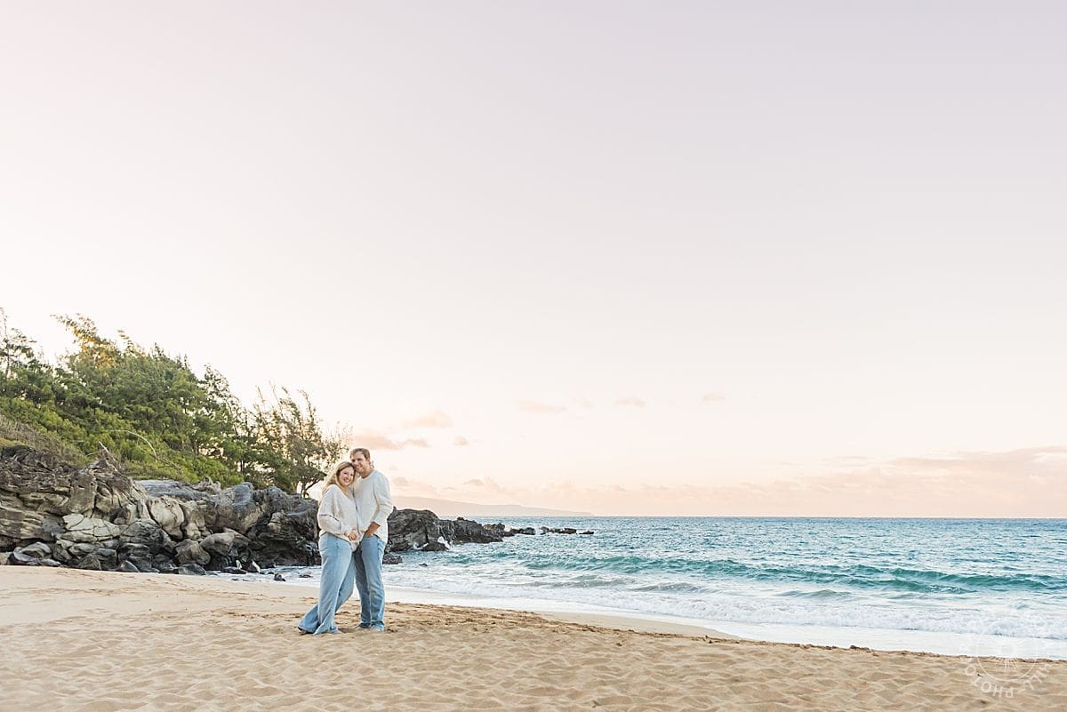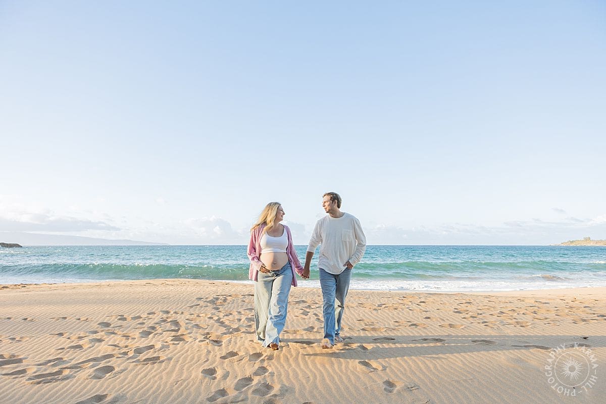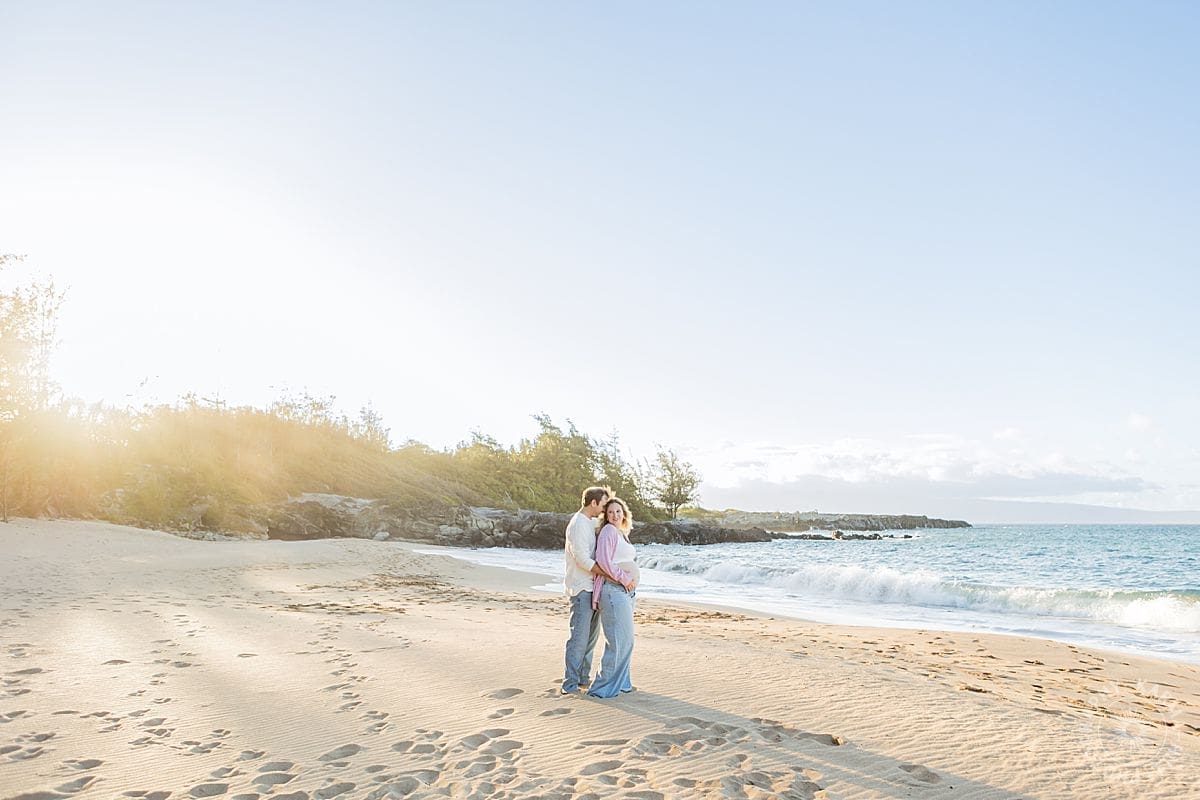 Visiting Maui for the very first time (after a trip to Honolulu a few years ago), these two wanted more than just pretty pictures; they wanted memories. The kind of images that tell the story of this fleeting, magical season before baby girl #2 arrives in January. Their portraits blended sweet couple photos with the gentle joy of pregnancy shots, weaving together love, anticipation, and the kind of excitement you can’t script…and can we talk about that golden light? It doesn’t get any more photogenic than this!