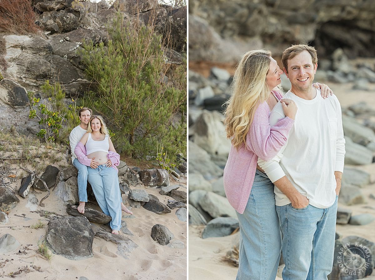 DT Fleming Beach was the perfect backdrop: golden sand, turquoise waves, and the kind of breezy light that makes everything glow. Ashlan’s happiness practically radiated, and Cale’s easy smile matched it perfectly. Together, they reminded us why it’s so important to pause and document the in-between moments, the anniversaries, the pregnancies, the trips taken to savor just a little more “us time” before life changes again.