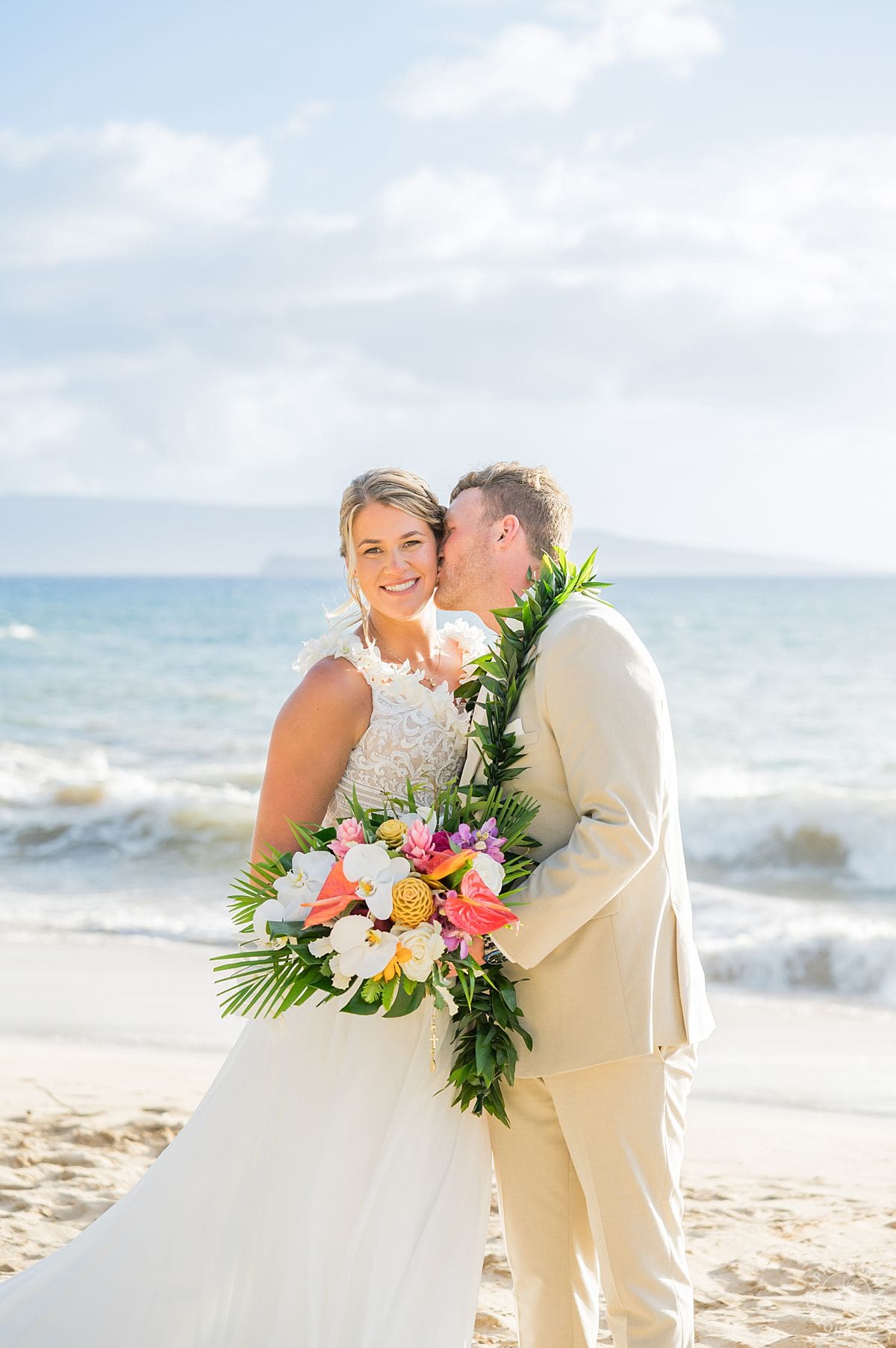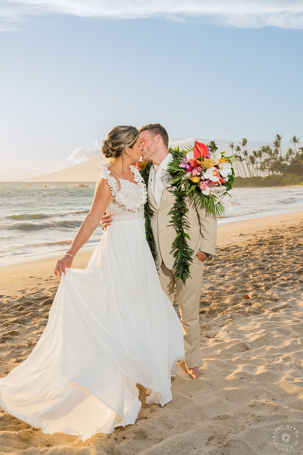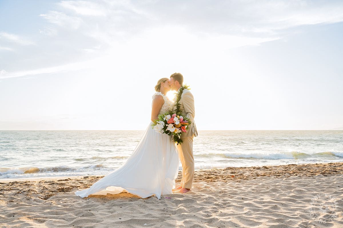 And then, just when the light was that soft, dreamy pink that only Maui can deliver, our Maui wedding photographer snuck them away for some just-married portraits on the beach. Ashley looked absolutely radiant, with the most stunning bouquet of tropical florals and a glow that only comes from marrying your best friend. Brady looked so handsome beside her, calm and beaming.