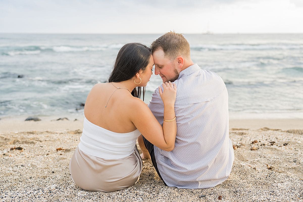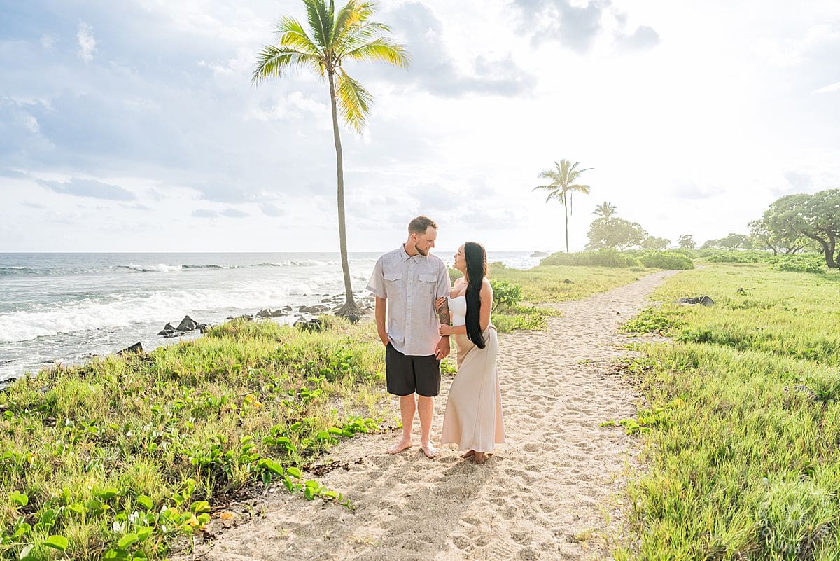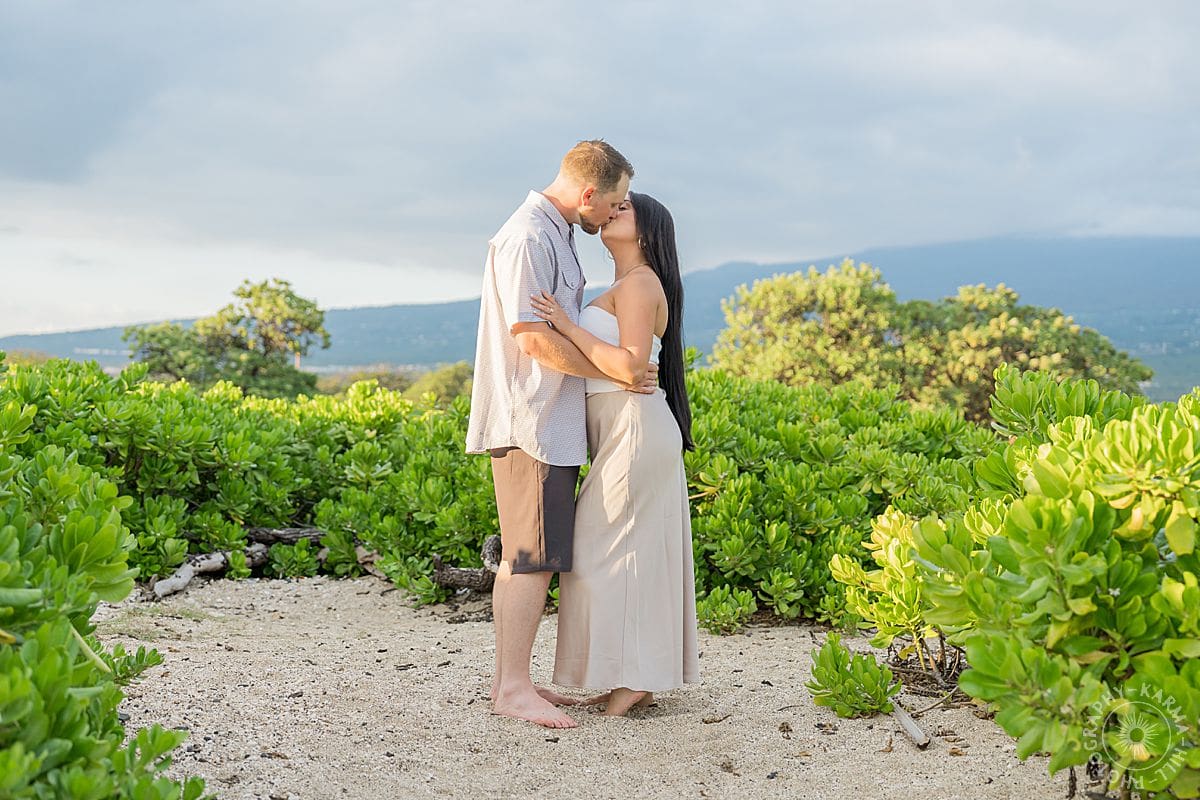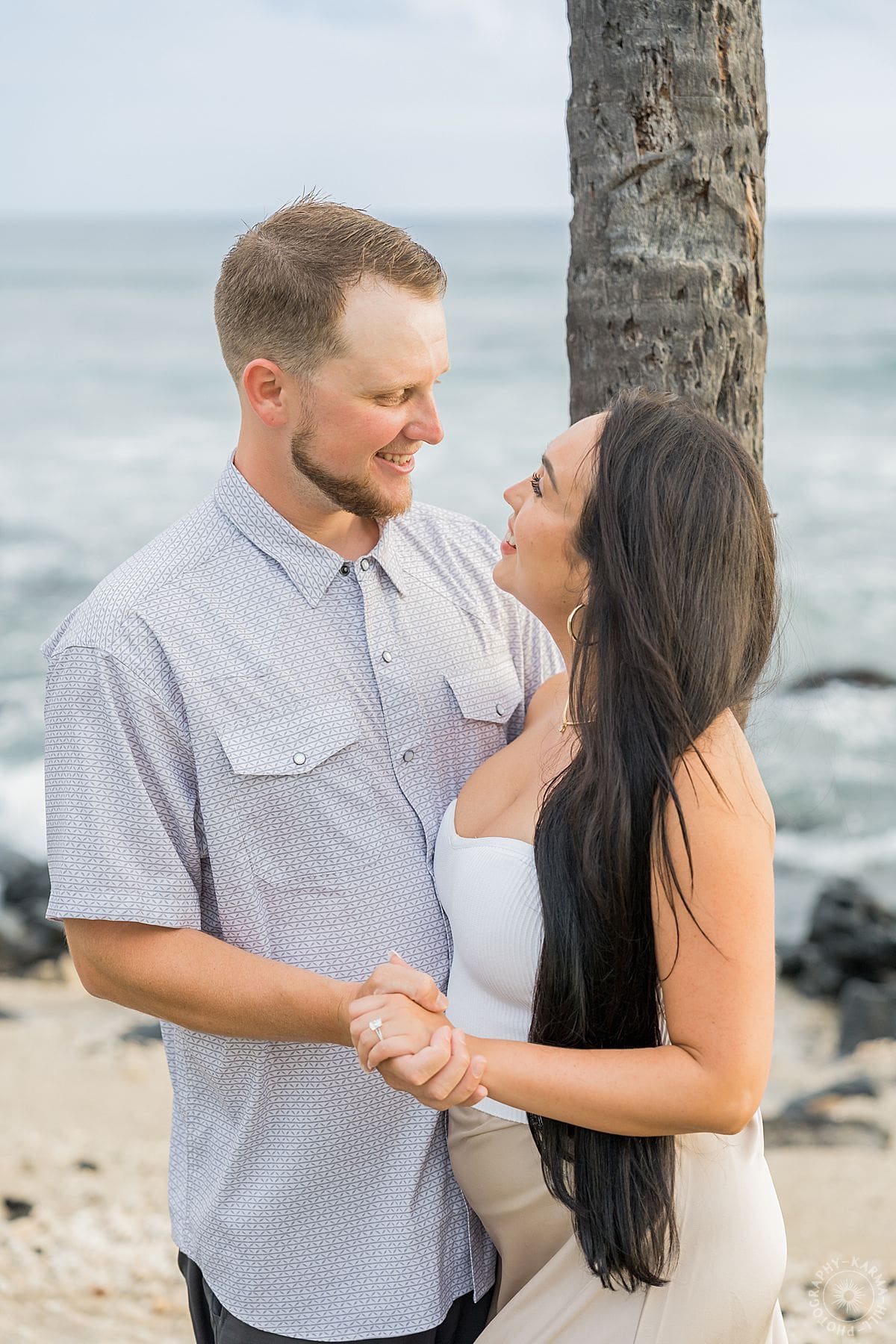Austin and Mia’s Big Island proposal portrait took place at Old Kona Airport Beach, where lava rocks meet golden sand and the sky can’t decide if it wants to be pink, gold, or just impossibly dreamy. It was the kind of evening that makes you feel like something big is about to happen. Spoiler alert: it did.