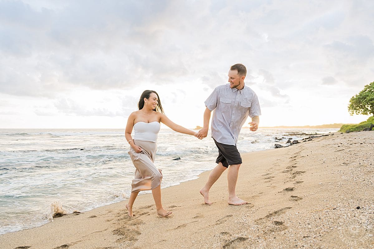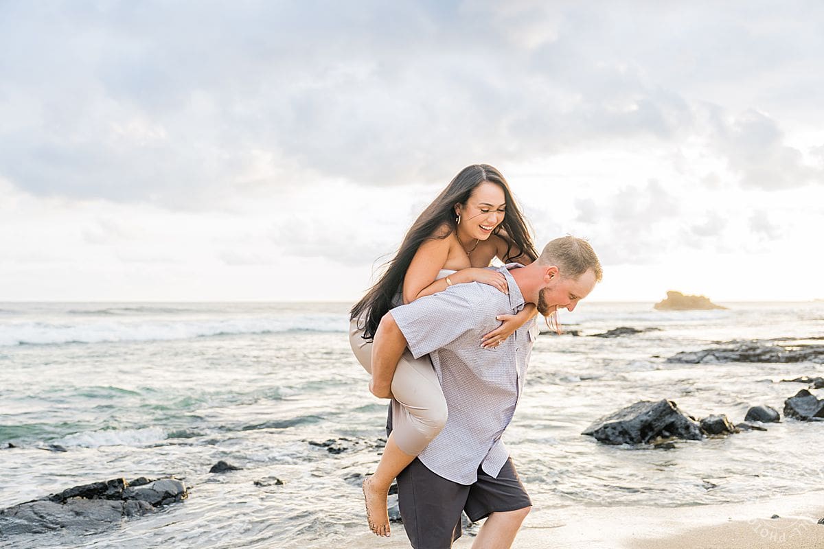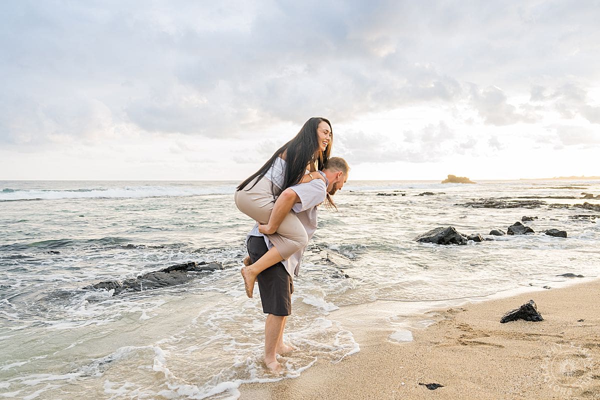After the big moment of their Big Island proposal portrait, they strolled the beach together, hand in hand, glowing from head to toe. The beach continued to show off, and the lava rocks and waves made the most dramatic, romantic backdrop for their newly-engaged portraits. These two have been highschool sweethearts since 2015!