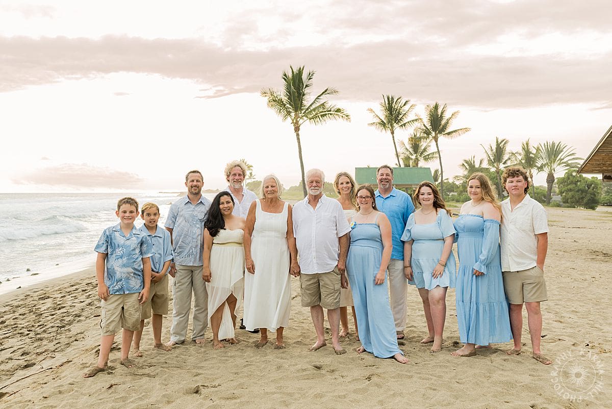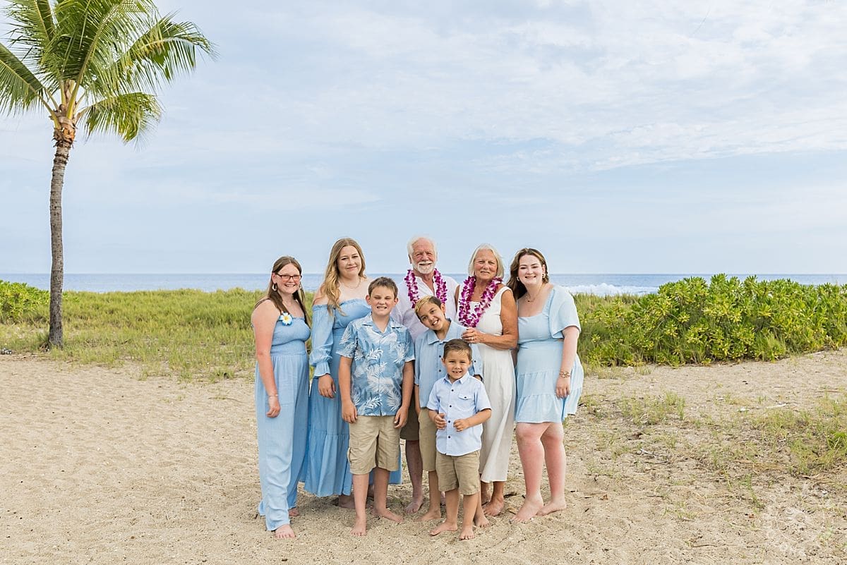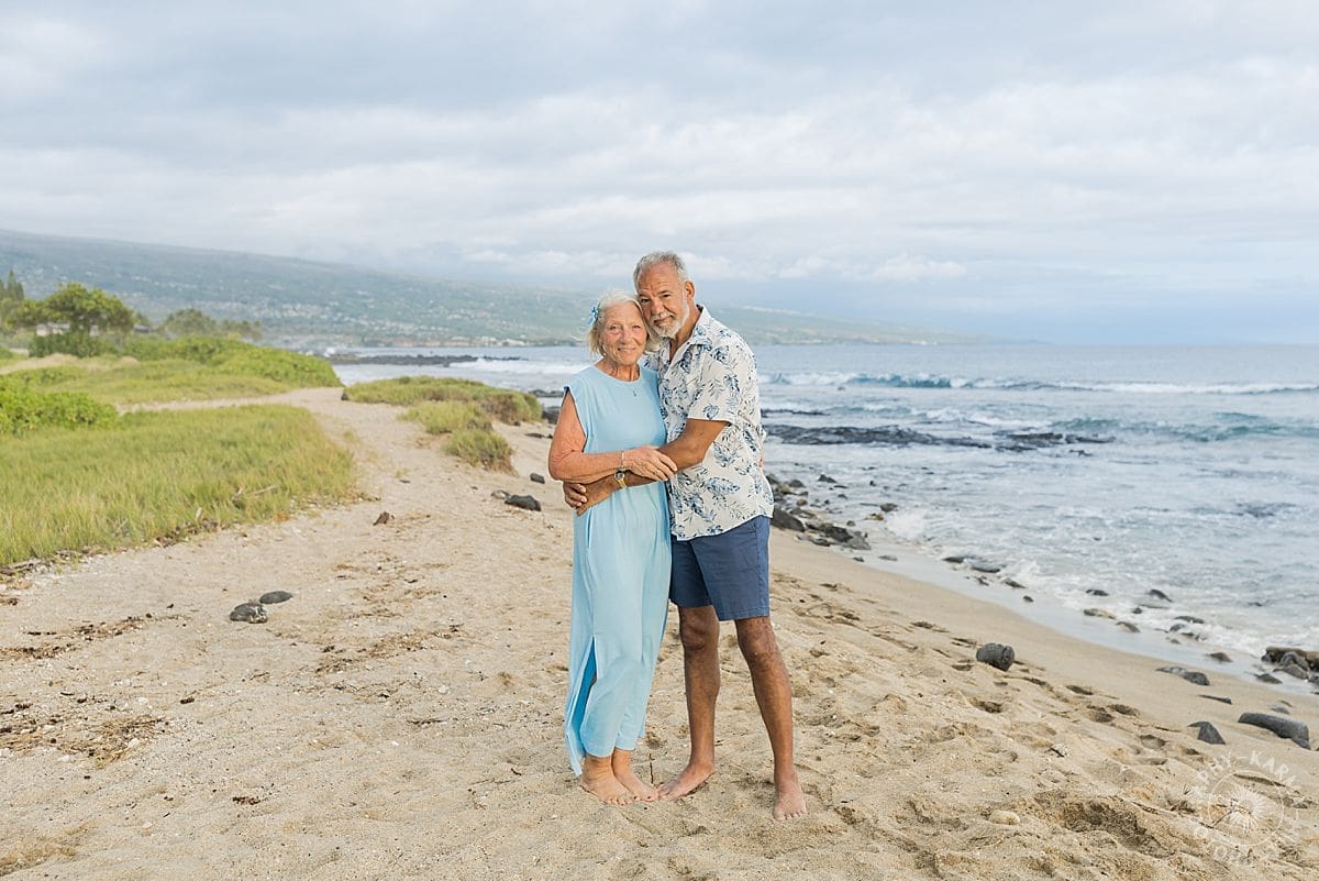 For Sandra and Bob, who first honeymooned in Hawaii 50 years ago, it was a full-circle moment. They’ve returned to the islands again and again over the years, escaping Alaska’s long winters to bask in Hawaii’s warmth. But this trip, the one where all of their family stood beside them on the beach, was something extraordinary. And that’s exactly why this Big Island family portrait was so important!