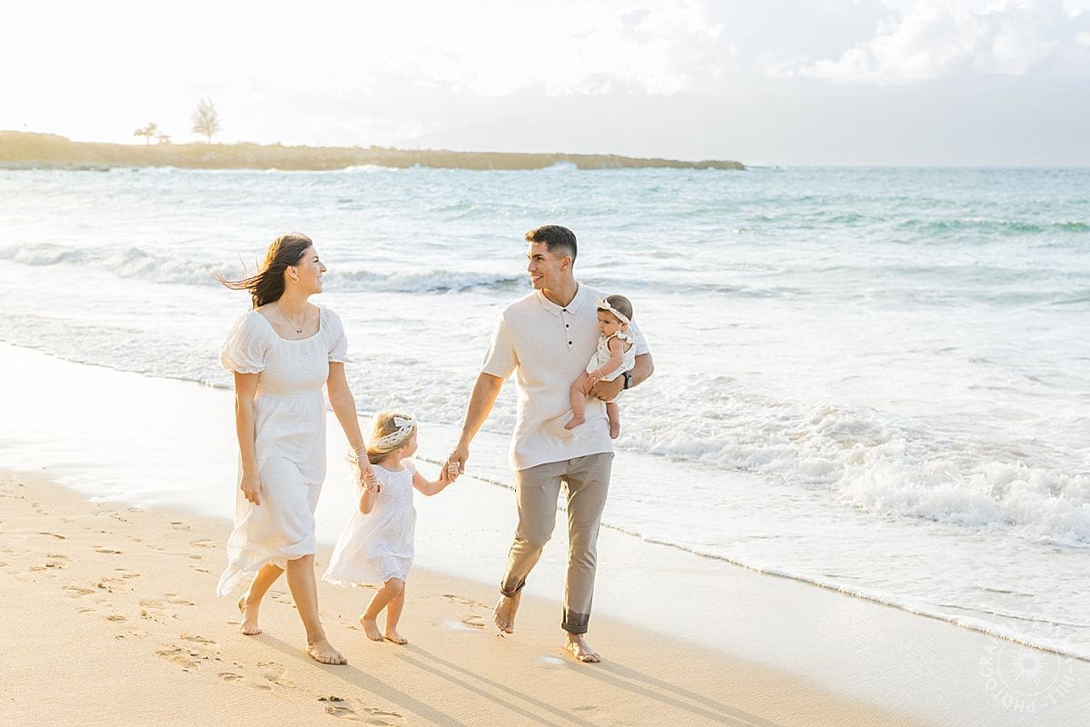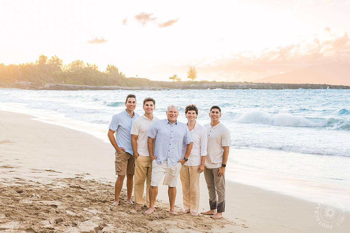 The colors during the Boettcher family’s session were absolutely dreamy, the perfect palette for a Maui celebration. Their soft whites paired with the turquoise ocean created the freshest, breeziest look, like they’d stepped straight out of a summer storybook. And then the golden glow hit, that warm Maui light wrapping around them like a hug from the setting sun…
