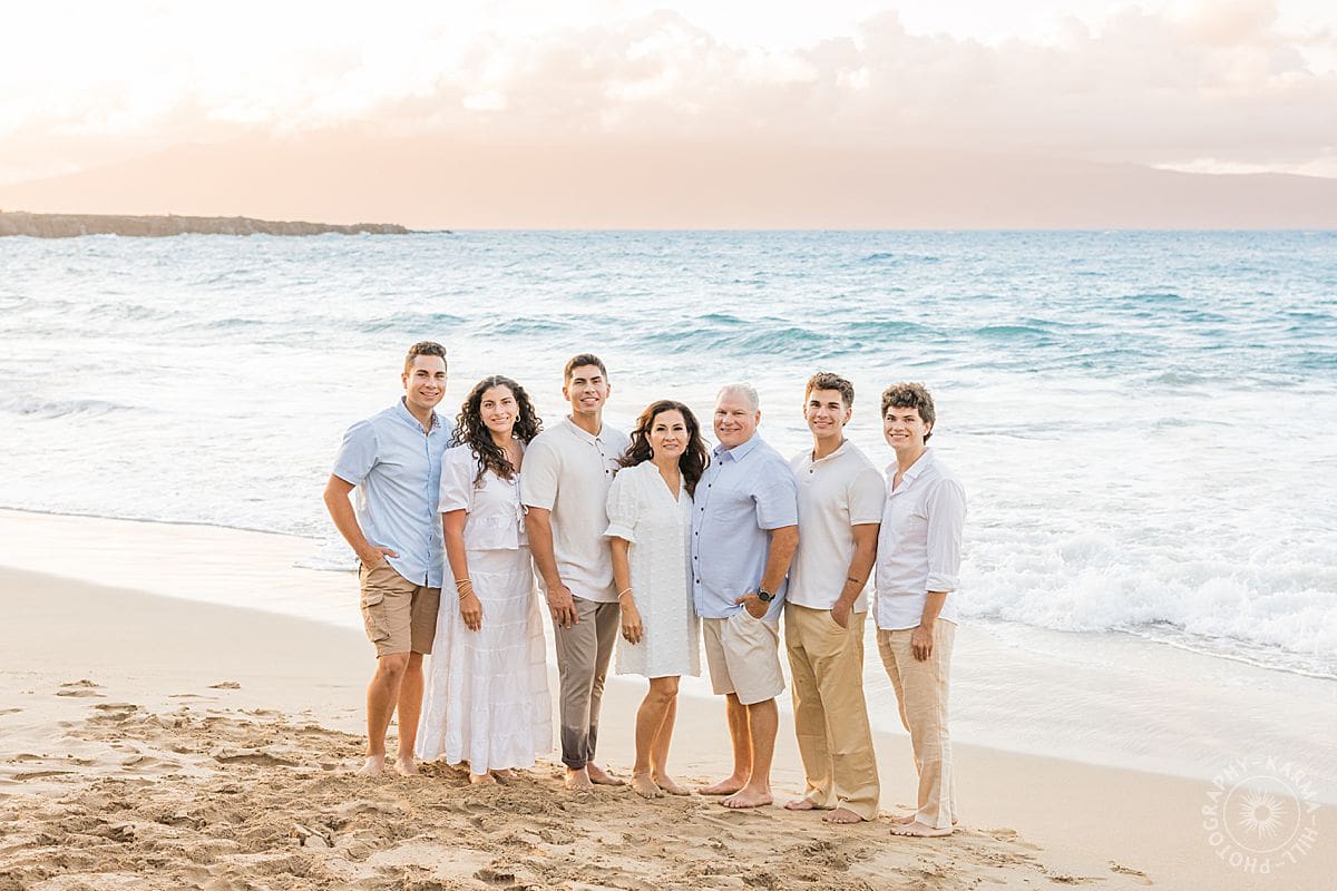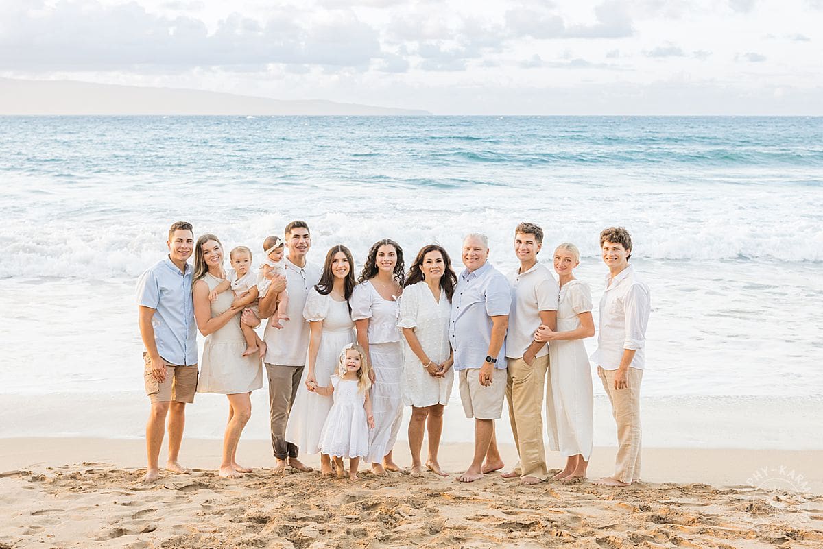 With the ocean breeze, sparkling blue water, and golden light pouring across the sand, the whole afternoon felt like a postcard come to life. Bringing a large family group together on vacation, especially during a wedding week, is no small feat, but everyone showed up with big smiles, laughter, and that unmistakable Maui glow...