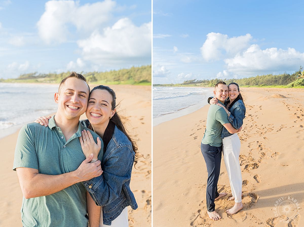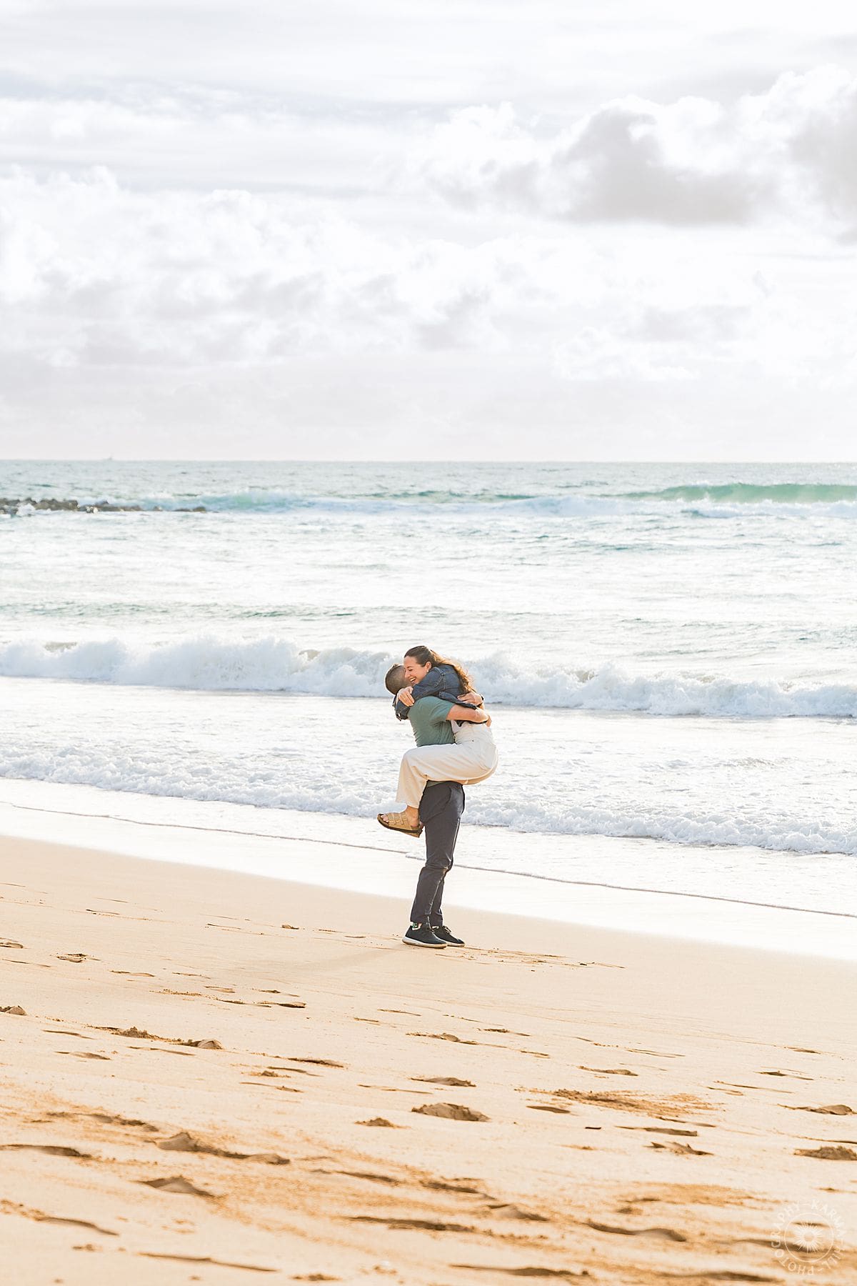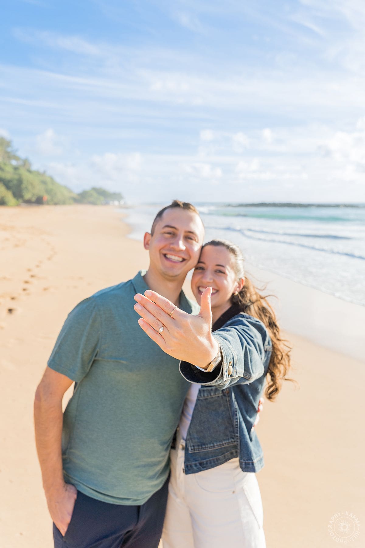 Kealia Beach delivered its quiet magic effortlessly. Soft sand, rolling waves, and an open horizon created a space that felt peaceful and intimate all at once. And when the moment happened? We captured the exact moment Brian got down on one knee! It was a total ninja move! The proposal itself was tender and heartfelt, a moment filled with happy tears and so much excitement. Samara’s joy was radiant, Brian’s relief and happiness unmistakable!