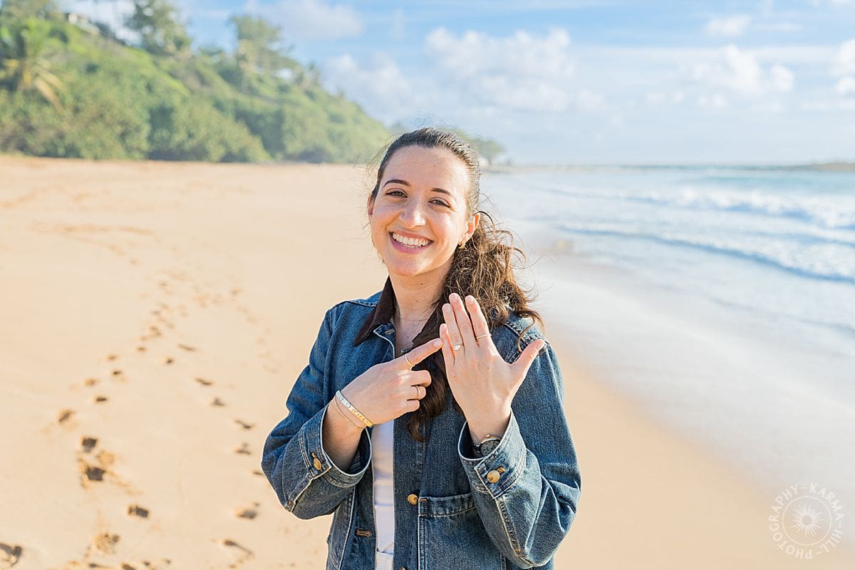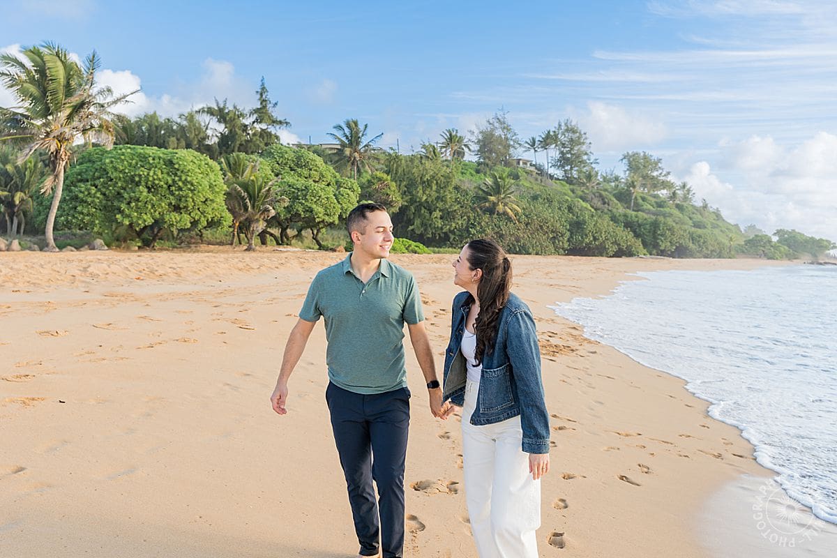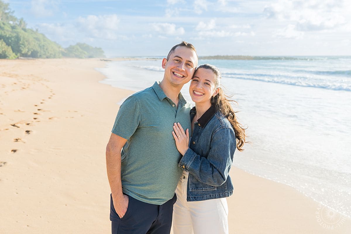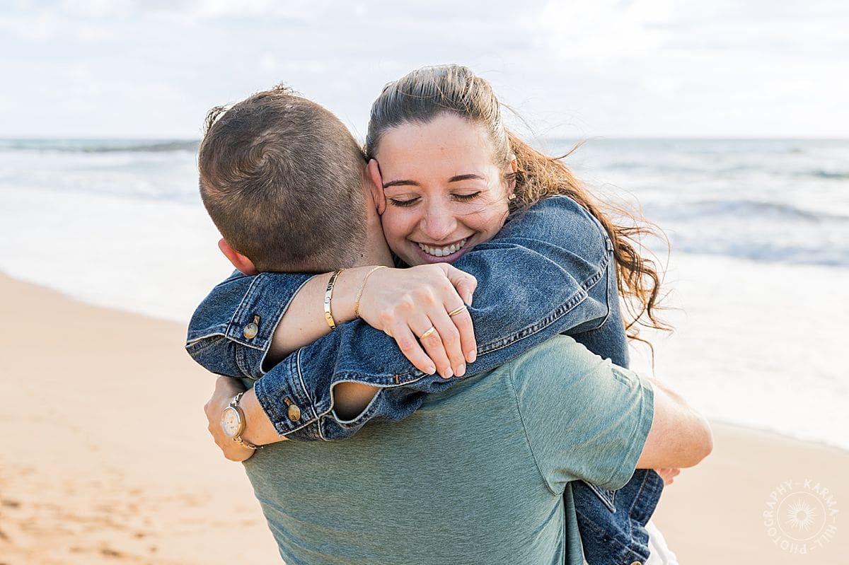Kealia Beach delivered its quiet magic effortlessly. Soft sand, rolling waves, and an open horizon created a space that felt peaceful and intimate all at once. And when the moment happened? We captured the exact moment Brian got down on one knee! It was a total ninja move! The proposal itself was tender and heartfelt, a moment filled with happy tears and so much excitement. Samara’s joy was radiant, Brian’s relief and happiness unmistakable!