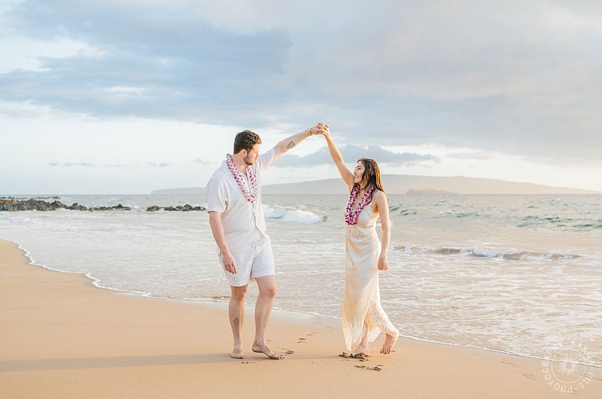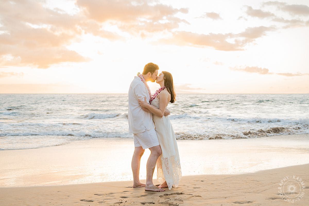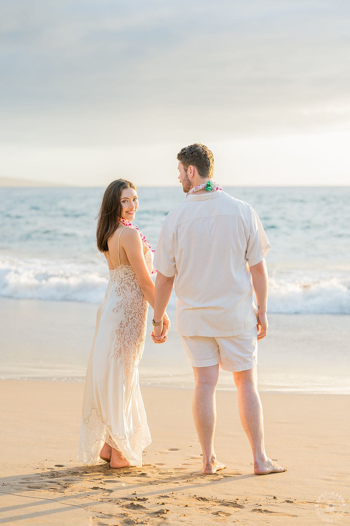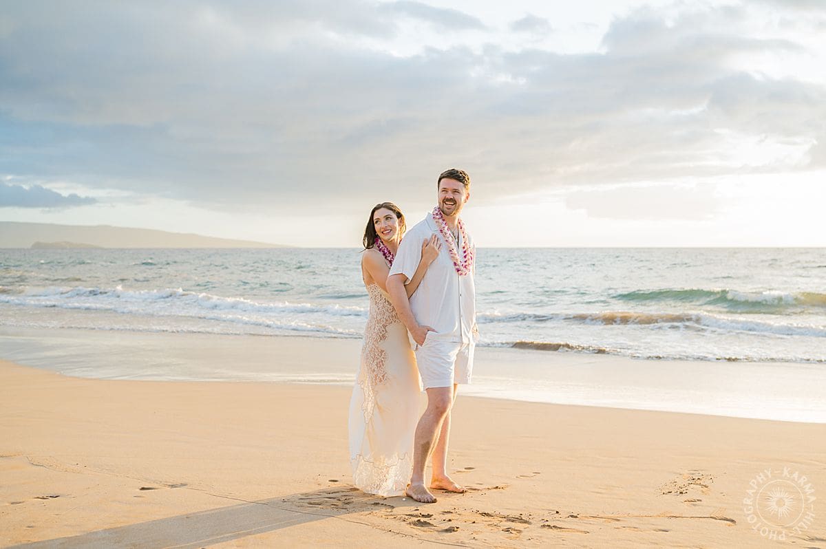 The sunset that followed was, frankly, showing off. Soft pastels, golden edges, that dreamy Maui glow that makes everything look more romantic. Casey and Emily leaned into it, posing, laughing, kissing, and taking their time to savor every second of this new beginning. No rushing, no stress. Just two people, a beach, and a story they’ll never forget.