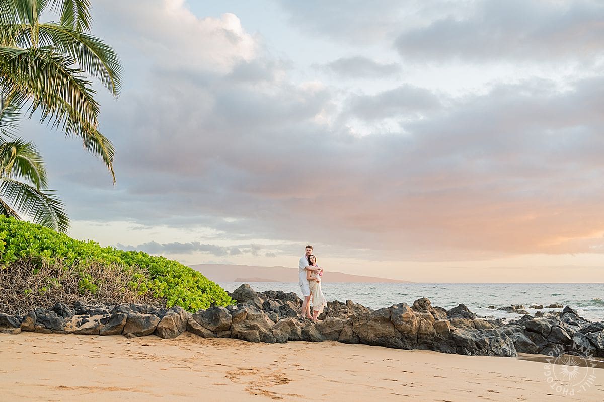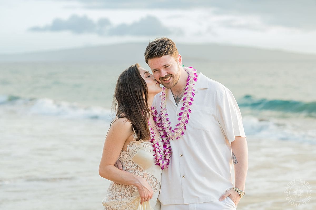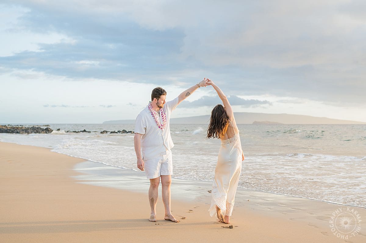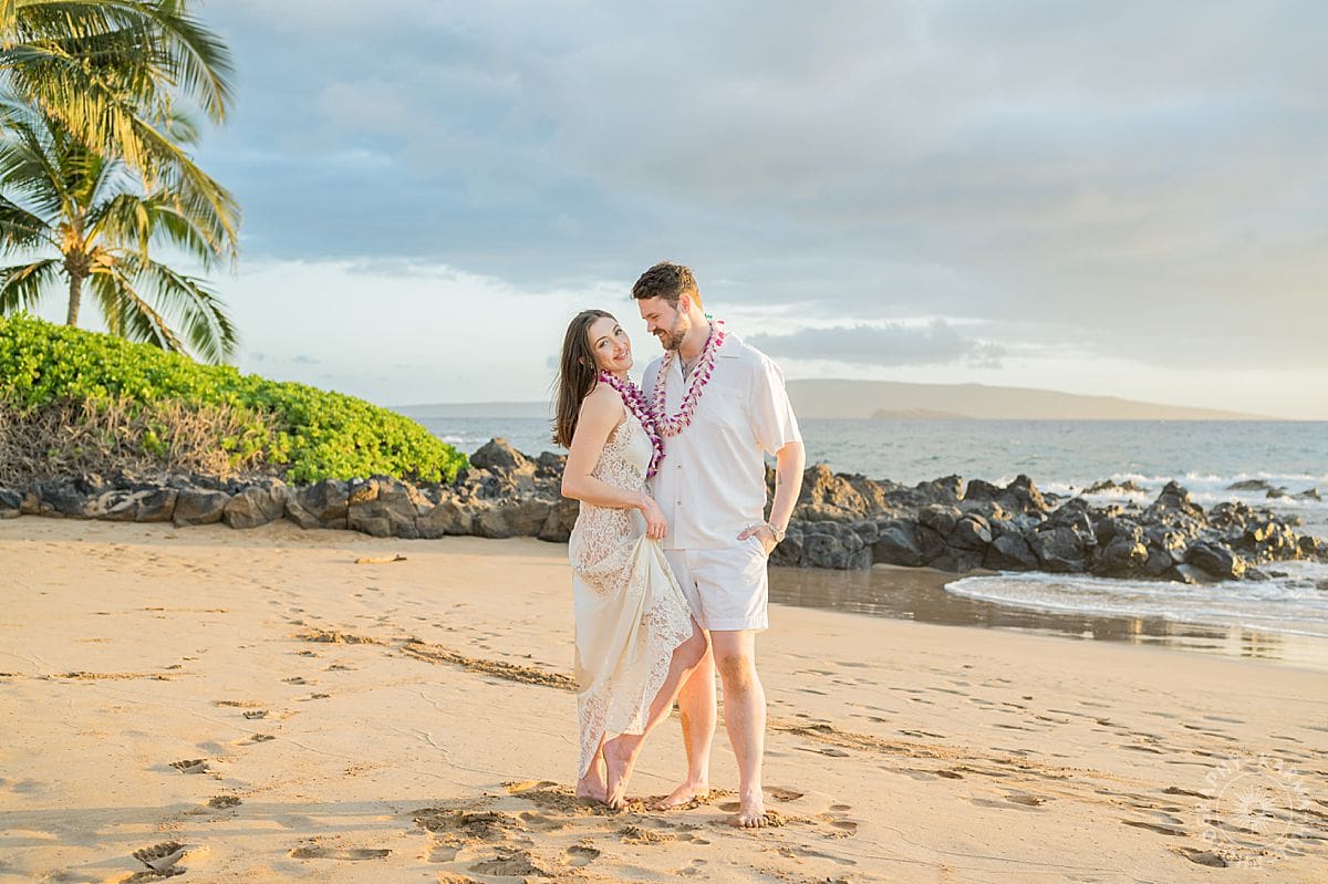 The sunset that followed was, frankly, showing off. Soft pastels, golden edges, that dreamy Maui glow that makes everything look more romantic. Casey and Emily leaned into it, posing, laughing, kissing, and taking their time to savor every second of this new beginning. No rushing, no stress. Just two people, a beach, and a story they’ll never forget.
