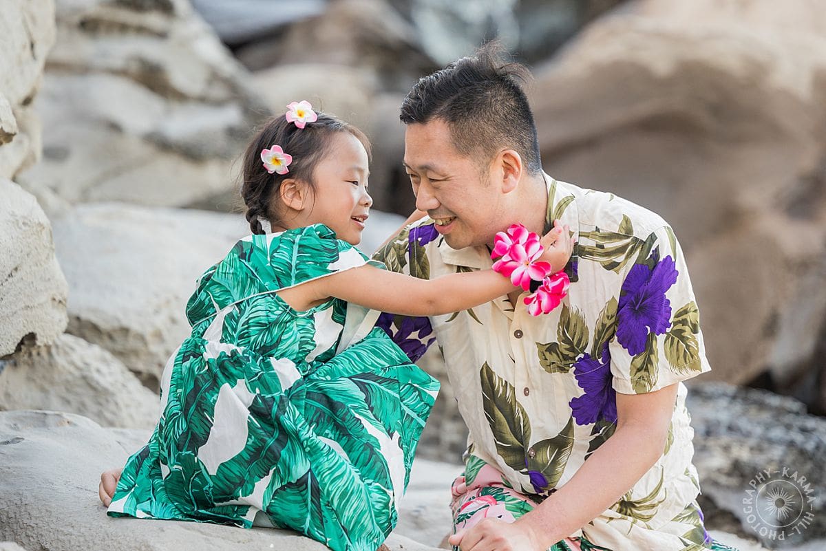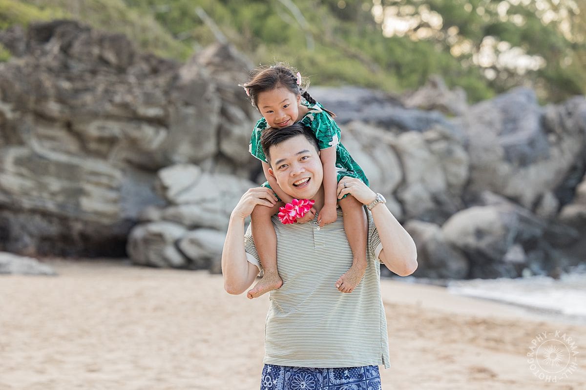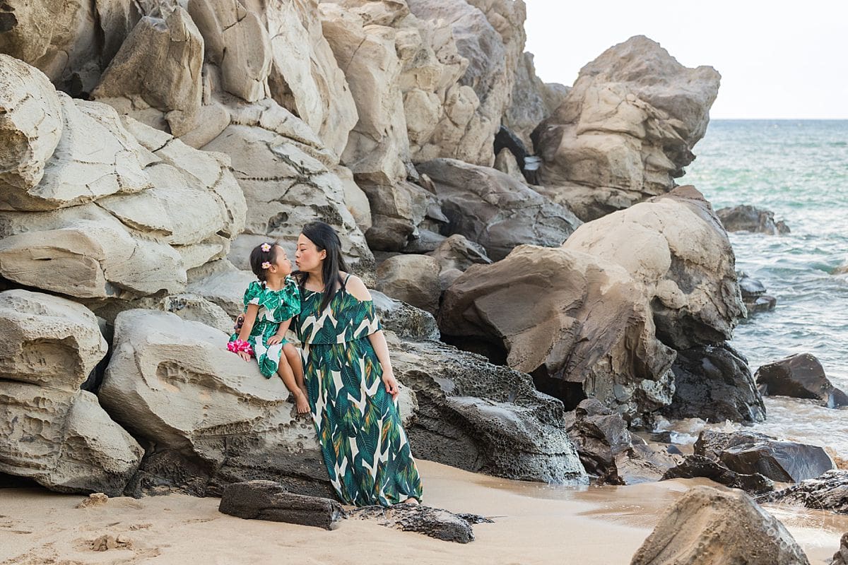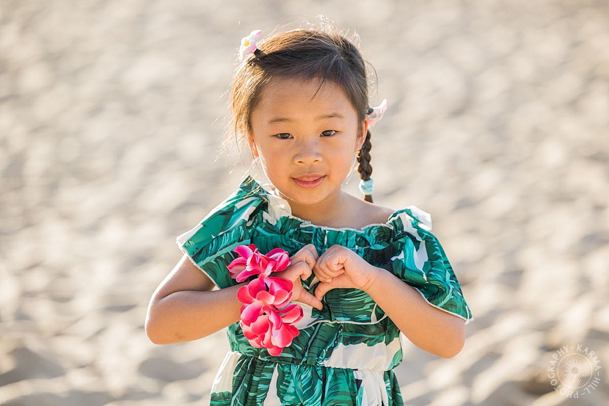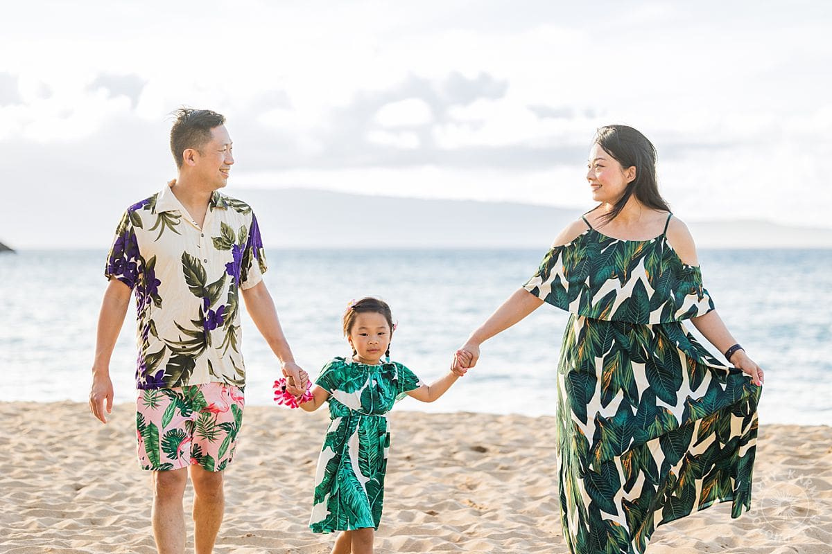 Okay, picture this: The ocean is doing that shimmery thing it does, DT Fleming Beach is serving up soft golden light like it’s its job (spoiler: it kind of is), and the Chan family is absolutely thriving in coordinated aloha prints. That’s the vibe.
