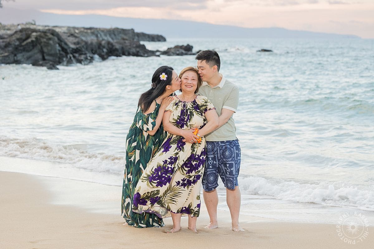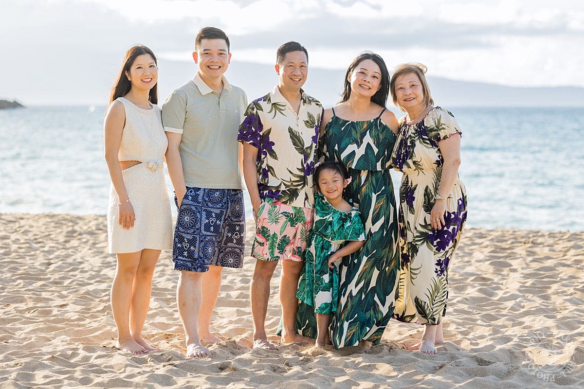 They laughed, they posed, and they let the candids work their magic. Honestly, it was one of those sessions where everyone looked like the best version of themselves, relaxed, happy, and totally in their element. Maui will do that to you. And what made their Maui family portrait even more special? They wore aloha prints and brought the aloha spirit!