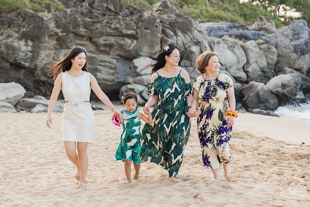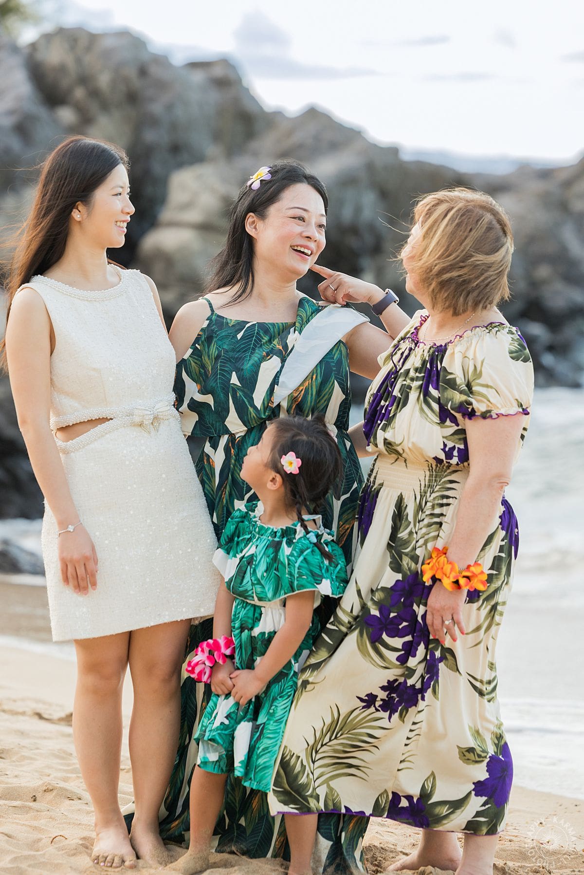 Fresh off Ronny and Kay’s wedding at the Ritz-Carlton (can we say a collective congrats!?), the Chans were all smiles, all laughter, and totally ready for a Maui family portrait session that felt less like posing and more like celebrating. Karen, Gabriel, and their daughter Arianna (who is five years old and a certified sparkle of joy) joined Mom Anita and the newlyweds to capture a moment in time that was just right.