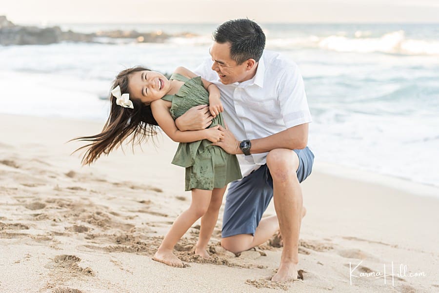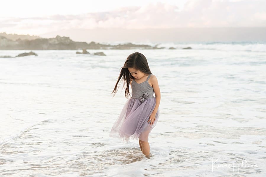 We love to go with the flow during your Hawaii family portraits! And when you’re contemplating your precious little one’s getup, consider the flow and movement of the fabric and cut. The two world-shakers above were a blast to capture — always on the go and sporting dresses almost as lively as they are! For special-occassion dresses with heaps of layers, check out the styles at JJ’s House.