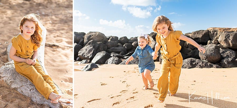 We love that jumpsuits are chugging strong on the fashion train for kids these days! I mean look how cute Baylee’s mustard jumpsuit is as she plays with her sister Zoey in Kauai! Zulily is just one of the many places we’ve found jumpsuits that are fit for Hawaii family portraits!
