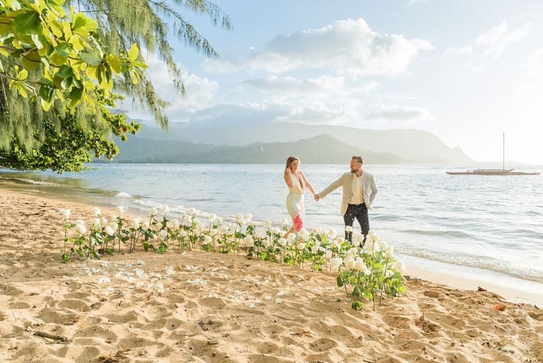 George had a plan. Not just any plan, the plan for a Kauai proposal portrait. The kind where the light hits just right, the ocean sparkles like it’s in on the secret, and your best friend’s about to become your forever. On the golden shores of Pu’u Poa Beach, George led Aimee over to the