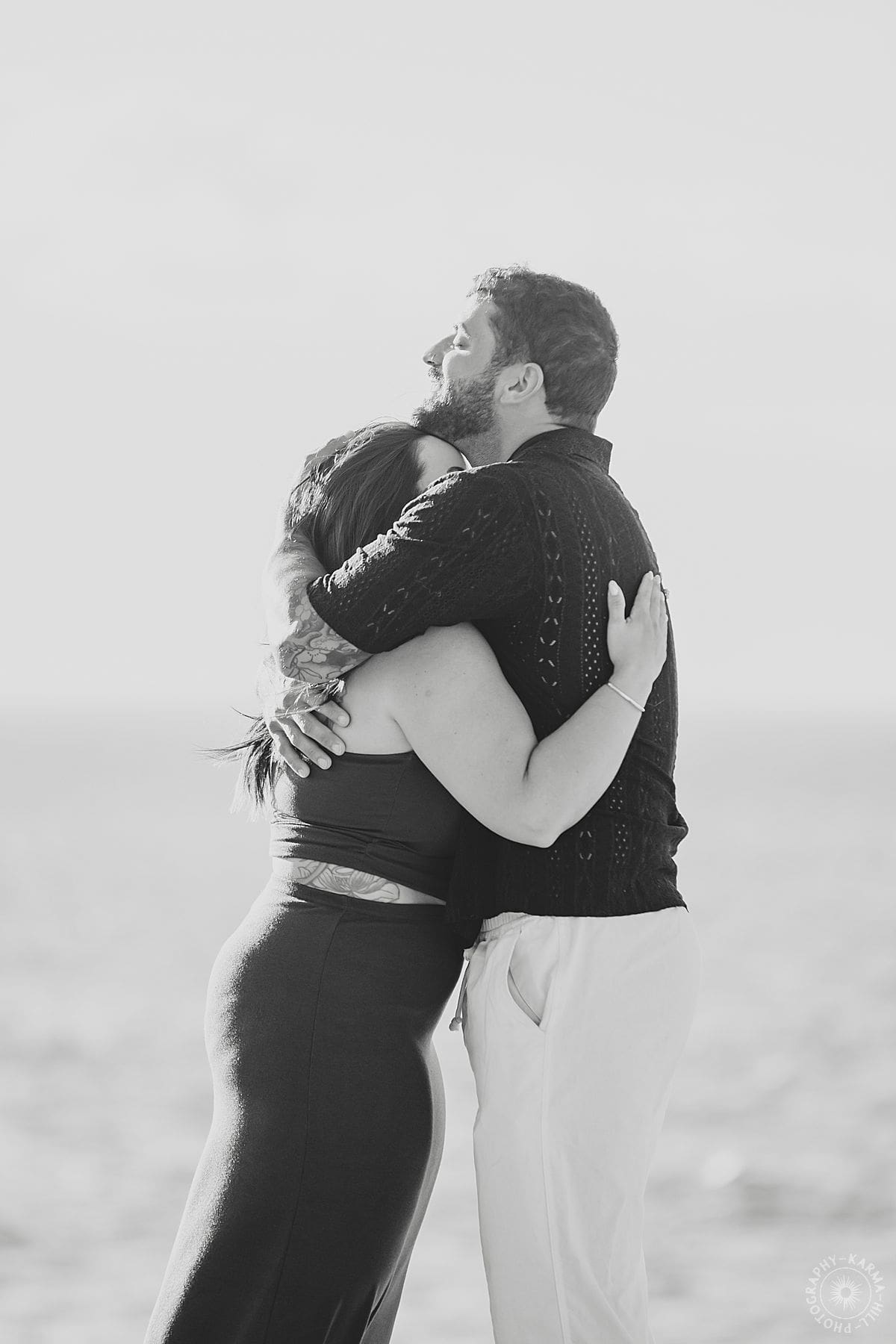 The plan? Genius. He told Brianna they were doing a couples’ portrait session, so she wouldn’t suspect a thing when a photographer showed up. They began with a few relaxed shots, the kind that show their natural chemistry, until Danny surprised her, dropping to one knee on the cliffs of Ironwoods Beach. The ocean crashed dramatically below, the golden sun wrapped them in light, and Brianna’s expression said it all. And she said yes!