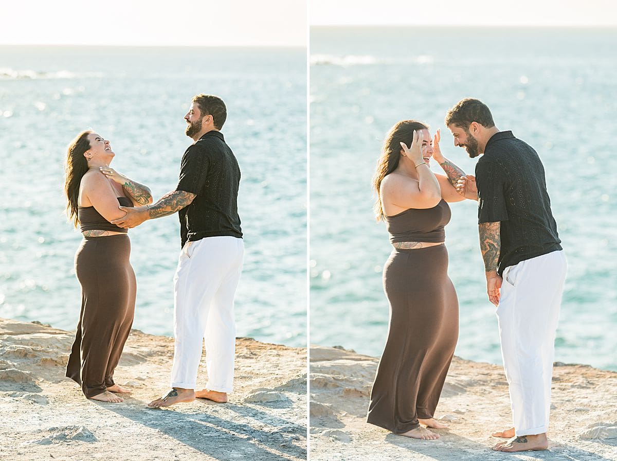 From there, the proposal turned into a portrait session filled with light and laughter. The two of them posed on the cliffs as the sun bathed everything in gold, their happiness radiating through every frame. Ironwoods brought its trademark drama, towering cliffs, rolling waves, and cinematic skies, while Brianna and Danny brought the romance.