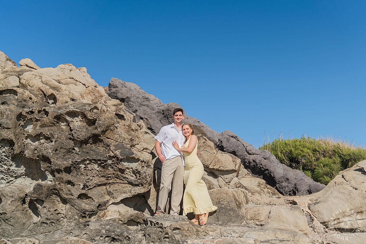 So when Drew began planning their once-in-a-lifetime trip to Maui, he knew it was time. After 4.5 years of shared dreams, late-night talks, and all the milestones in between, it was the perfect moment to take the next step. And he knew exactly where to do it: Ironwoods Beach, where the cliffs are dramatic, the light is golden, and the ocean glows blue…