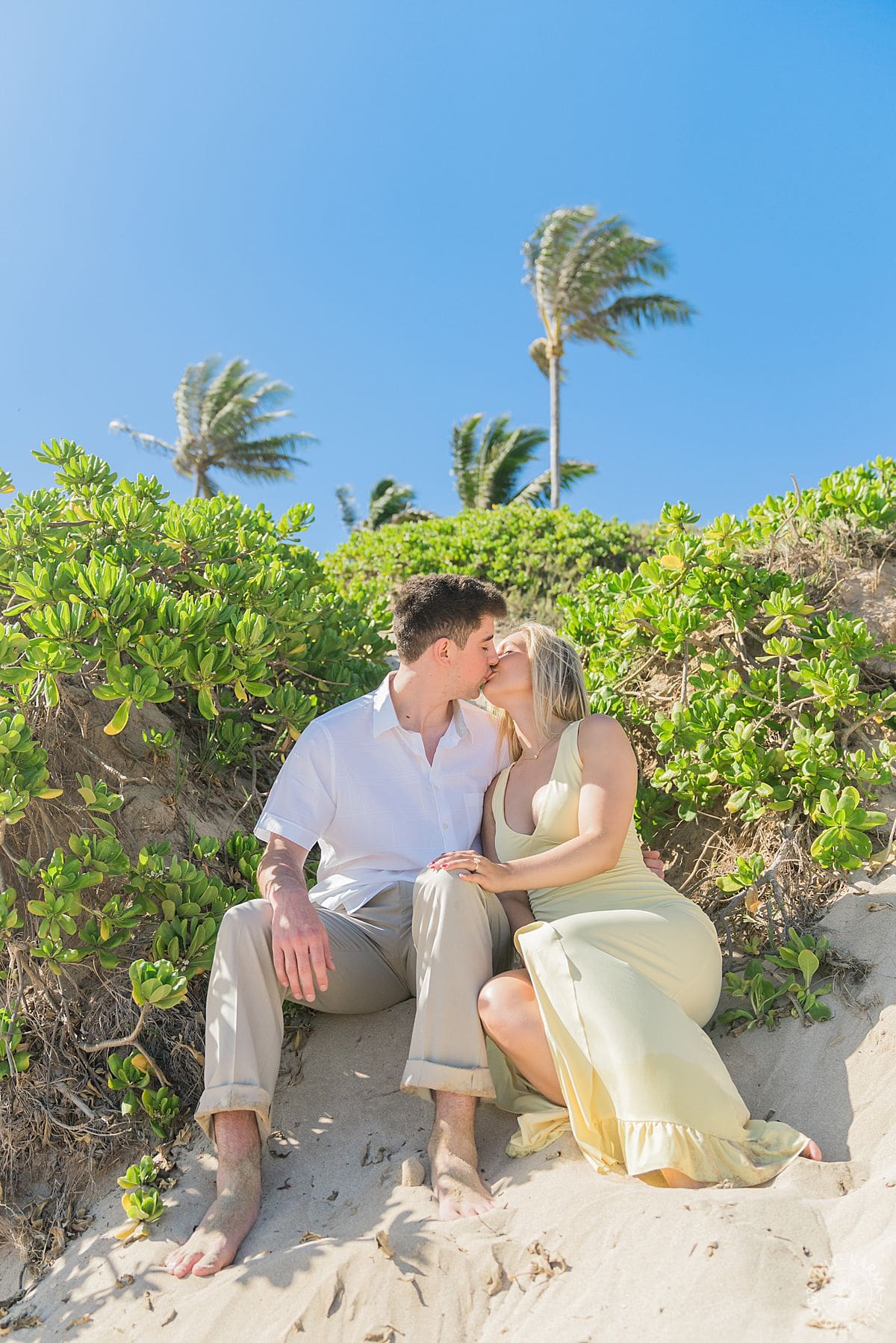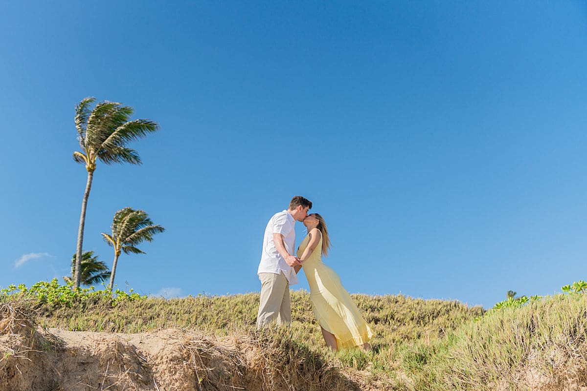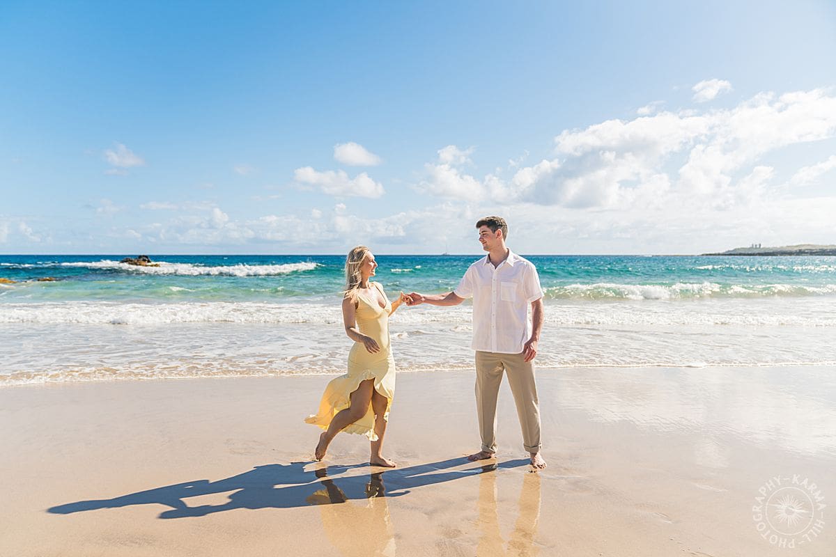 And can we talk about those colors? The ocean was a deep, living blue. The sand warm and soft beneath their feet. Trinity’s dress popped like sunshine. Everything just… worked. This is what we love about photographing proposals in Maui, it’s not just the scenery (though, let’s be real, it’s breathtaking). It’s the feeling. The anticipation. The joy that explodes when someone says yes!