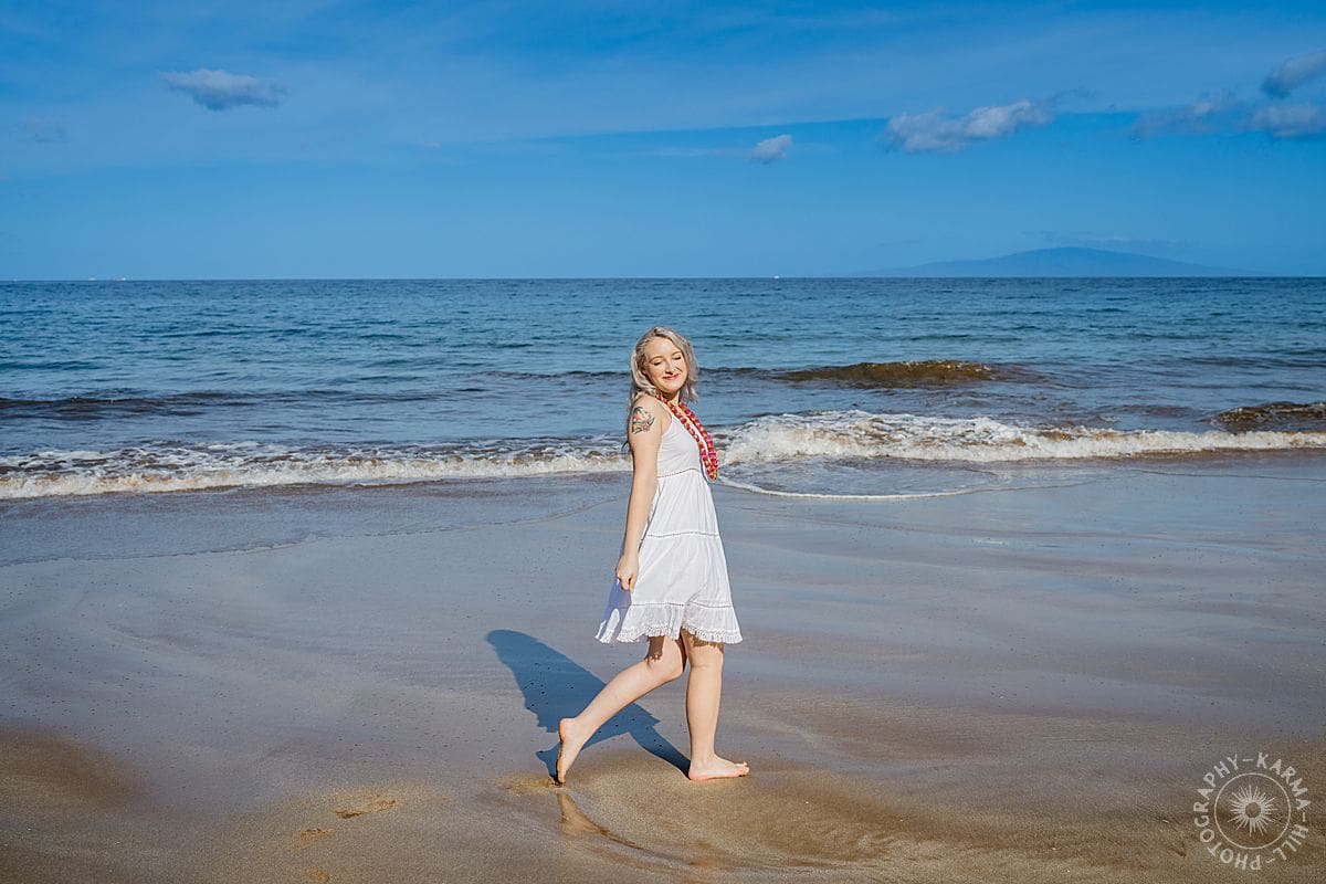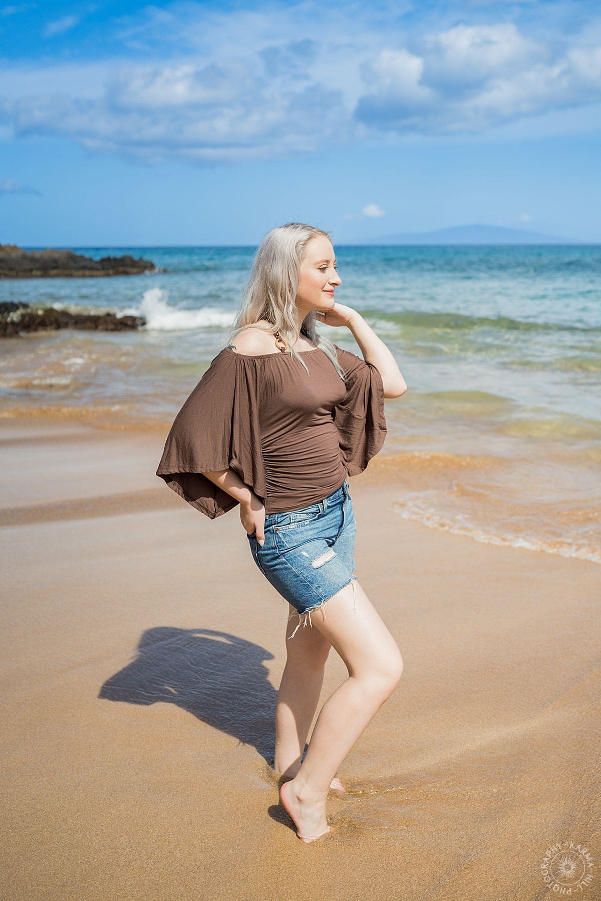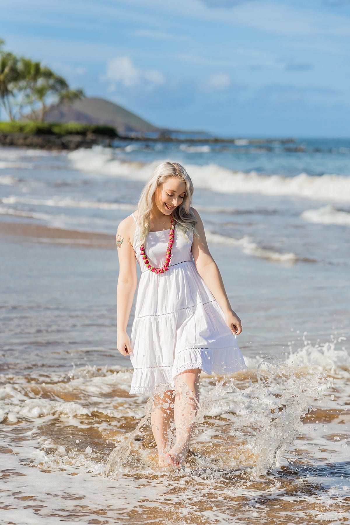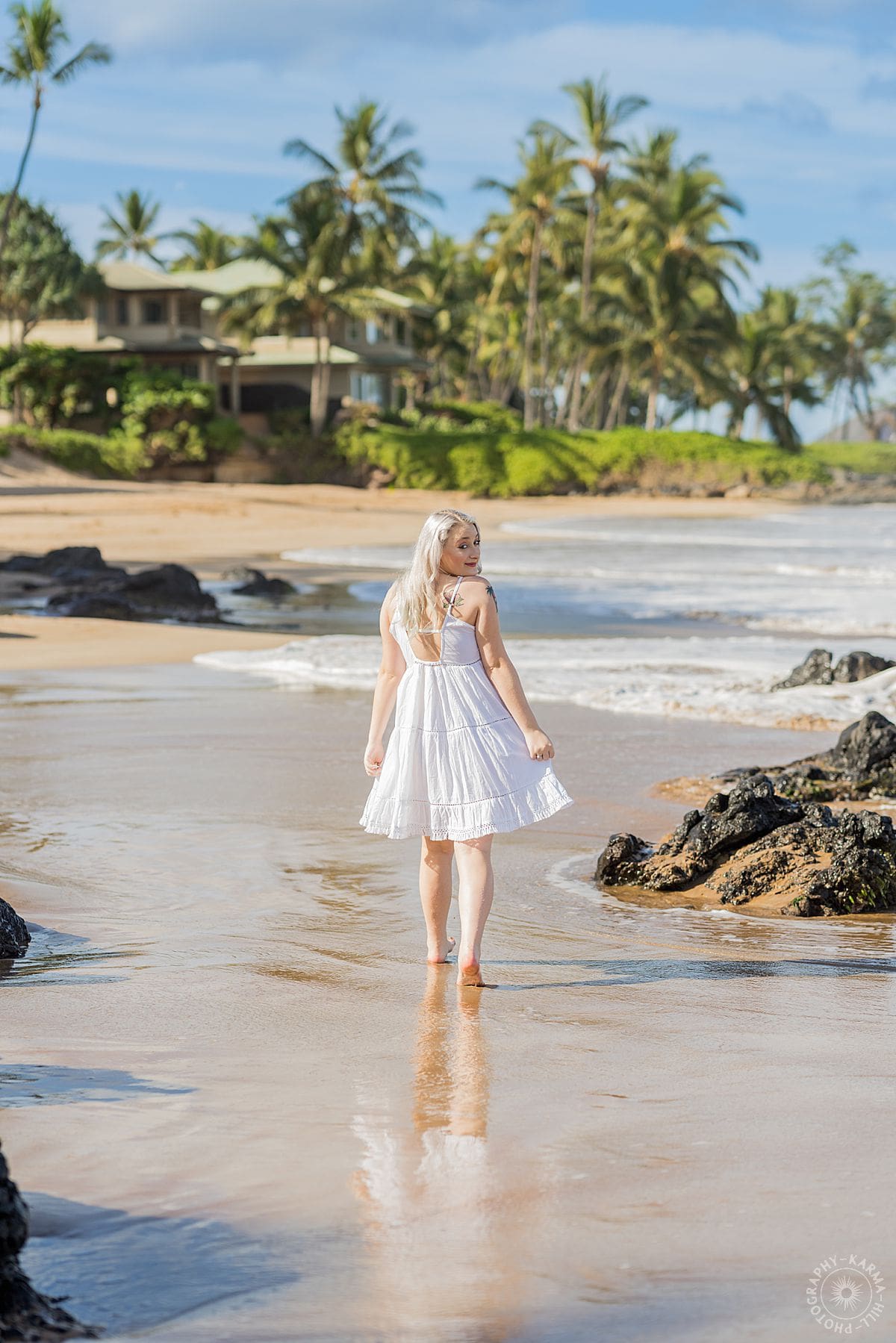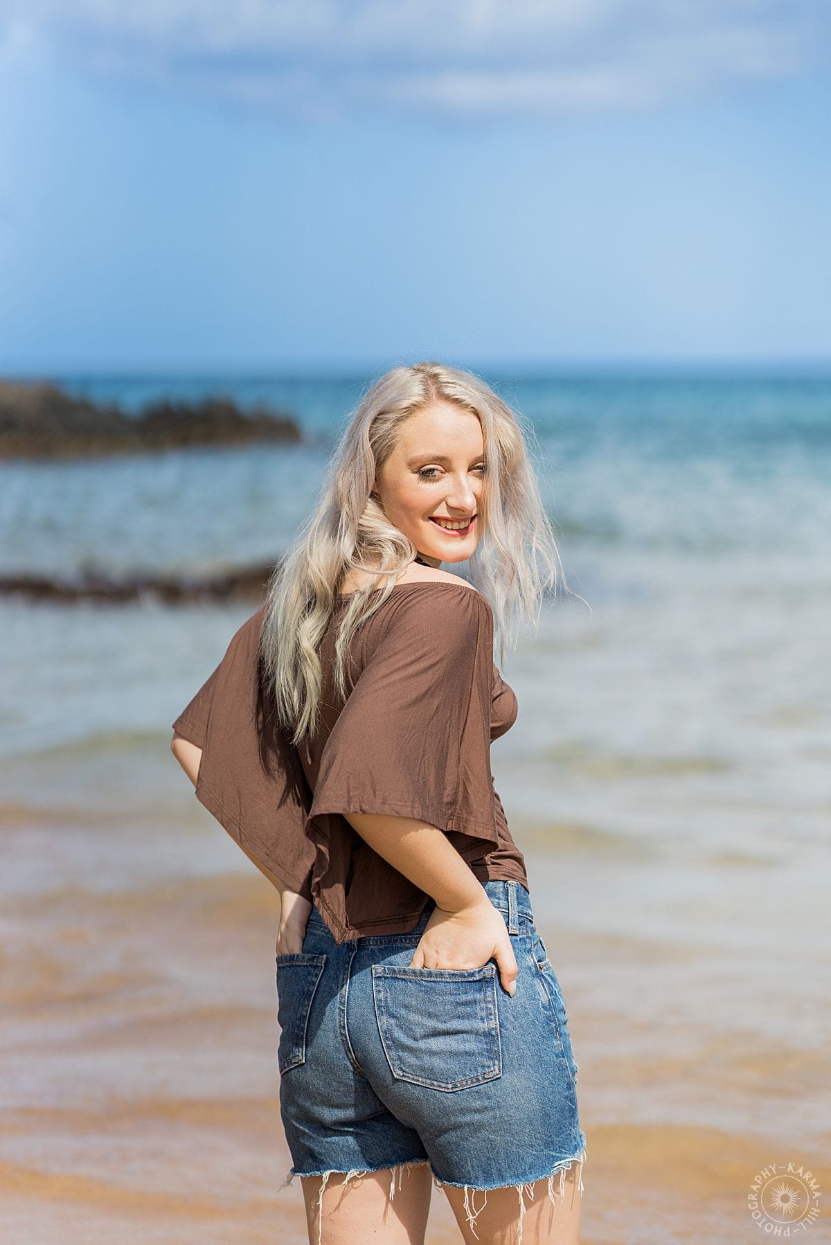 Then we made our way to Maluaka Beach, where the light shifted just enough to give us a little variety, while still delivering those rich, tropical tones. Each outfit change brought a new vibe, playful, elegant, carefree, all capturing different sides of Ella as she gets ready to step into her next chapter.