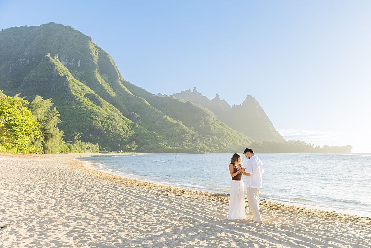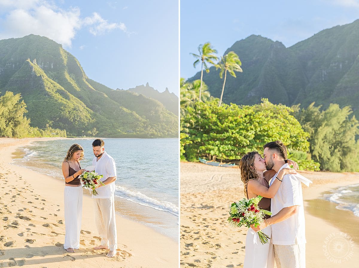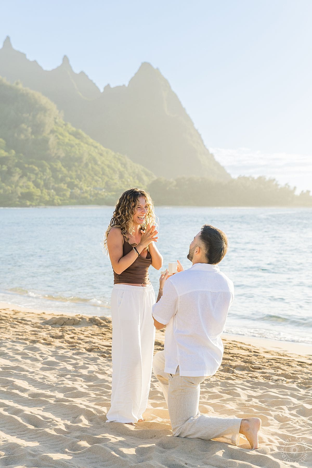 Tunnels Beach is a place that feels almost unreal, with a dramatic coastline, a lush tropical backdrop, and a kind of wild beauty that makes every moment feel more alive. Here, it was the perfect stage for this scene. The proposal was intimate but grand, heartfelt but framed by nature so spectacular it almost felt orchestrated.