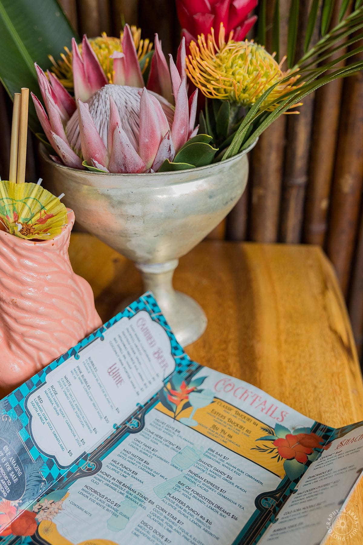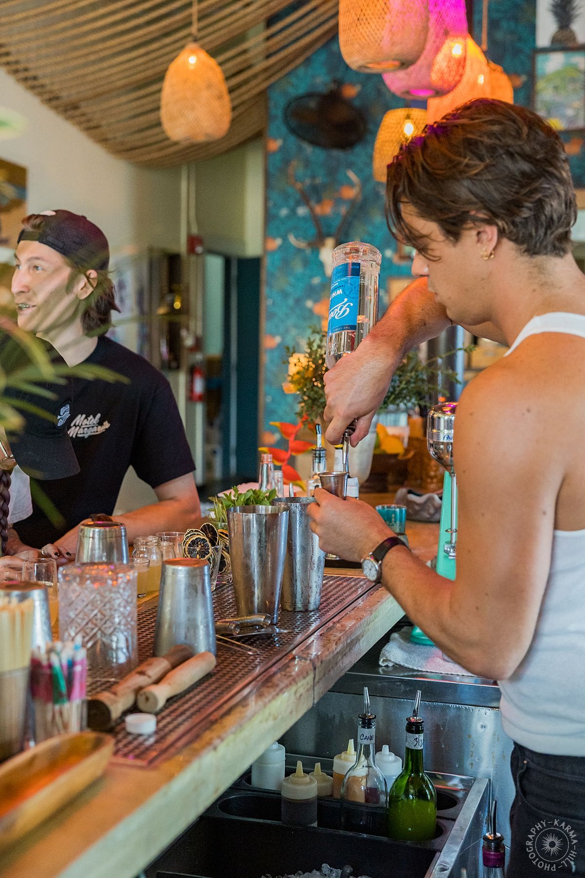As Esters reopens after its remodel, this session was all about capturing that renewed energy. The bar came alive with handcrafted drinks, beautifully plated pupu, and those little in-between moments that make a place feel unforgettable. You see the careful pour of a cocktail over ice. You notice the vibrant dishes created by their new chef Rob. Consequently, every detail felt intentional and full of flavor. The lanai overlooking IAO Valley added the dreamiest backdrop. It gives guests a place to slow down, sip something delicious, and stay awhile. It is easy to imagine settling in for happy hour with a daiquiri in hand. Or you might find yourself catching up with friends as the evening rolls in.