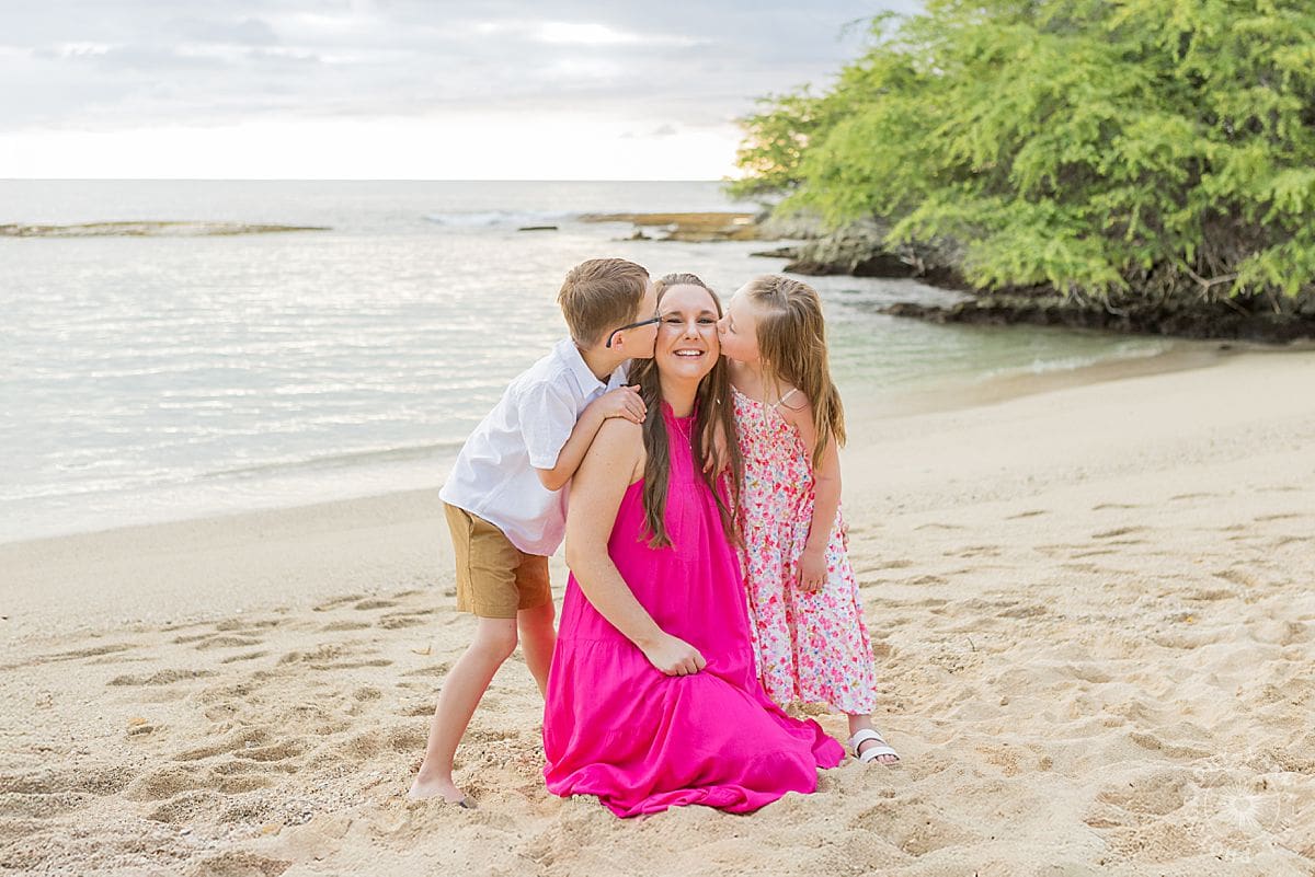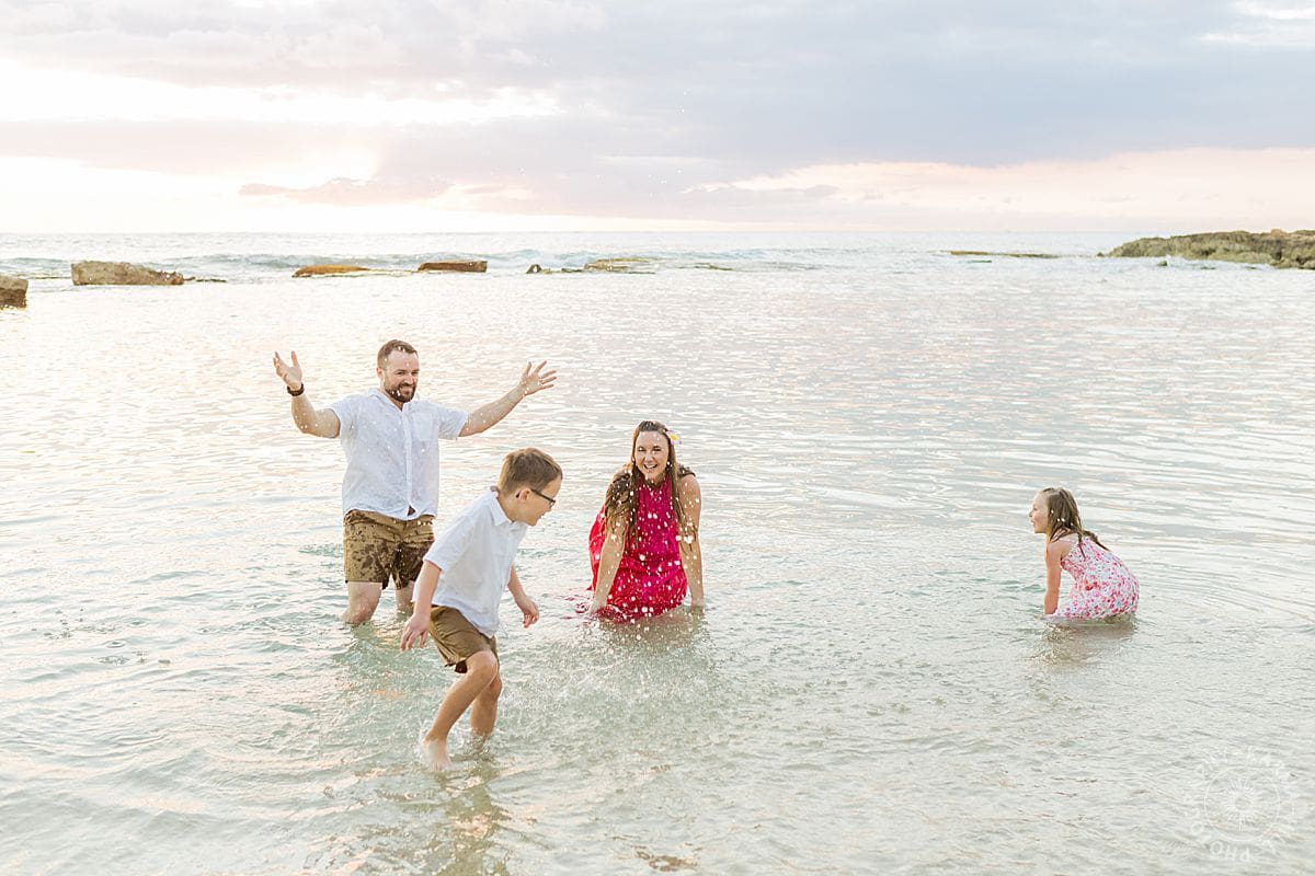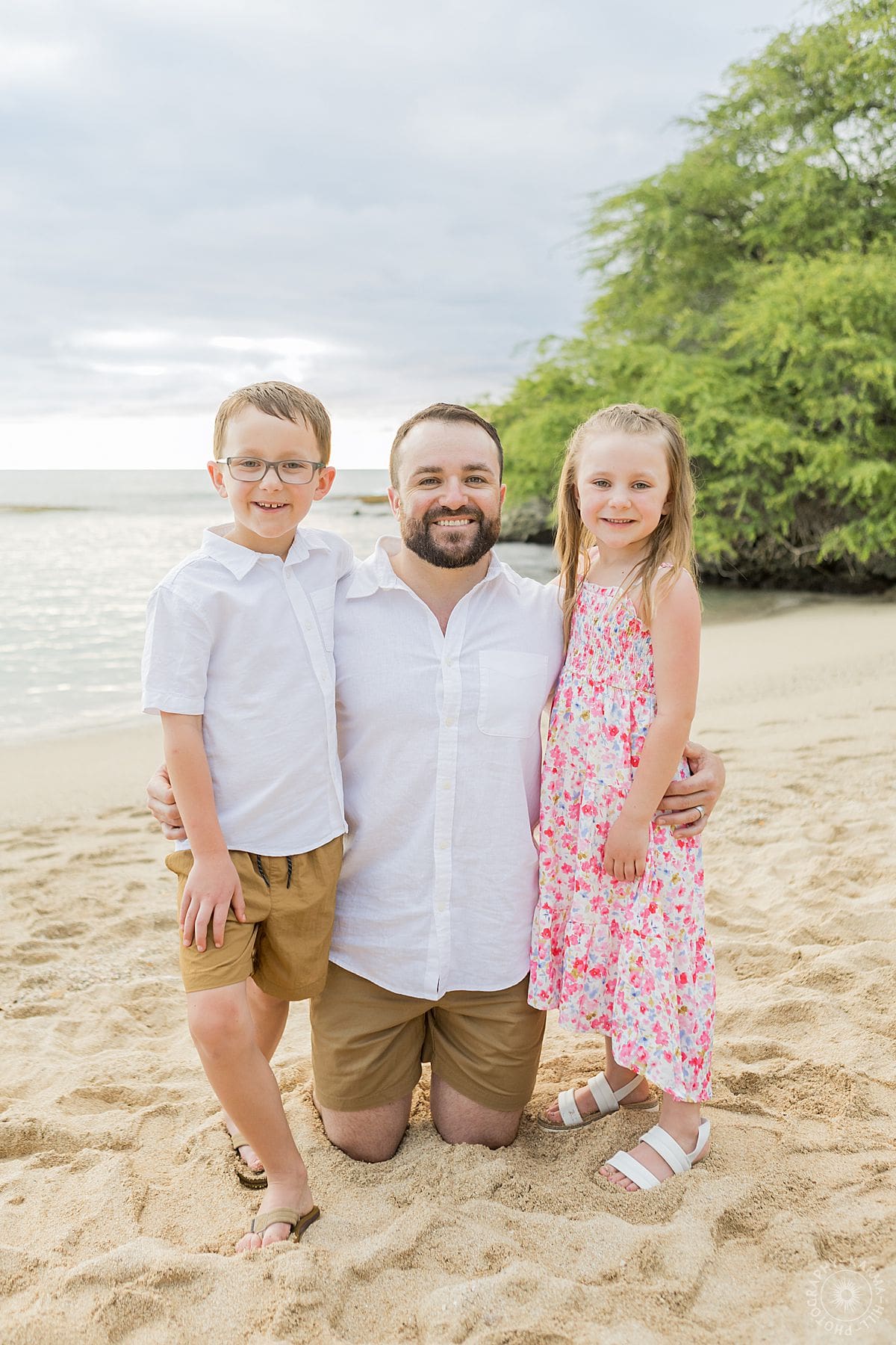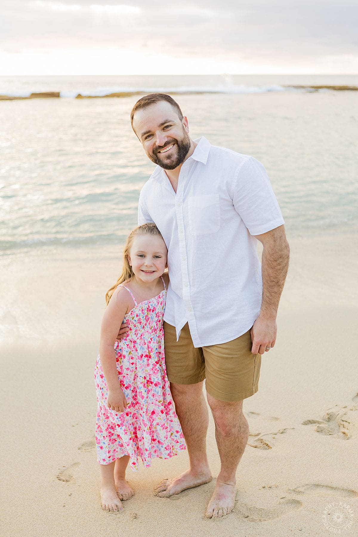 Michelle was all in on capturing it all in their Oahu family portrait—mom and kiddos, dad and kiddos, siblings bonding (or playfully bickering, let’s be real), and even a few sweet, just-the-two-of-them anniversary shots. The joy was palpable. The kids played, the parents laughed, and the ocean did its sparkly, cinematic thing. They clearly had so much fun playing and pulling silly faces!