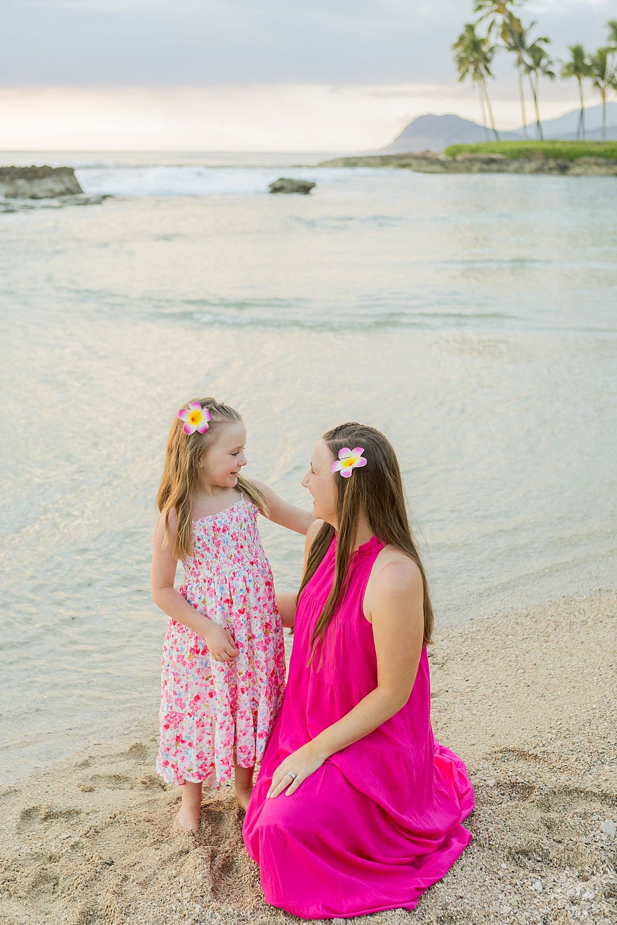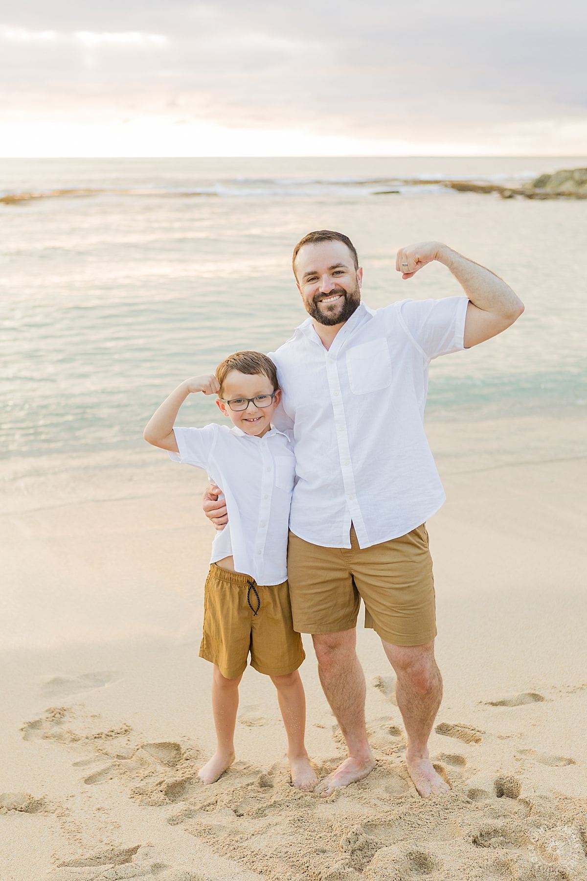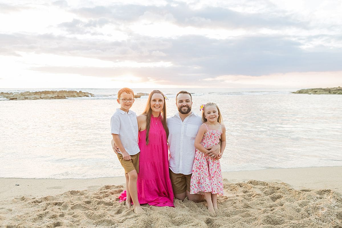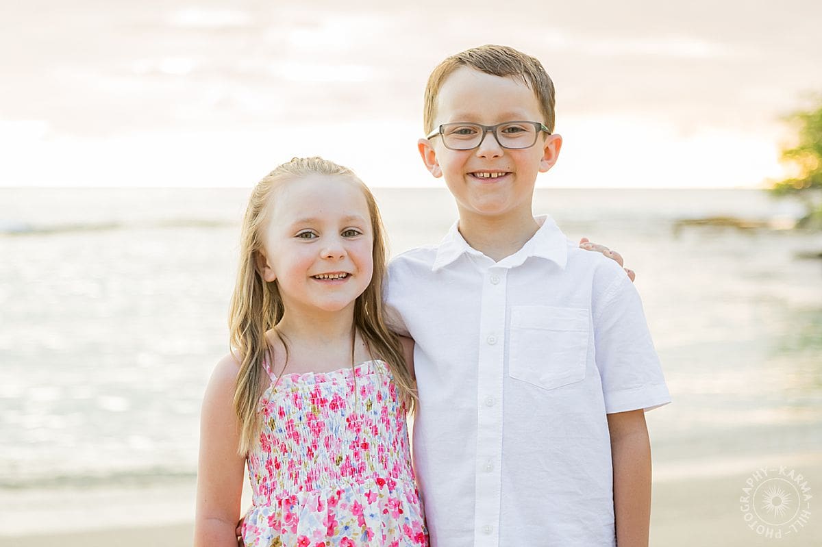 Michelle was all in on capturing it all in their Oahu family portrait—mom and kiddos, dad and kiddos, siblings bonding (or playfully bickering, let’s be real), and even a few sweet, just-the-two-of-them anniversary shots. The joy was palpable. The kids played, the parents laughed, and the ocean did its sparkly, cinematic thing. They clearly had so much fun playing and pulling silly faces!