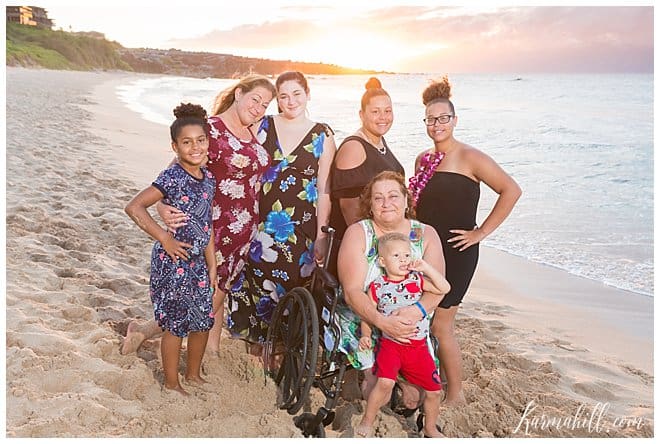 The powerful memories made on this day at Ironwoods Beach are ones we know they will always hold near and dear. Their love for life and each other is a true inspiration! We have no doubt that with each other’s support, the Foster Family will conquer anything life throws at them. Each family member plays their role in keeping the balance and love strong! We could not have asked for a better evening, and wouldn’t have wanted to spend our night any other way. This group of women, and little Carter, were so incredible to work with and we can’t thank them enough for letting Karma Hill Photography capture their Maui Family Portraits. Thank you from the bottom of our hearts, Foster Family! We wish you all the best on the journey ahead! Warm Aloha!