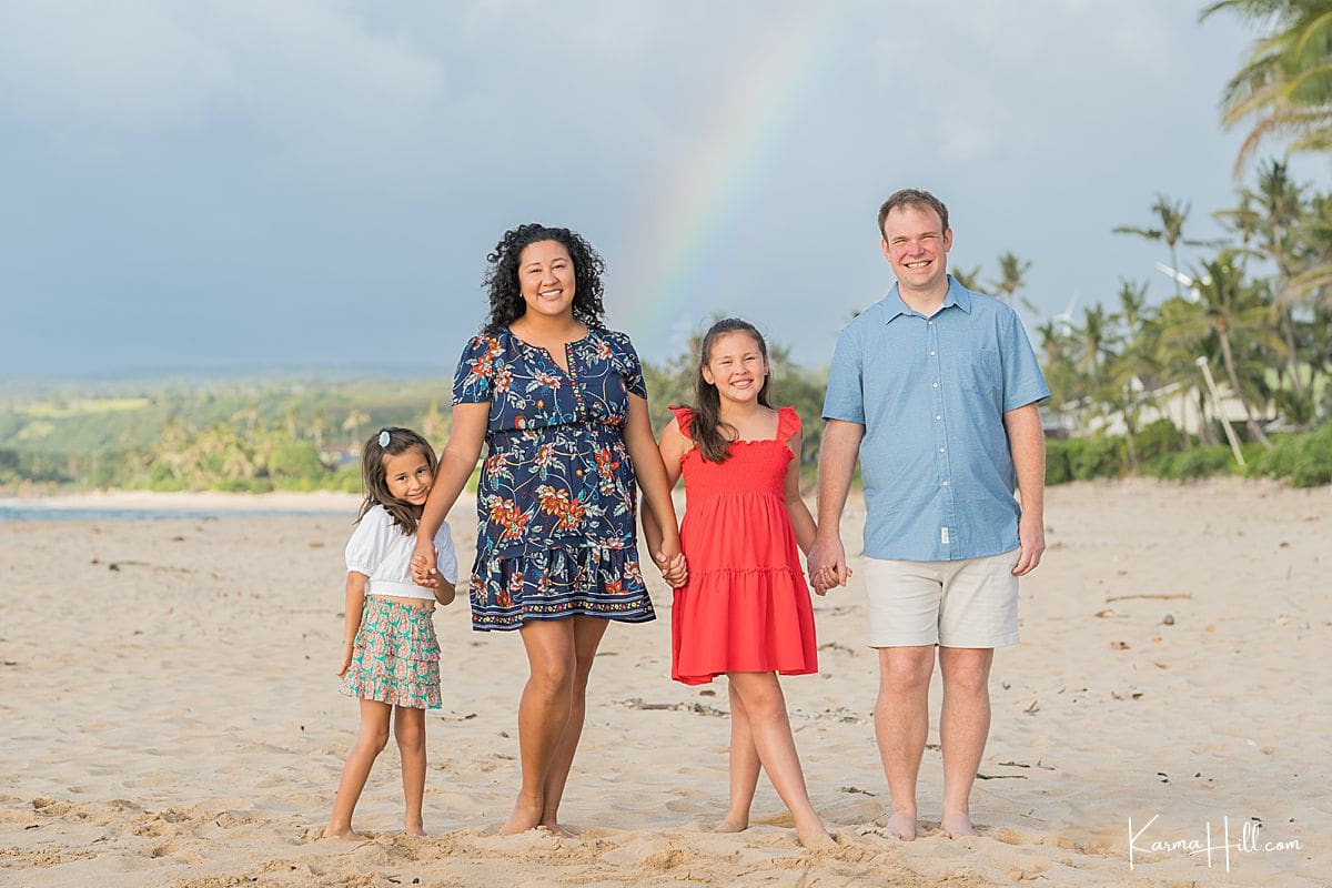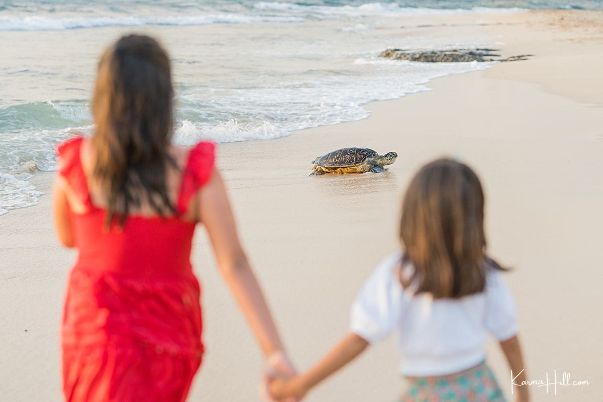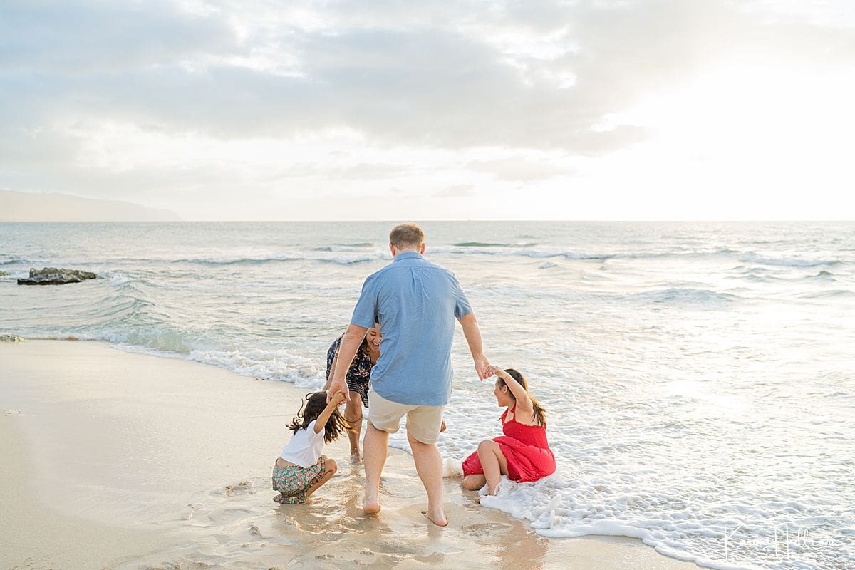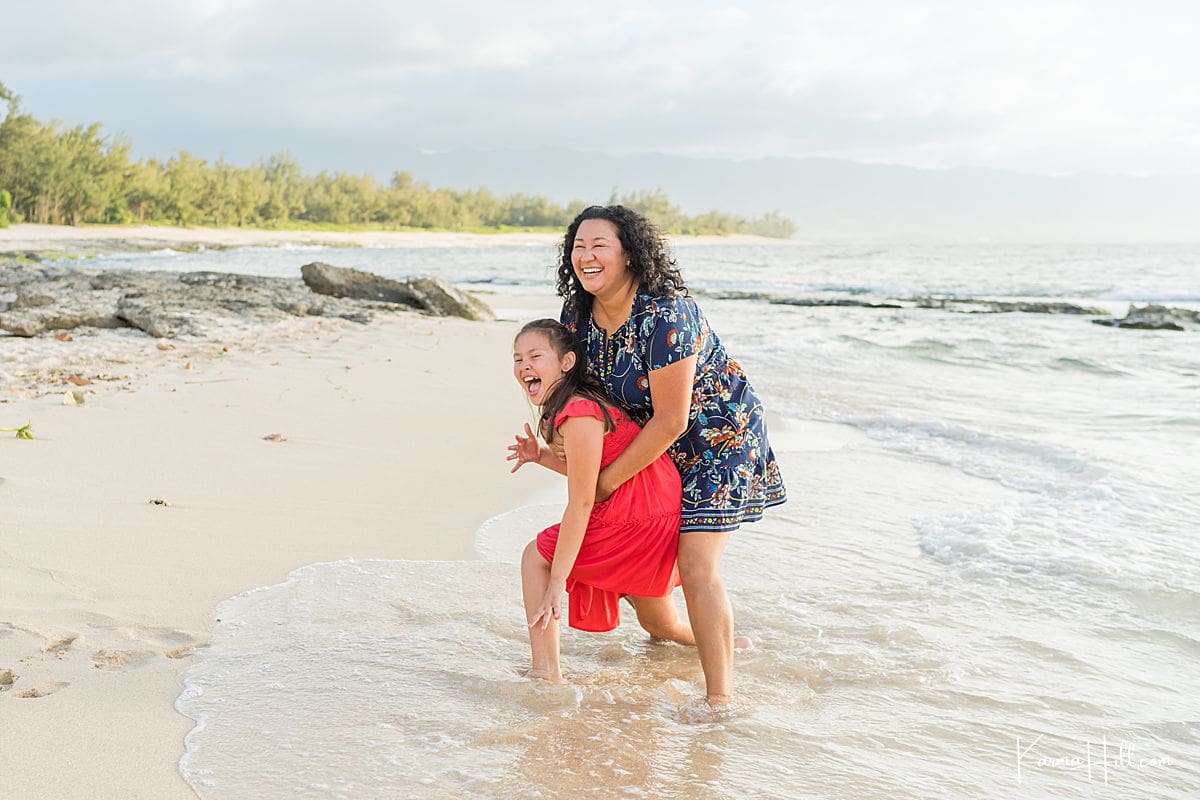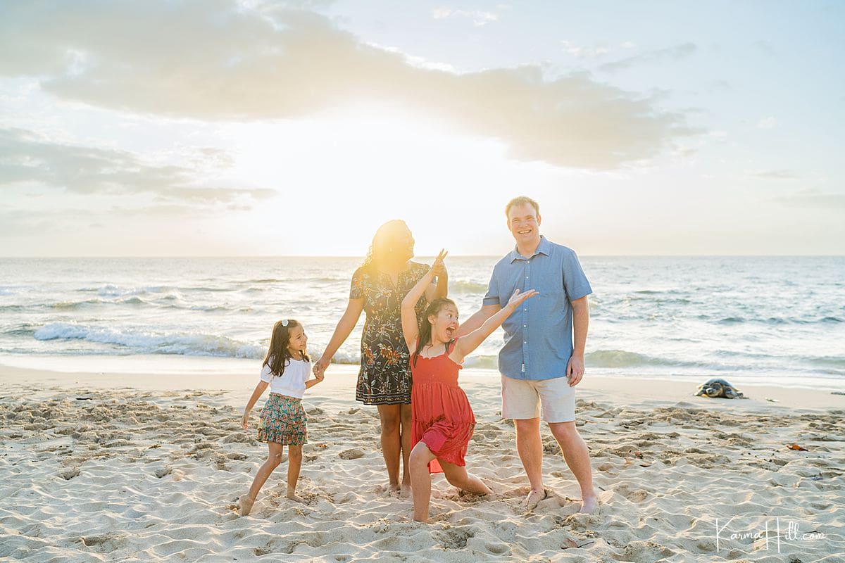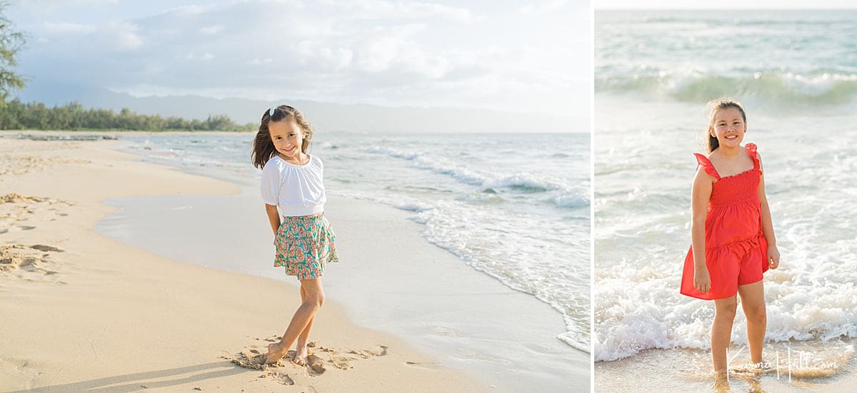 The day was filled with lively fun as the family played in the water, jumped around on the beach, and enjoyed the breathtaking scenery. The girls’ laughter and joy were infectious, making the session not only a photo shoot but also a memorable family adventure. They even spotted a rainbow and a turtle at Papa’iloa Beach, adding an extra touch of magic to their day! And of course there was splashes too!
