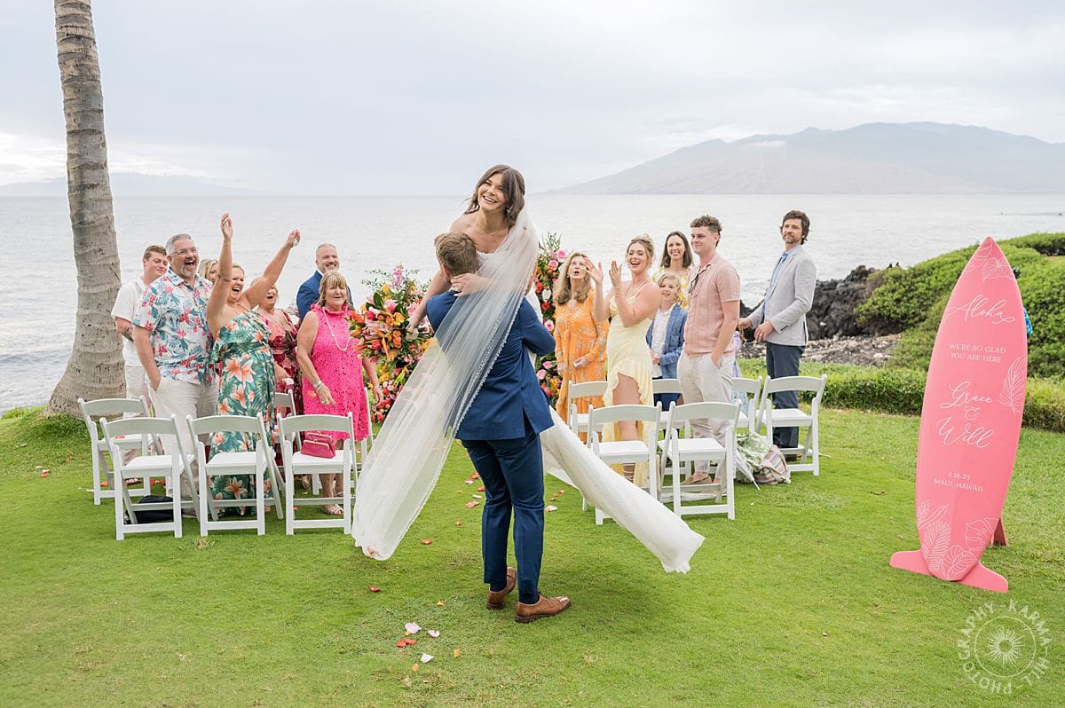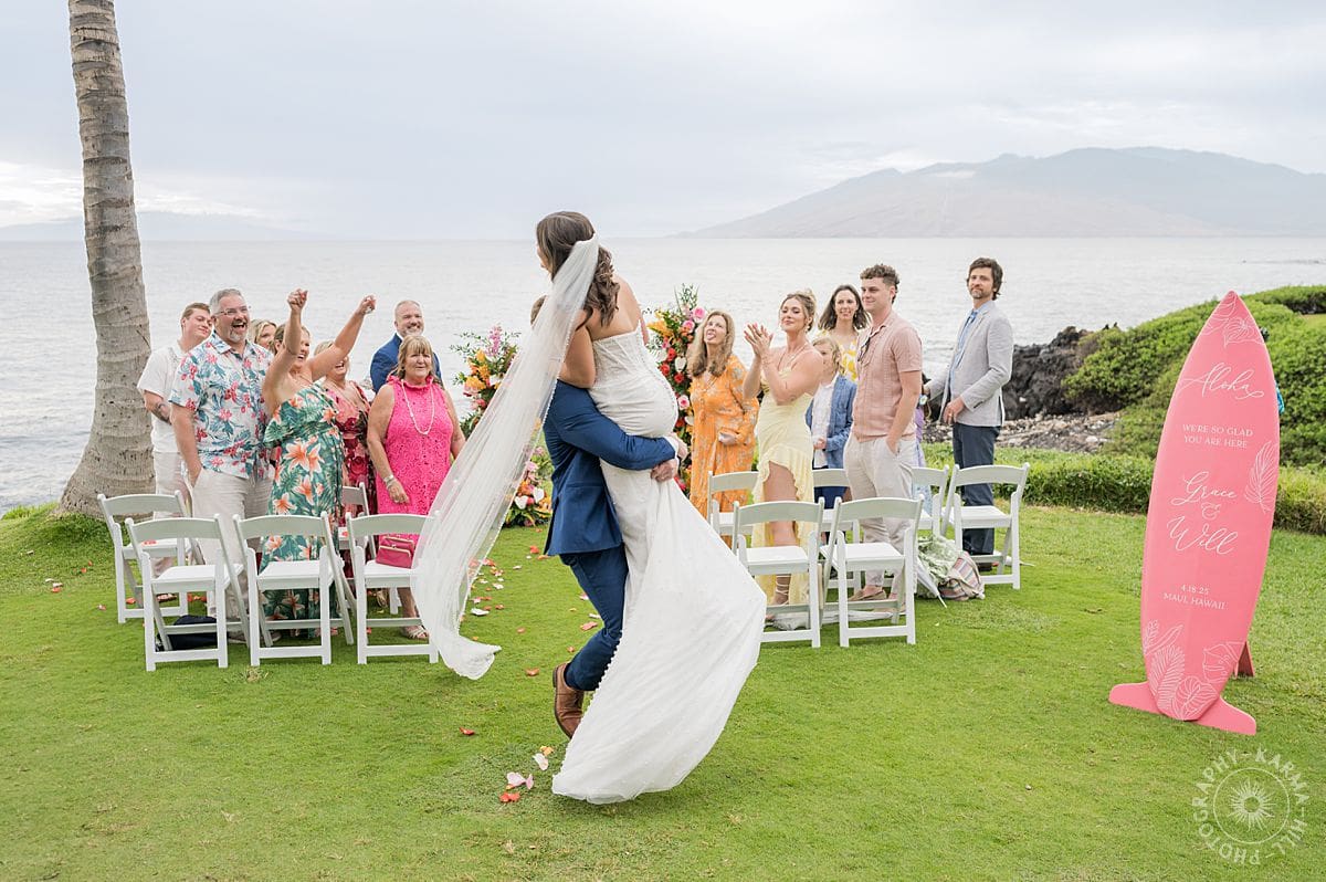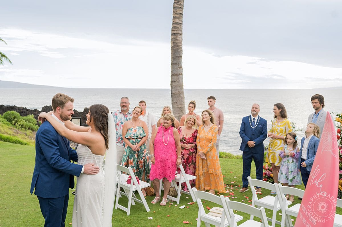 Their ceremony was light, fun, and so full of love—the kind where even looking at their Maui wedding photography makes you feel like you’re right there, smiling along with them. Grace (in the middle of her final year of medical school—actual superhero) and Will (sales genius and professional best friend) radiated pure joy.
