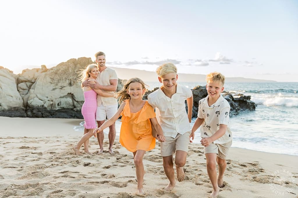 Location choice is critical, and we help you navigate it based on your family’s style, travel logistics, and the look you’re hoping to achieve. Our photography team knows the islands inside and out. From the dramatic cliffs and privacy of West Maui to the serene setting of Kauai or the volcanic beaches of the Big Island, we’ve scouted every kind of backdrop. We’ll match you with the location that suits both your vision and your comfort level for your Hawaii family photos, because when you’re relaxed, the photos show it.