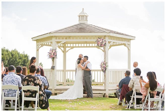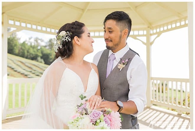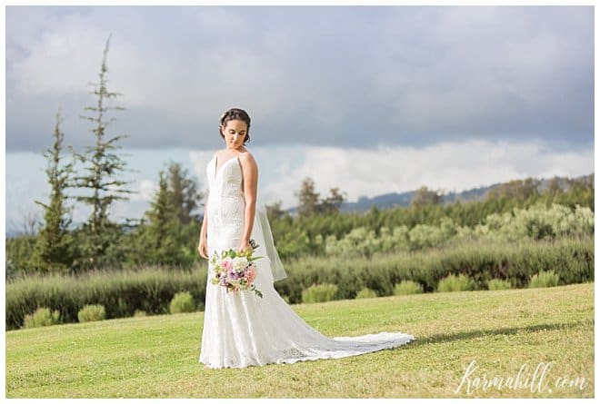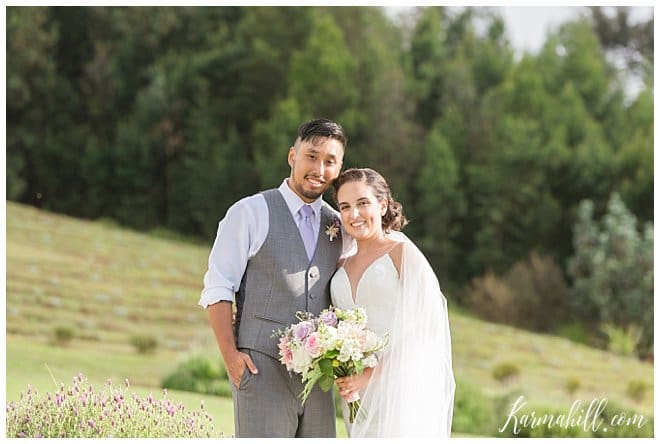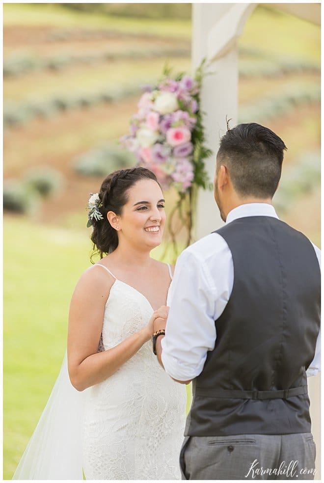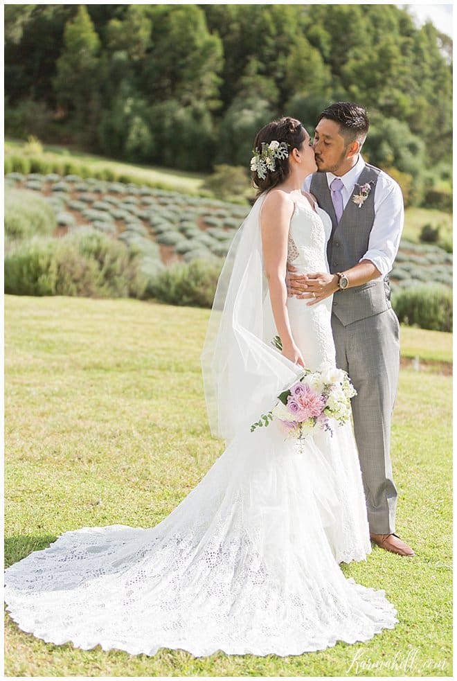 High school sweethearts, Haley and Maverick, visited lavender farms regularly during their courtship, making The Lavender Farm for their Maui wedding a no-brainer! This stunning venue is located in Upcountry Maui offers beautiful views of the Island and ocean, a Maui bride and photographer’s dream come true! Haley and Maverick started their lives together as husband and wife on a gorgeous afternoon under an elegant gazebo, surrounded by fields of lavender, and in the company of their closest family and friends. They decided on dusty rose and lavender for their wedding colors to complement the scenery of the venue, which mixed perfectly with the maid of honor’s custom bouquet made of natural lavender, and an elegant floral piece for the bride’s hair. These simple yet thoughtful touches, made for a picture perfect wedding!