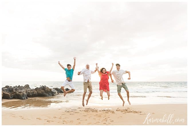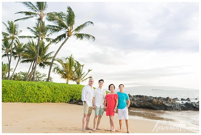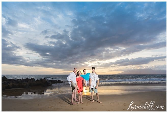 Treated to a lovely evening on Polo Beach, the light was gorgeous as the sun sank in the distance. With soft colors painting a dreamy scene around them, the fantastic four had a blast hamming it up for the camera. Thanks to dad’s obsession with the Beatles, they even took time to pay homage to Abbey Road. We had so much fun with this crew and we can’t thank them enough for choosing Karma Hill Photography. Thank you, Hedrick Family! Happy Anniversary, Happy Graduation, and Happy Birthday! Phew! Warm Aloha!!!