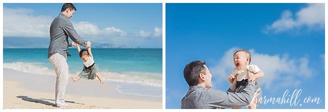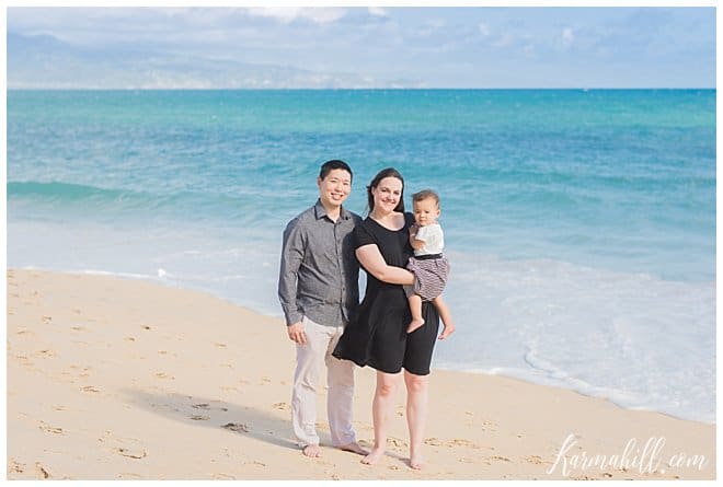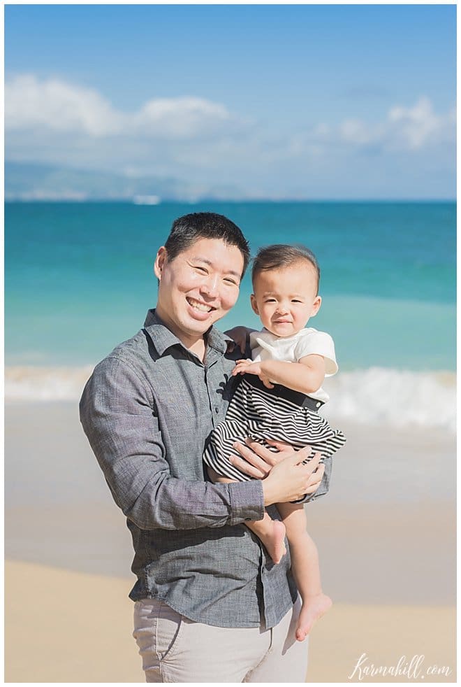 Though, we do have to say, they were blessed with a stunning day for their portrait session. The crystal clear water was a brilliant variation of blues that sparkled beneath the morning sun. Coupled with the picture perfect shore and clear sky, this was the exact scene the fabulous family from the Pacific Northwest was craving. With memories being made every precious day with their darling daughter, we’re so glad they were treated to such a prime day. Thank you, Hendricks-Kim Family, for letting the Karma Hill Photography team be a part of your special inaugural vacation as a terrific trio. We hope this is the first of many so that may catch up with you all, and see that beautiful baby girl of yours grow up over the years. Best wishes with you new adventures together. Warm Aloha!!!