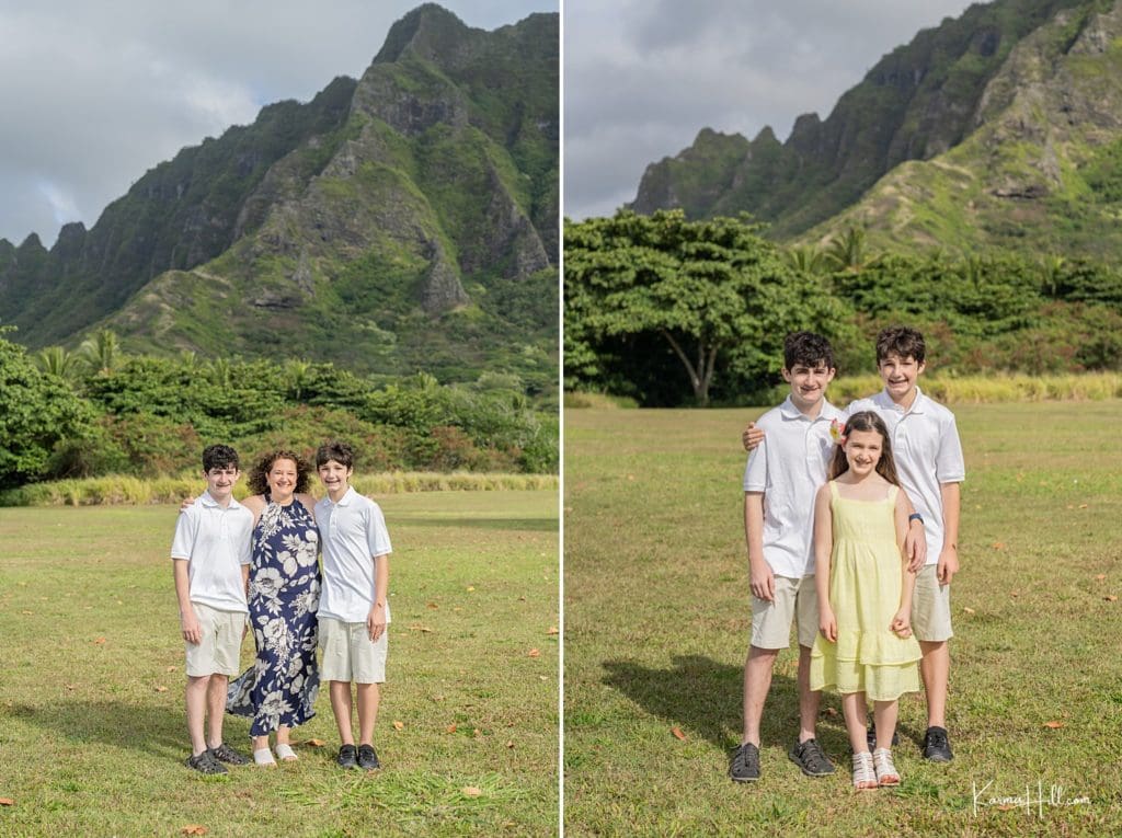 Besides being a tradition, the Henrys wanted to take photos to remember their time in Hawaii. They were looking forward to the backdrop being a beach setting with the sweeping ocean and dramatic mountain views. Not to mention, this charming bunch has been to Oahu before; but this was their first time seeing the east side! After this session, they were excited to explore and get to know this part of the island.