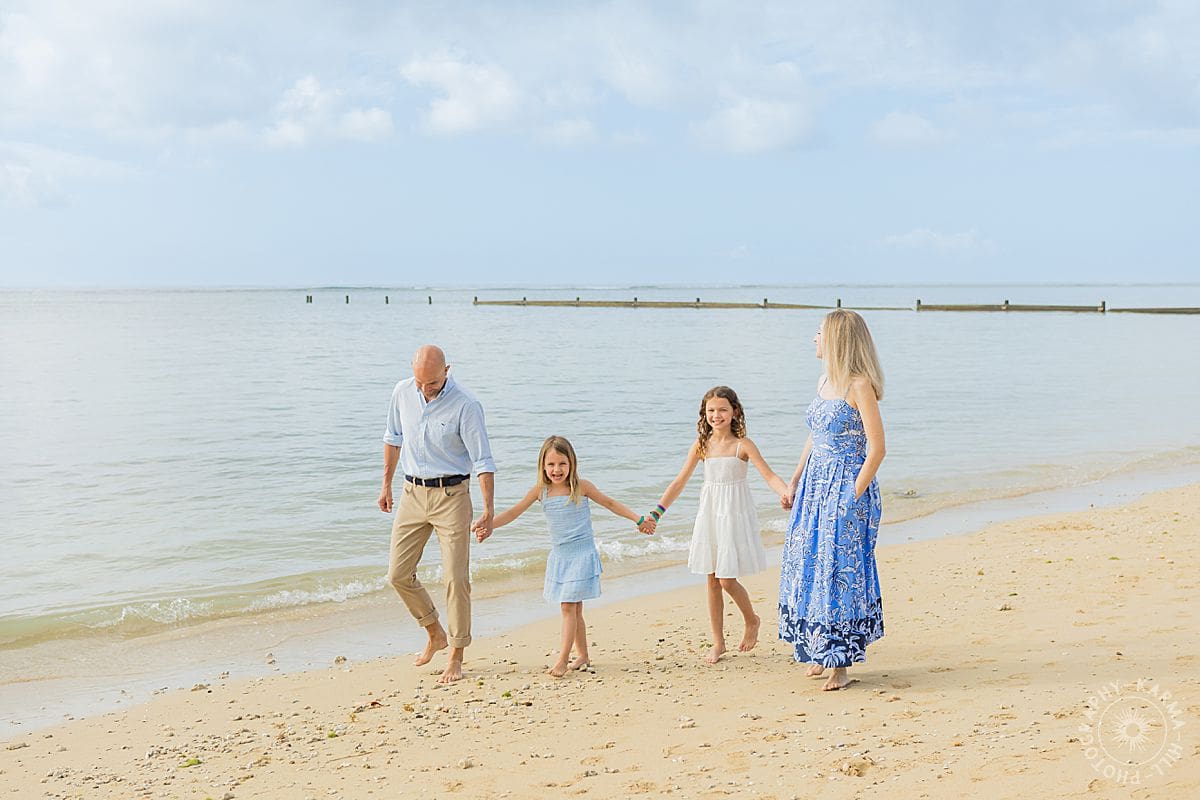 The girls couldn’t get enough of the beach. They twirled in the sand, hunted for shells, and giggled nonstop. Every photo glowed with joy—Charlotte’s sweet smile, Grace’s little laugh, and the way Mom and Dad looked at them like they were the sun.