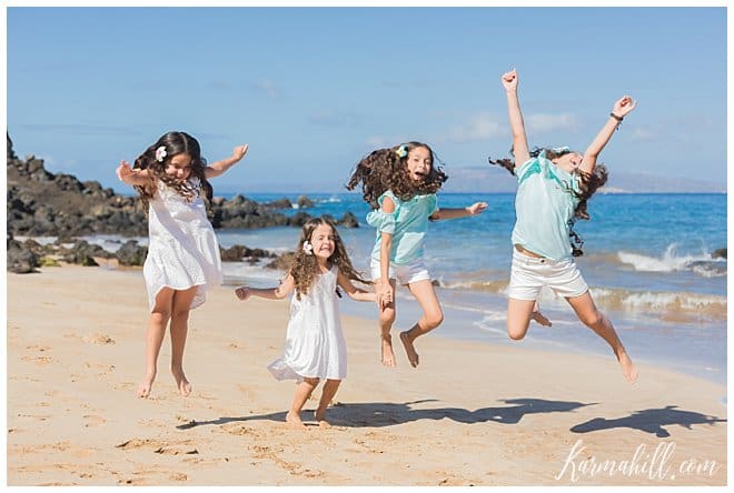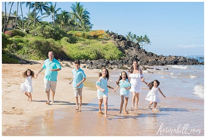 With it being their first time here, the awe and wonder at the natural beauty around them was a delight to see. When you live here, it’s actually easy to take for granted the serenity that surrounds us. When you see the setting through the kind eyes of a cool family like this one, you’re reminded of what an amazing place this truly is. Blessed with a beautiful morning for their portraits, the majesty of the morning was shining brighter than the sun. Vivid blues to compliment their wardrobes were just the beginning. The variety of landscape, smooth sand, and tantalizing lava rocks all made for a spectacular scene. Thank you, Hickman Family, for letting the Karma Hill Photography share in this fun family memory. We hope you’ll cherish these images for years to come. Warm Aloha!!!