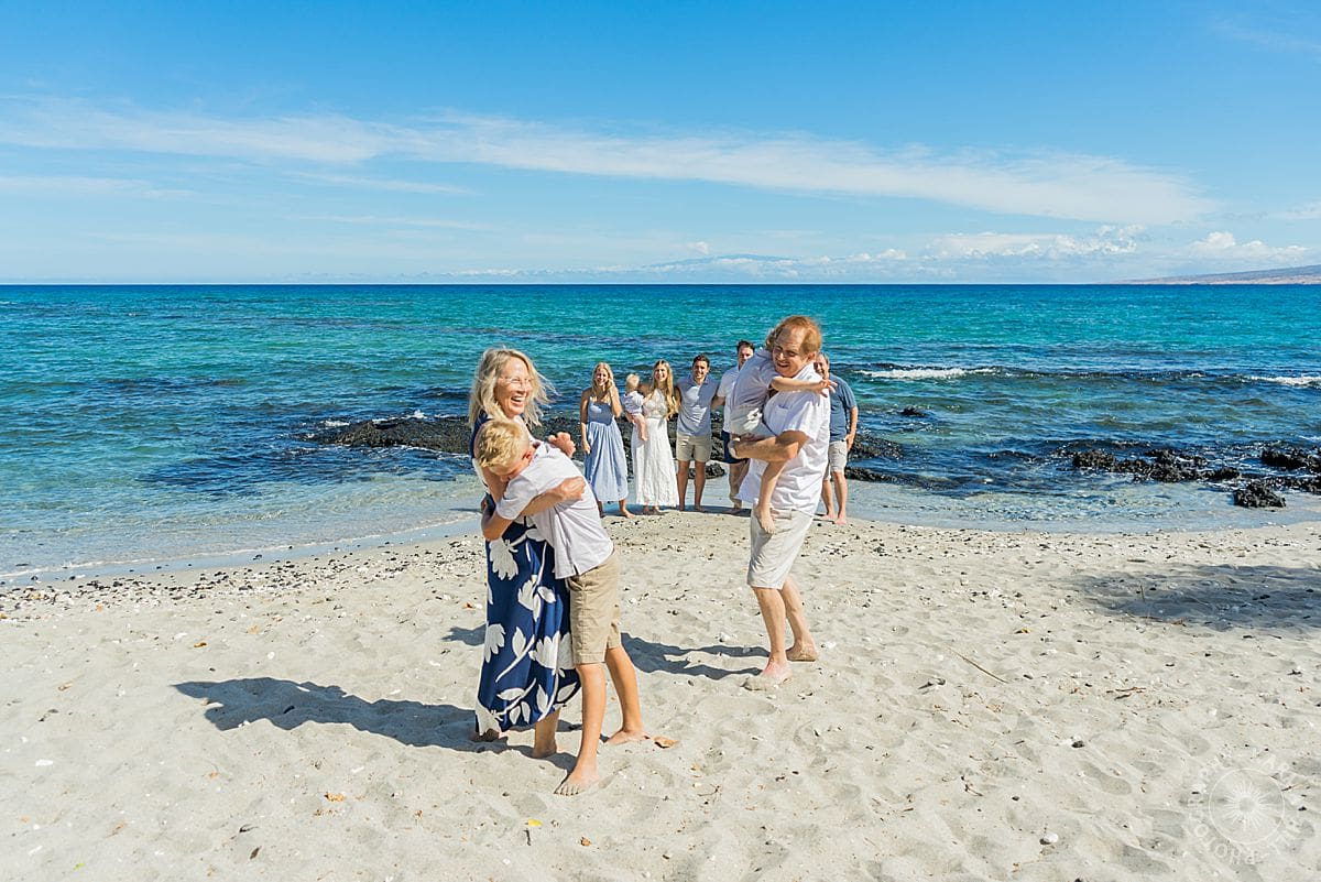 The Hrubys looked so happy, like the kind of happy that bubbles up when you’re surrounded by your favorite humans in a tropical paradise. And that setting? Unreal. Pauoa Bay delivered its usual magic: palm trees, soft sand, golden light, and a calm that makes you want to stay forever.