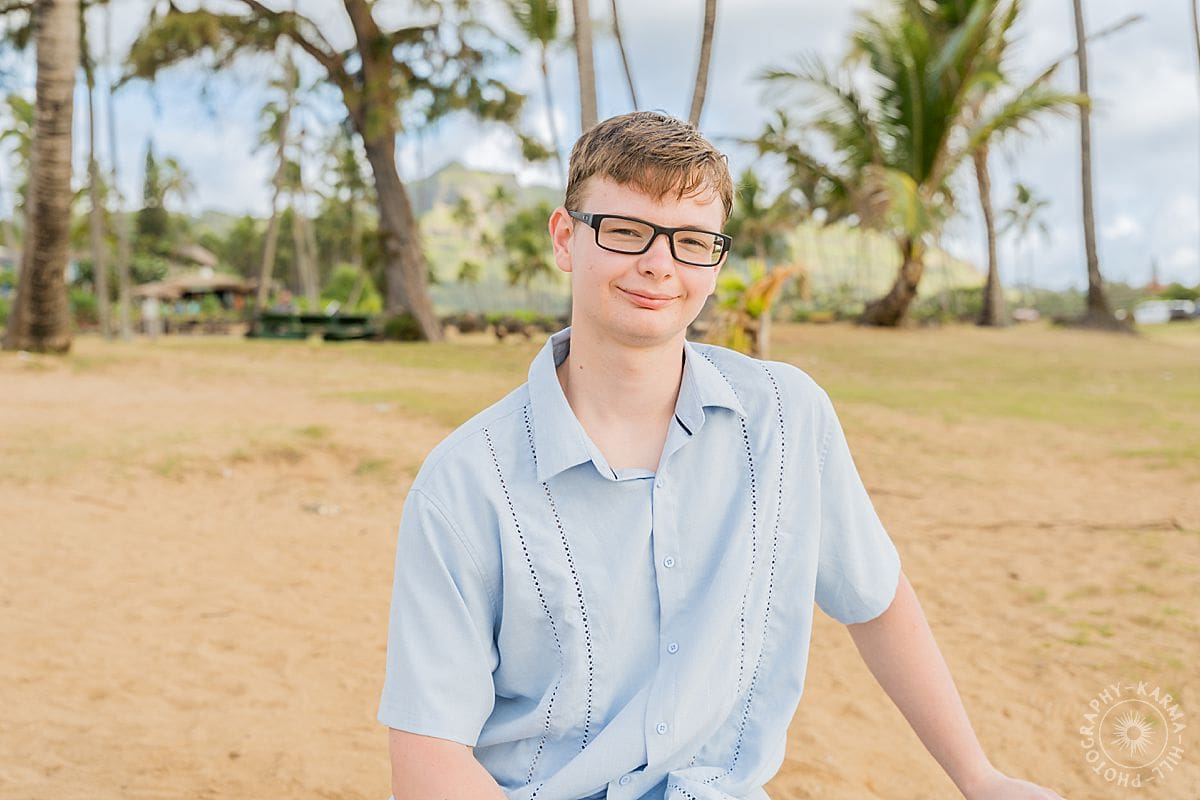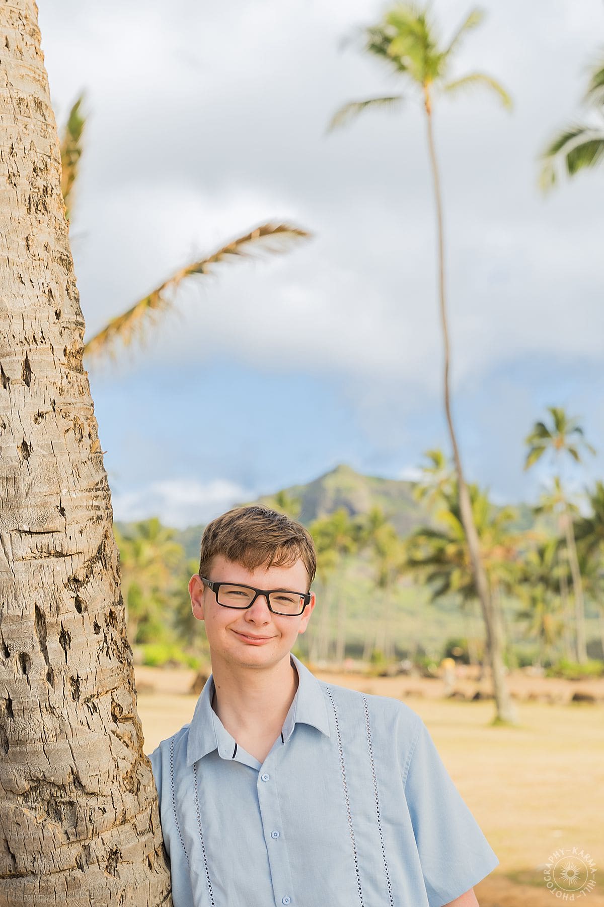 We met him on a beautiful morning, the sky painted in soft blues and the trade winds doing their gentle, photogenic thing. Lydgate Beach was sparkling, like it knew it was hosting a milestone moment. The towering palm trees perfectly framed him with serious main character energy. Jacob showed up with a smile that said, “I’m ready for what’s next,” and an energy that was all heart, excited, humble, and a little bit in awe that this is really happening.