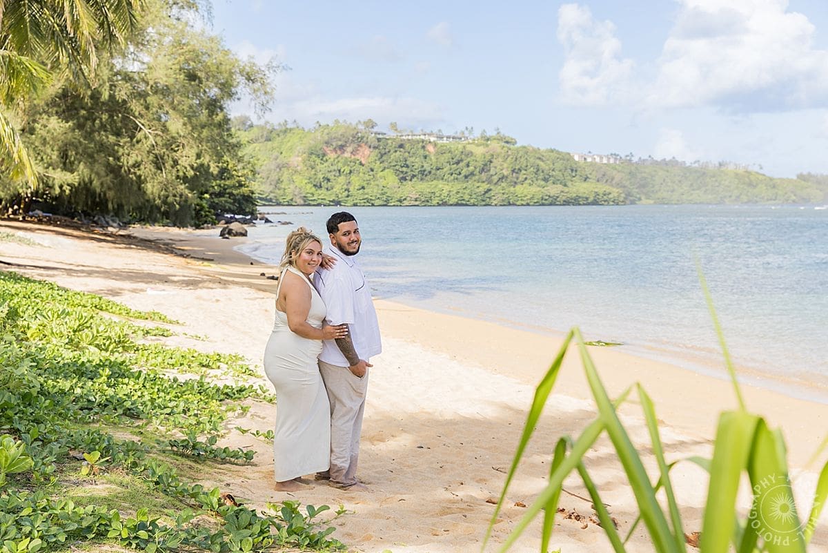 Some moments are so full of love and intention that they feel almost cinematic. And Javier and Martha’s Kauai proposal portrait was exactly that. Set against the serene beauty of Anini Beach, the day was calm, vibrant, and full of quiet anticipation. The sky was clear, the ocean shimmered like glass, and the world seemed to pause just long enough for something extraordinary to happen.