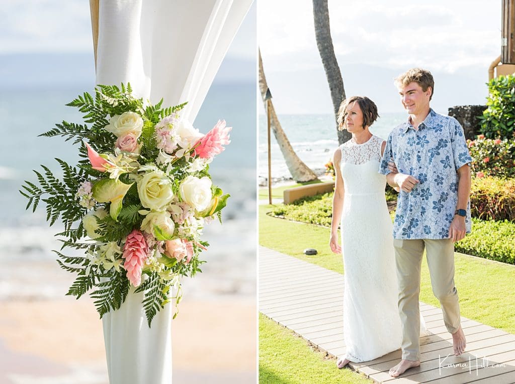 Simple Maui Wedding coordinated the ceremony, and Dellables provided the bouquet and arch arrangements!