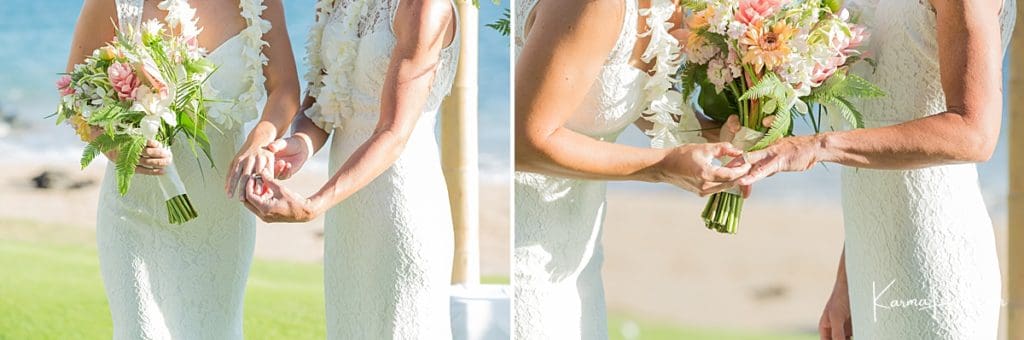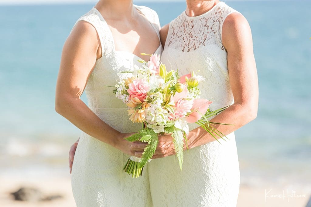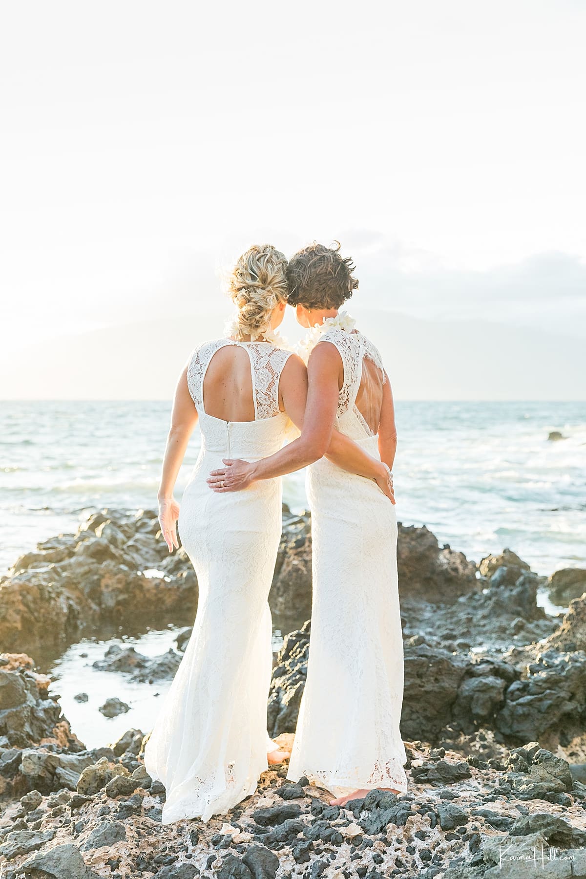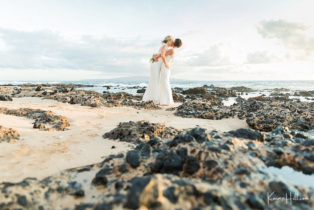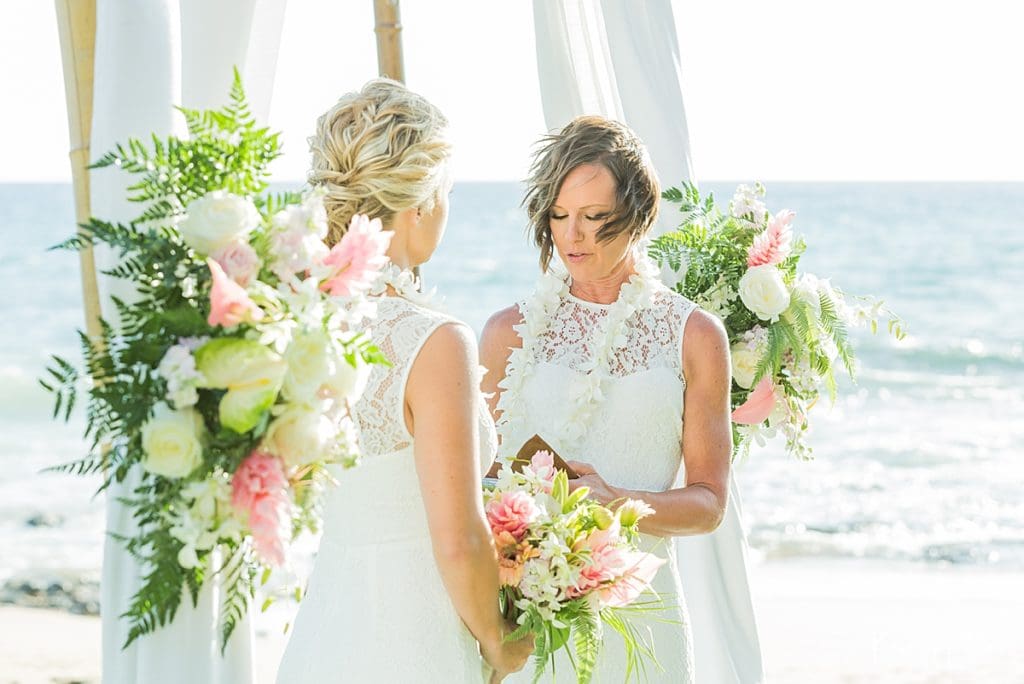 As the wind died down at the 5 Palms in Maui, these two sweet brides kicked off their shoes, held each other tight, and pledged to spend the rest of their lives together. We’re so excited to share these Hawaii wedding photos!