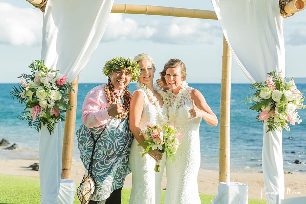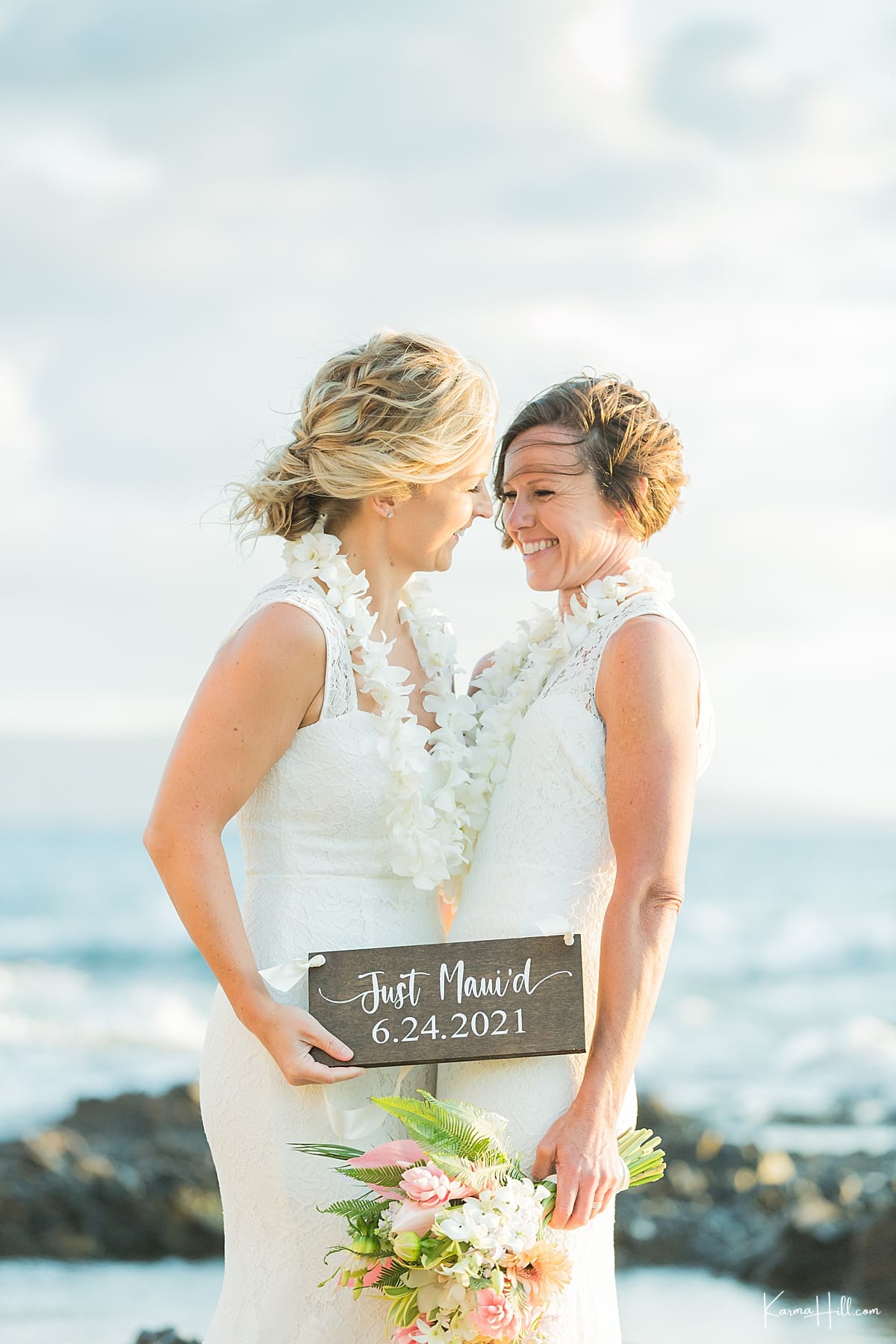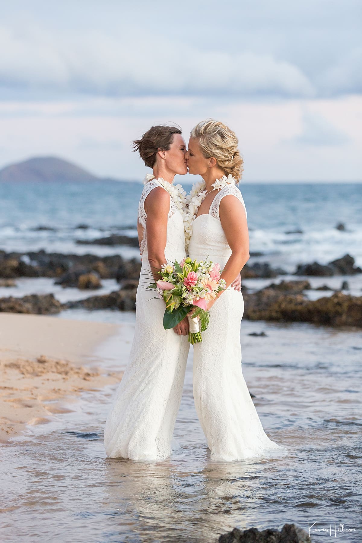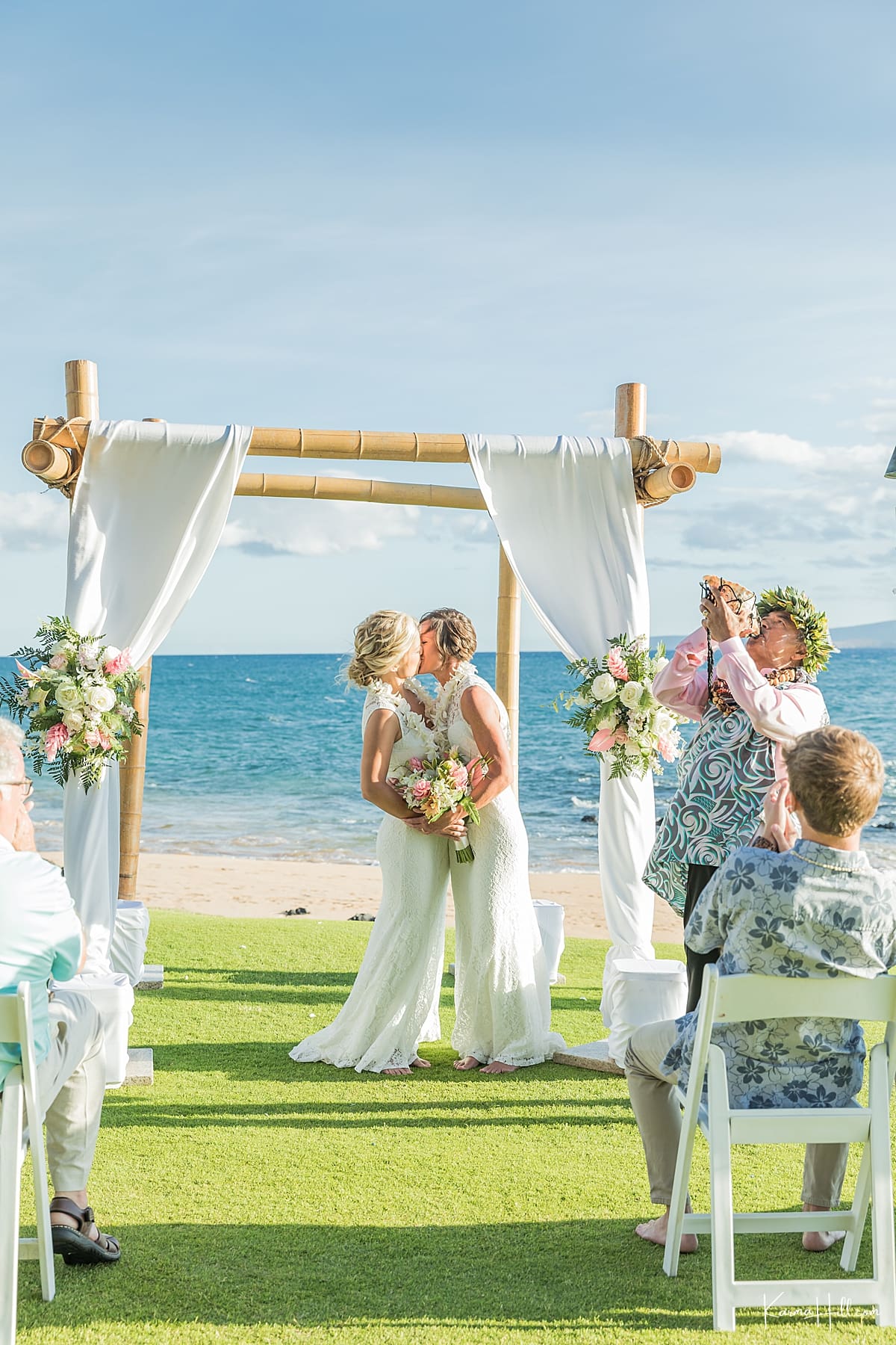 As the wind died down at the 5 Palms in Maui, these two sweet brides kicked off their shoes, held each other tight, and pledged to spend the rest of their lives together. We’re so excited to share these Hawaii wedding photos!