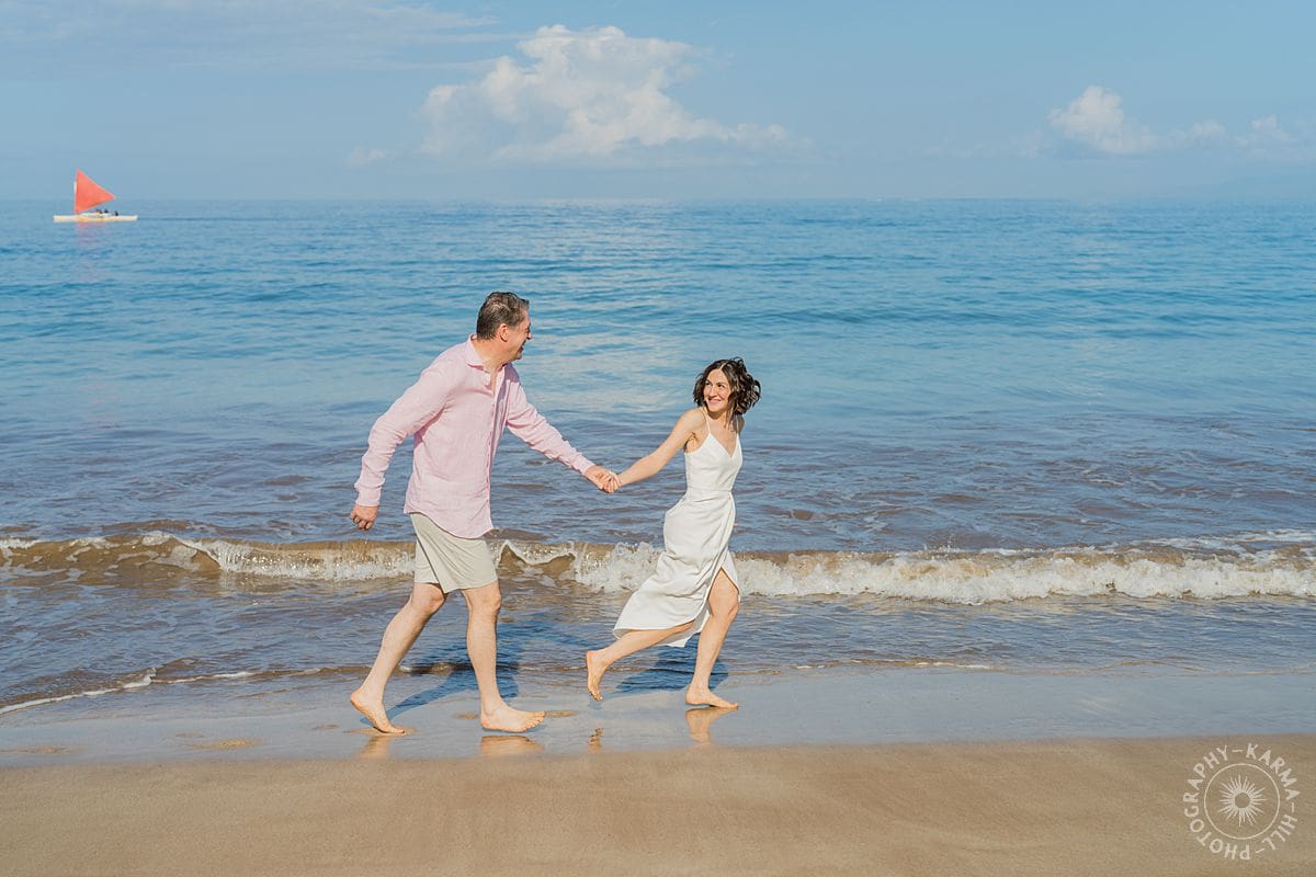 Some mornings on Maui feel like the world is trying to make everything just a little softer, a little sweeter. That’s exactly what greeted Jennifer and David as they stepped onto the sand for their Maui couples portrait session—a glorious, sunlit morning, the sky stitched with blue, the ocean gleaming like polished glass, and colors so vibrant they shone so bright.