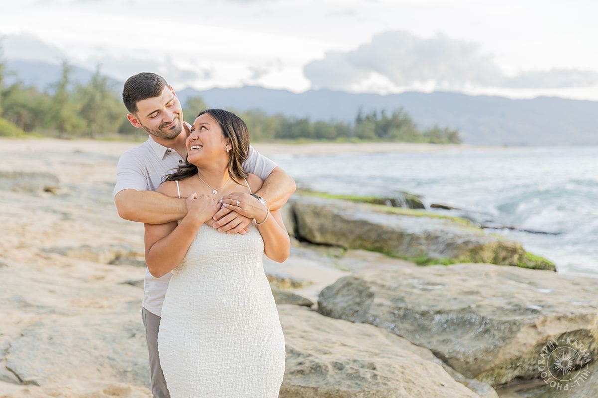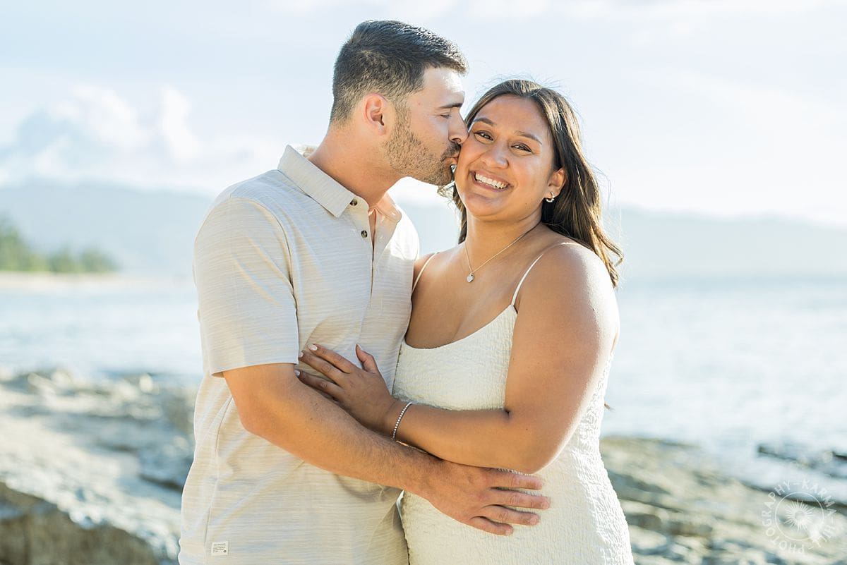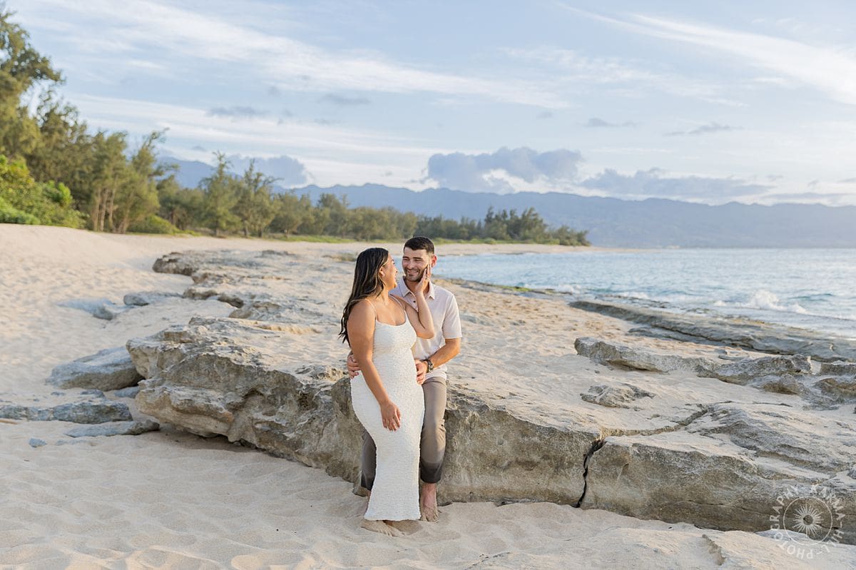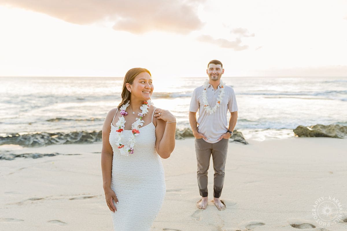 The setting? The breathtaking Papailoa Beach on Oahu’s North Shore, with golden light brushing the sand and waves tumbling in the background like applause. It was Leilani’s first time back to Hawaii in seven years, a place she grew up visiting, where her mom had lived, and where countless childhood memories were rooted. For Joe, this was his first time on the islands, making the moment all the more meaningful.