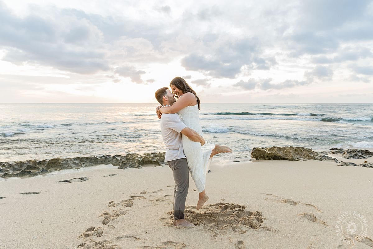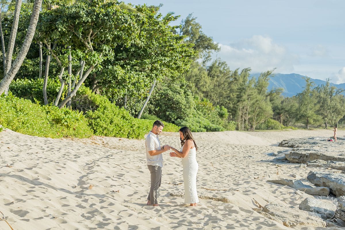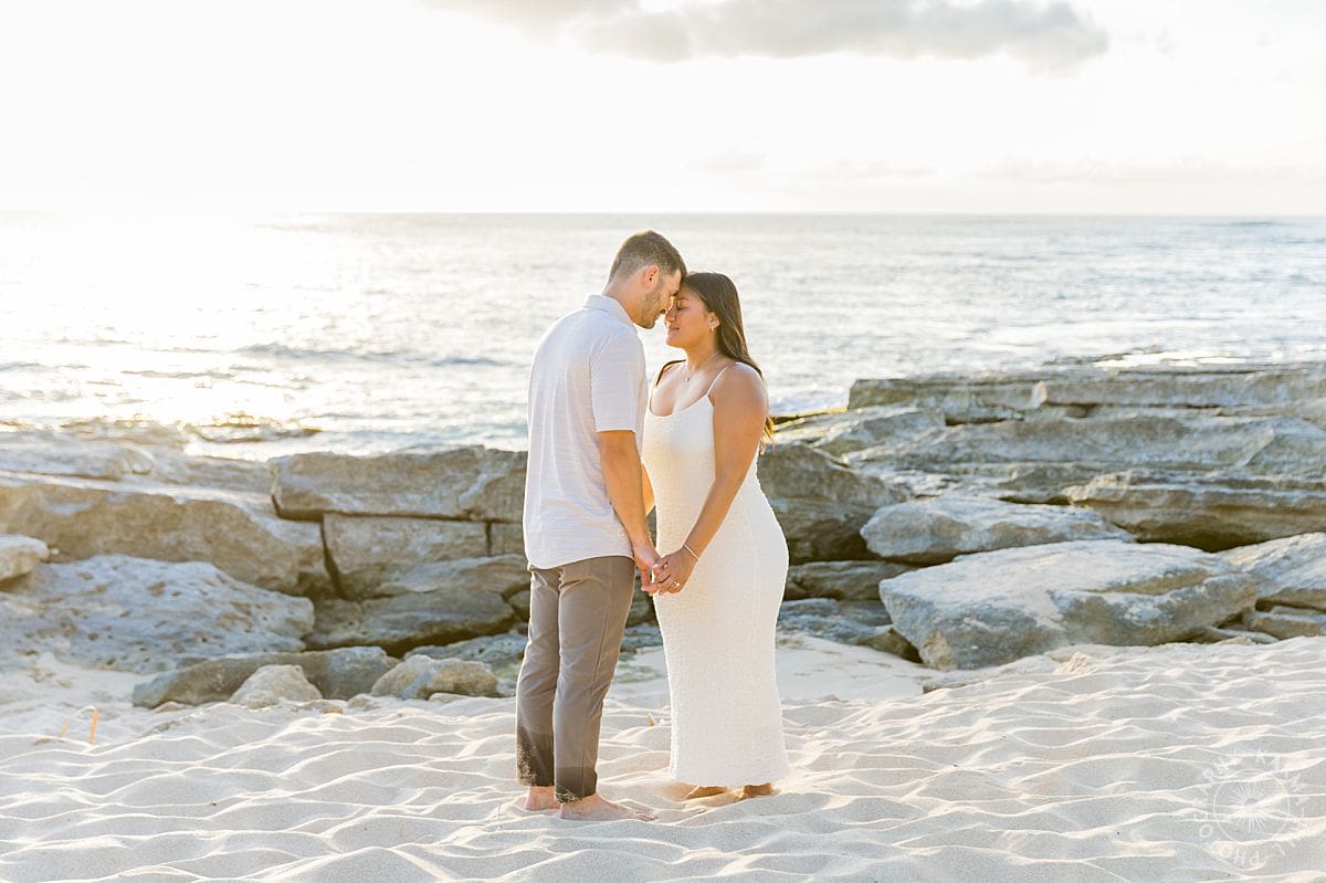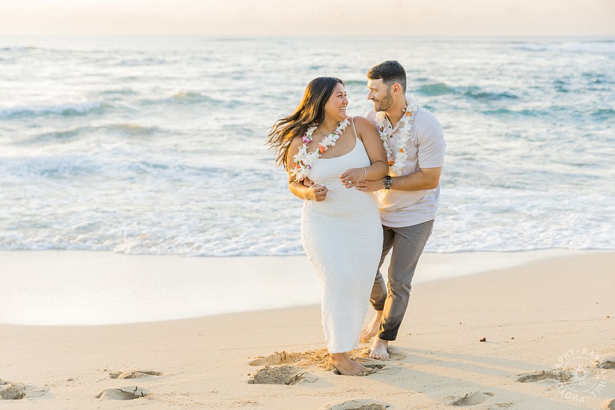 The setting? The breathtaking Papailoa Beach on Oahu’s North Shore, with golden light brushing the sand and waves tumbling in the background like applause. It was Leilani’s first time back to Hawaii in seven years, a place she grew up visiting, where her mom had lived, and where countless childhood memories were rooted. For Joe, this was his first time on the islands, making the moment all the more meaningful.
