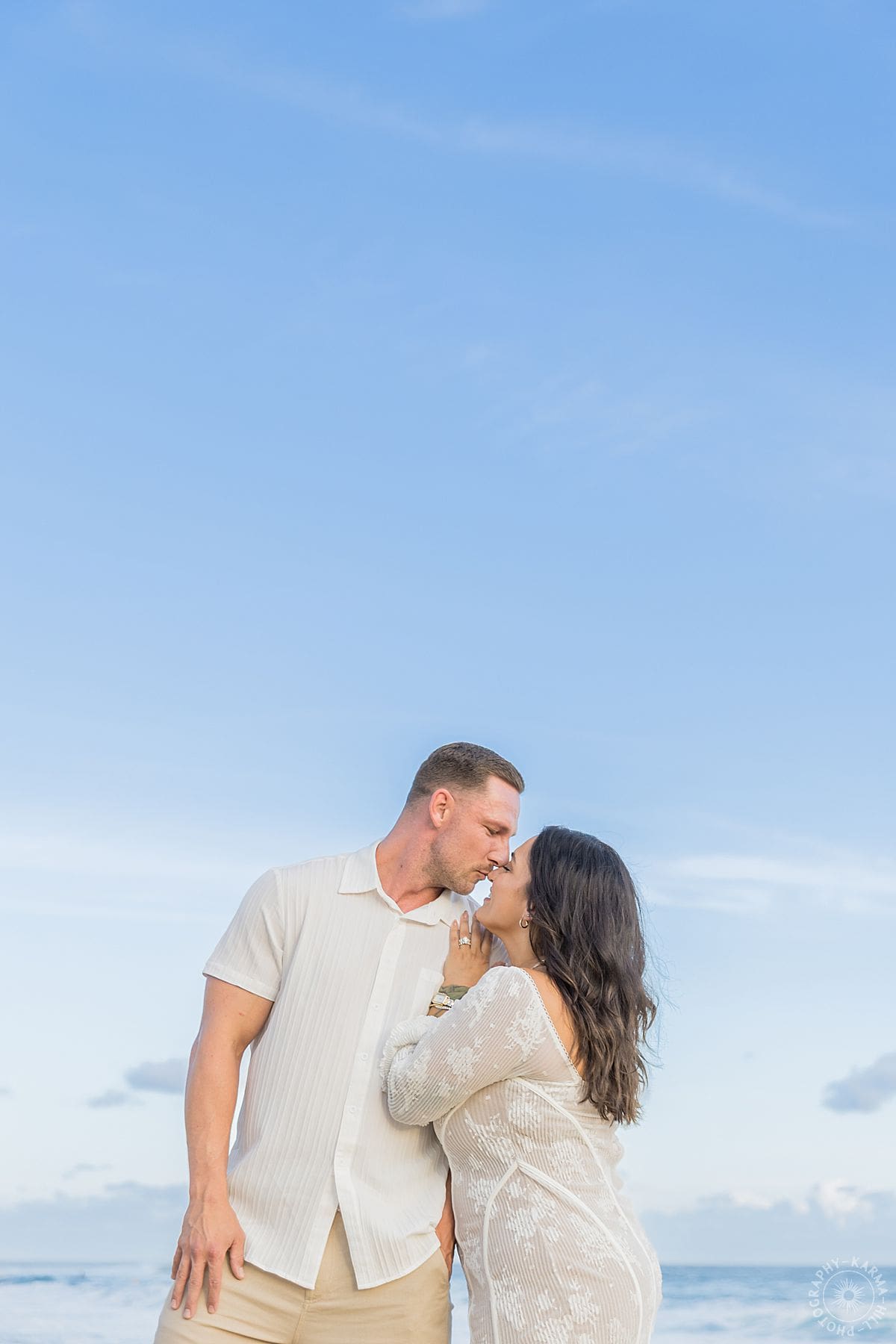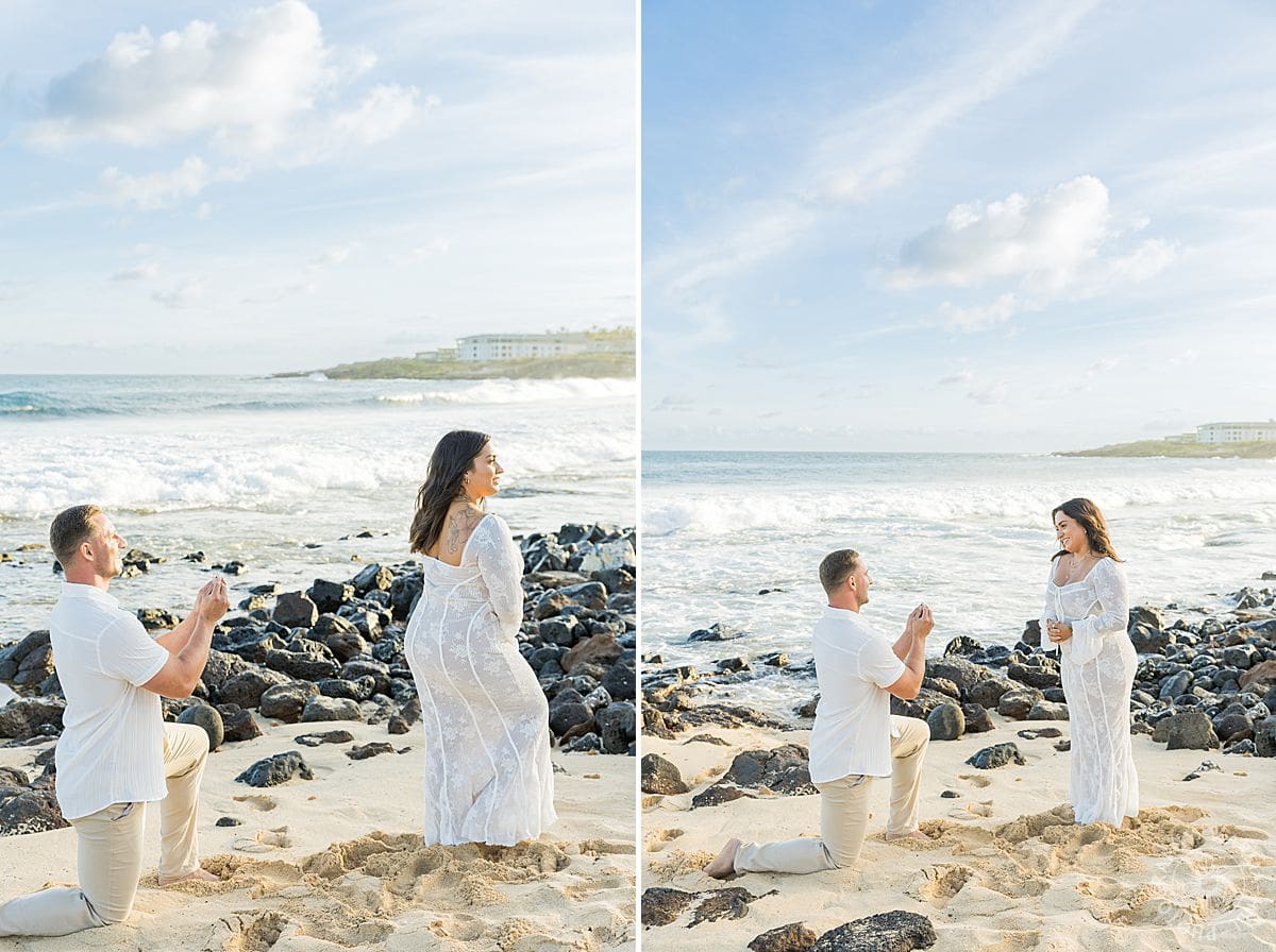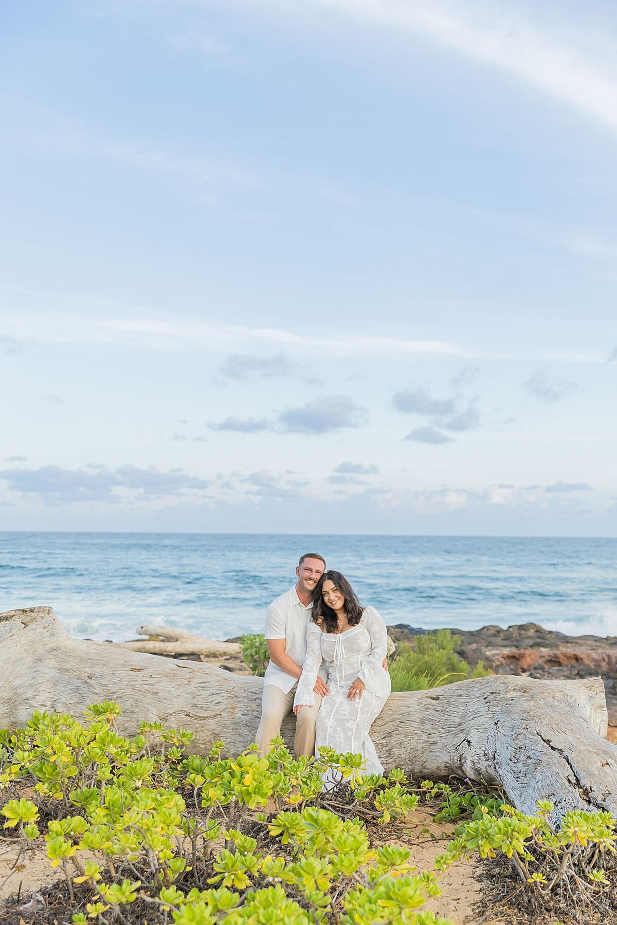 The plan? A portrait session that turned into something far more unforgettable. Ashlee loves Hawaii and cherishes capturing milestones through photography, so this surprise was designed perfectly for her. The setting was cinematic, with soft skies, pastel tones reflecting off the ocean, and waves rolling in…Honestly, these two deserve this moment, and we were so delighted to capture this precious moment for them finally…