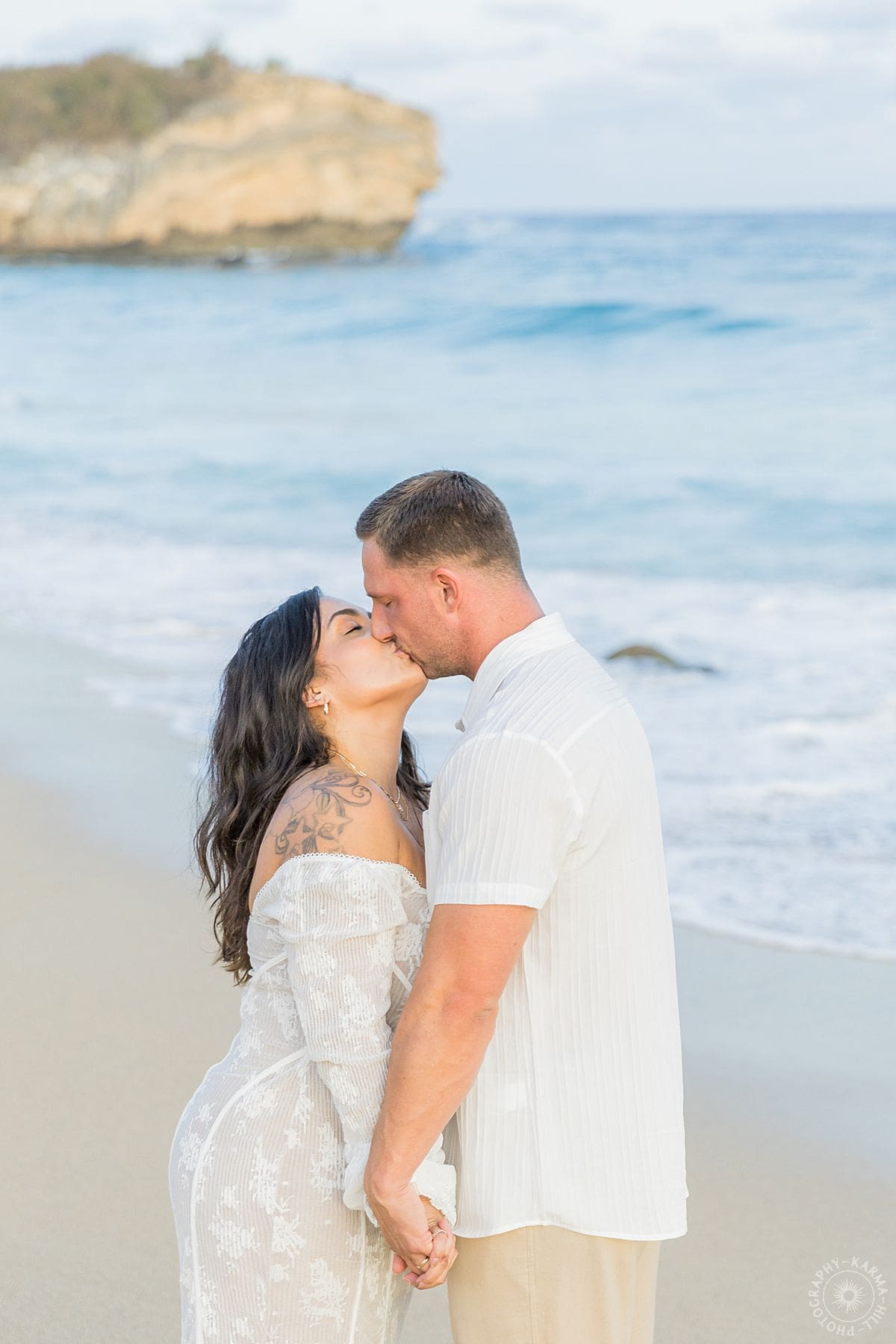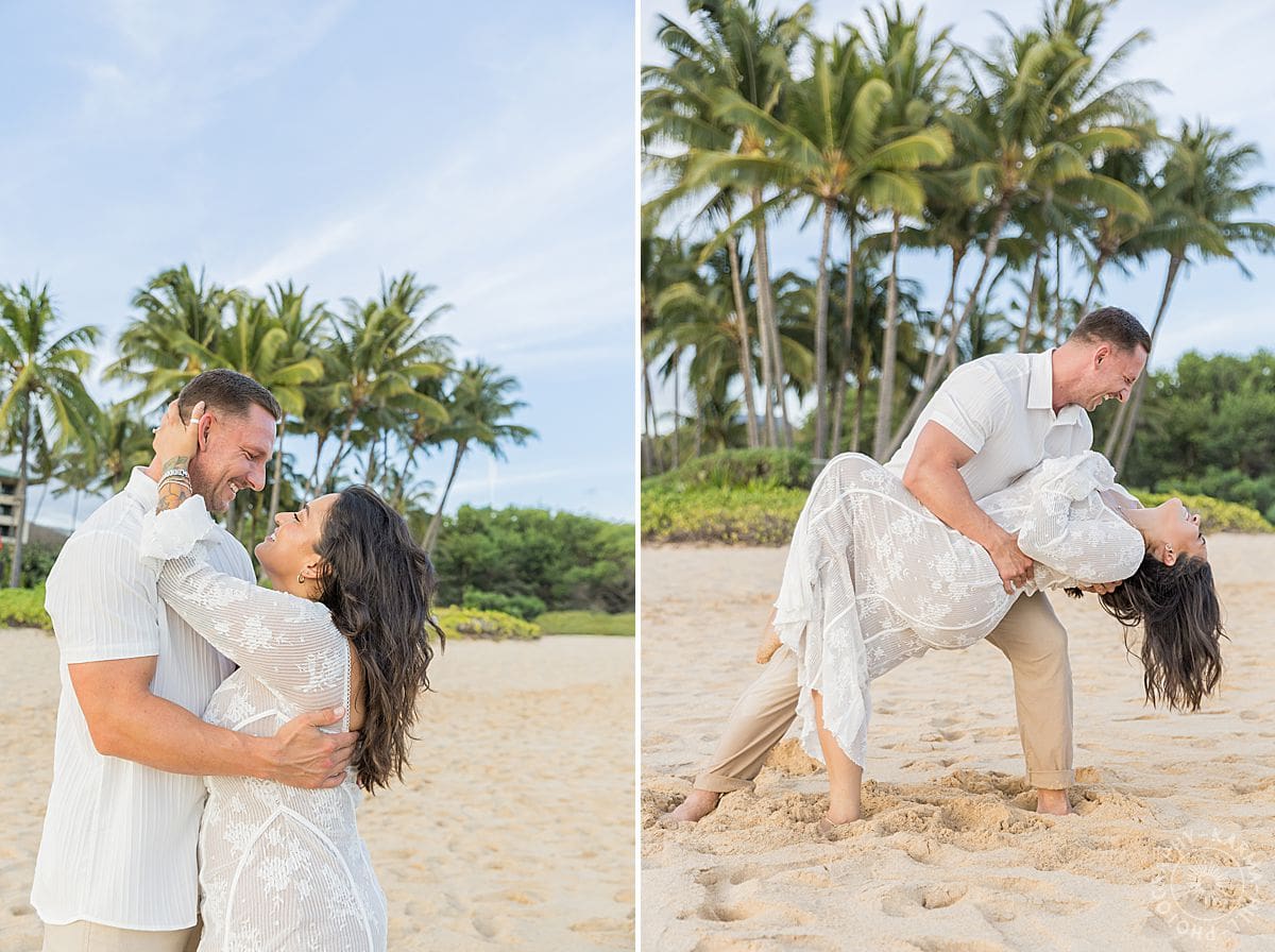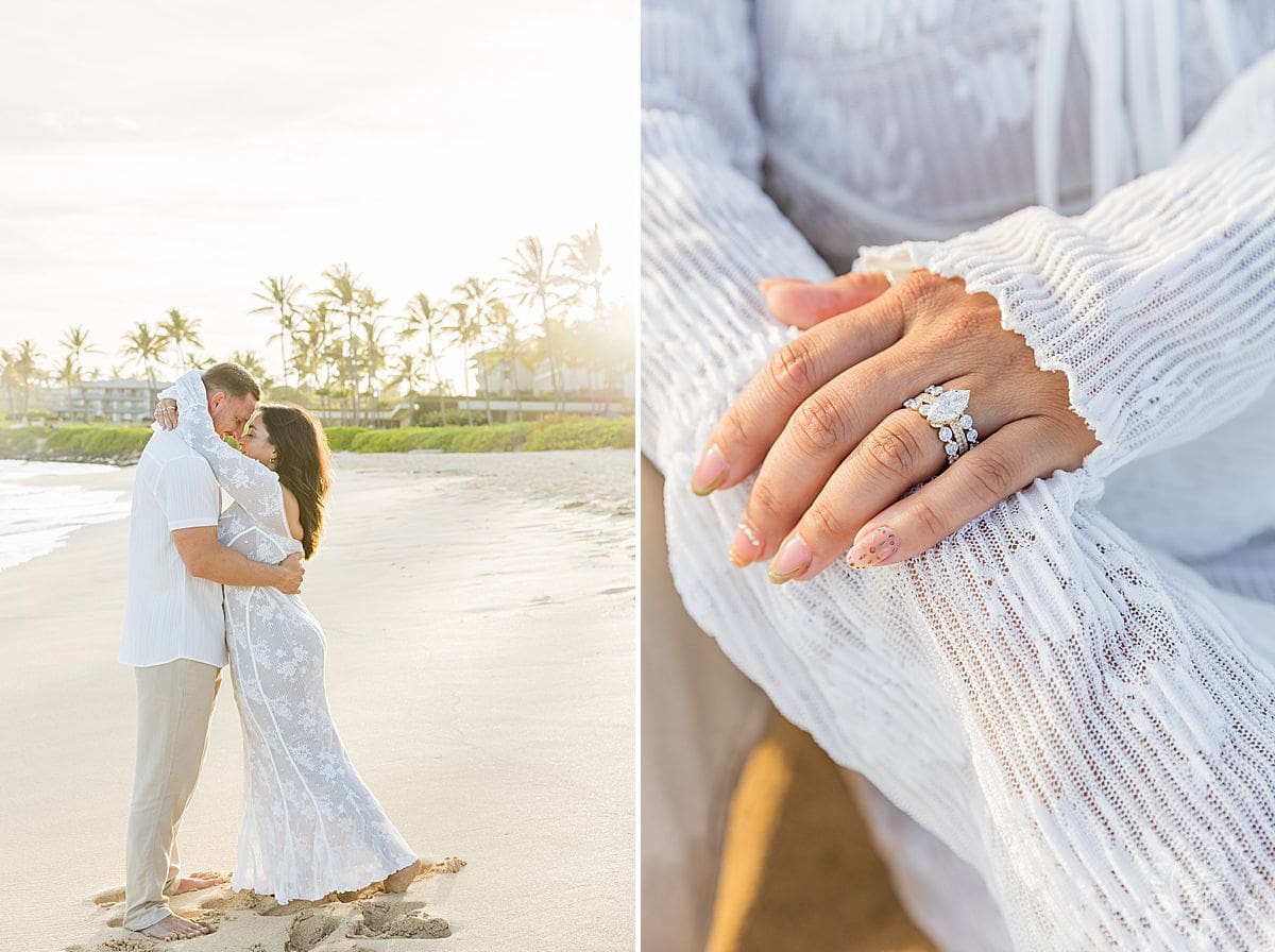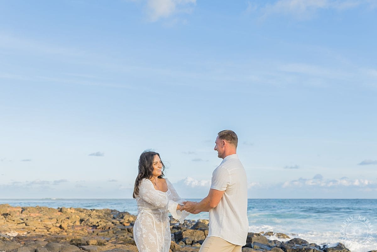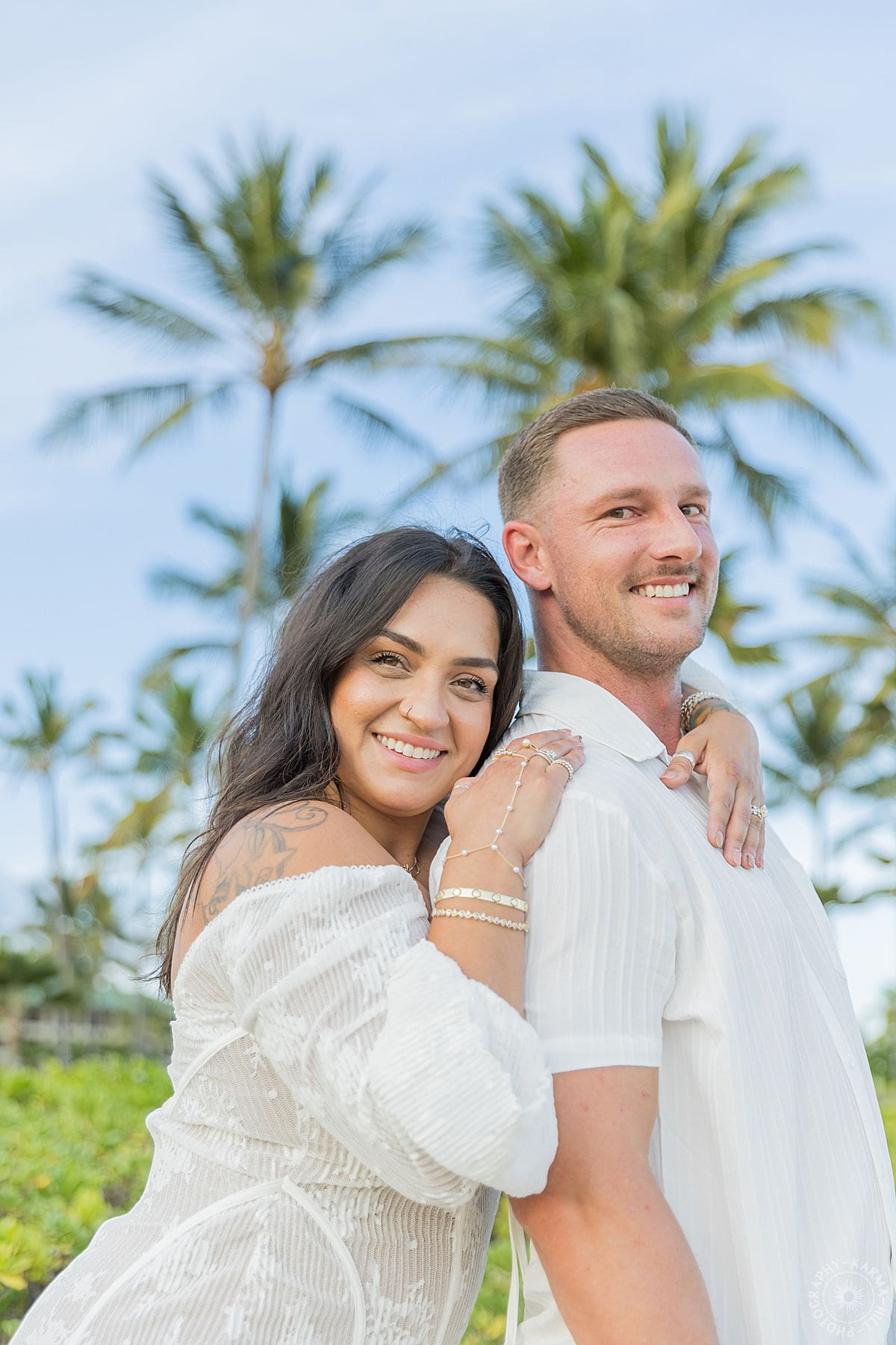After her big “yes” (again!), the celebration continued with their Kauai proposal portrait session brimming with joy. They laughed, kissed, and embraced by the shoreline, framed by Kauai’s rugged beauty and golden light. Each photo captured not just romance but also the comfort and confidence of two people who have built a life together and still light each other up. Does it get any more romantic than this?!