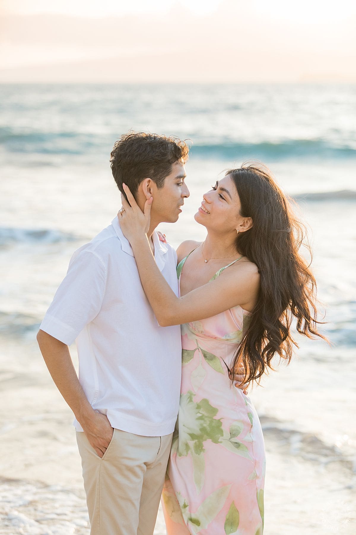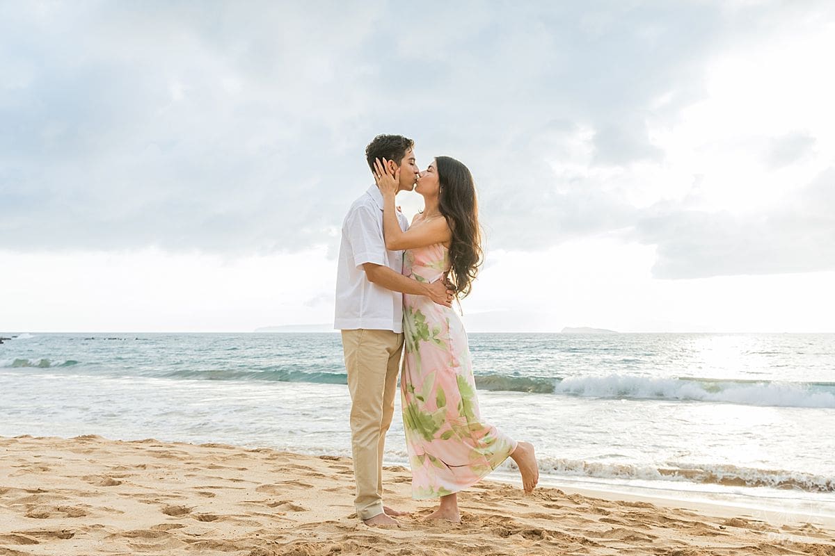 Southside Beach delivered its signature magic. Picture soft sand, gentle waves, and that warm Maui light that makes everything feel a little unreal. They walked, laughed, and leaned into each other as if it were just another sweet moment together…except Jonathan’s heart was racing, and his pockets held a secret. Then, in the middle of the session, when the moment felt easy and natural, he stopped, turned toward Sophia, and dropped to one knee….